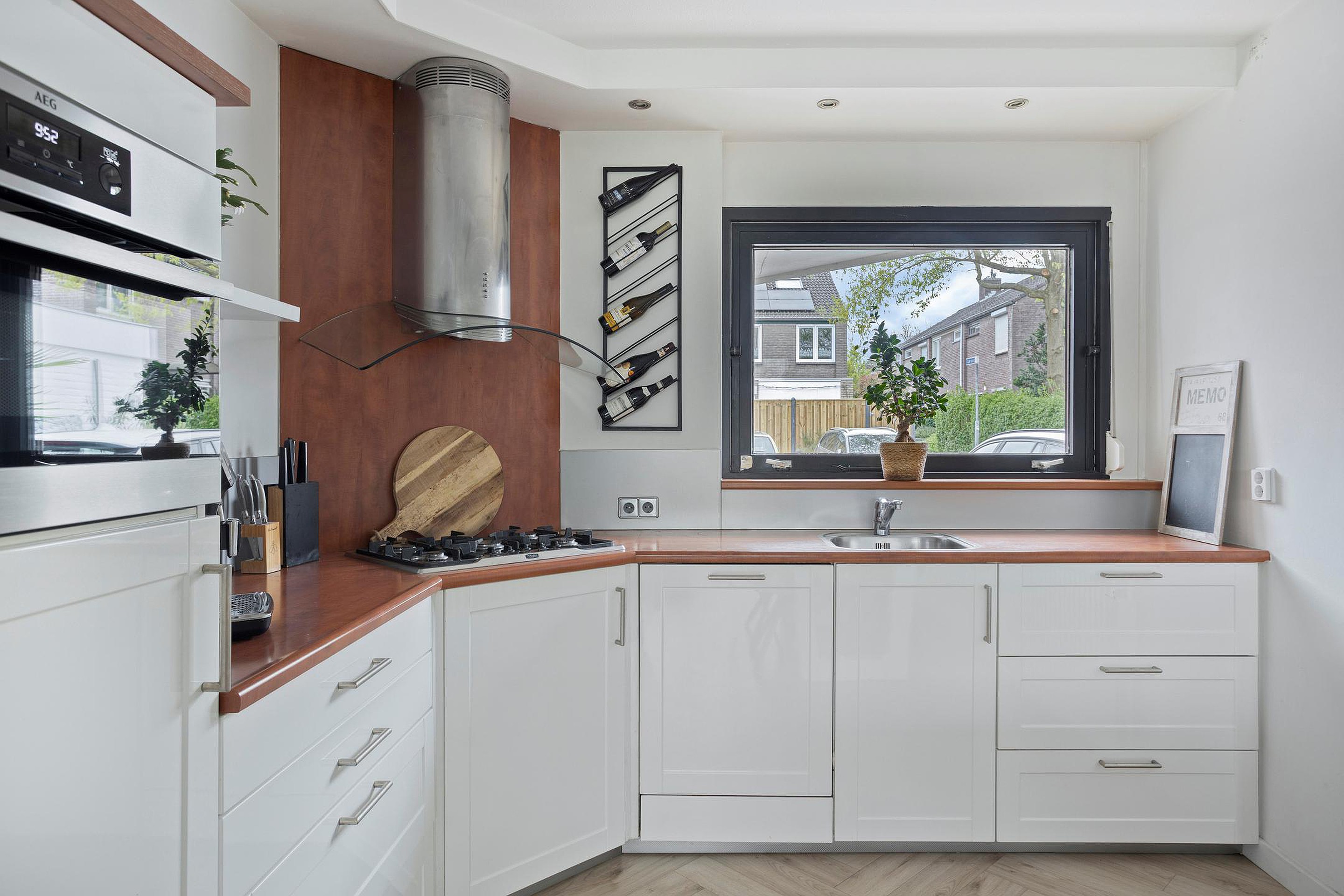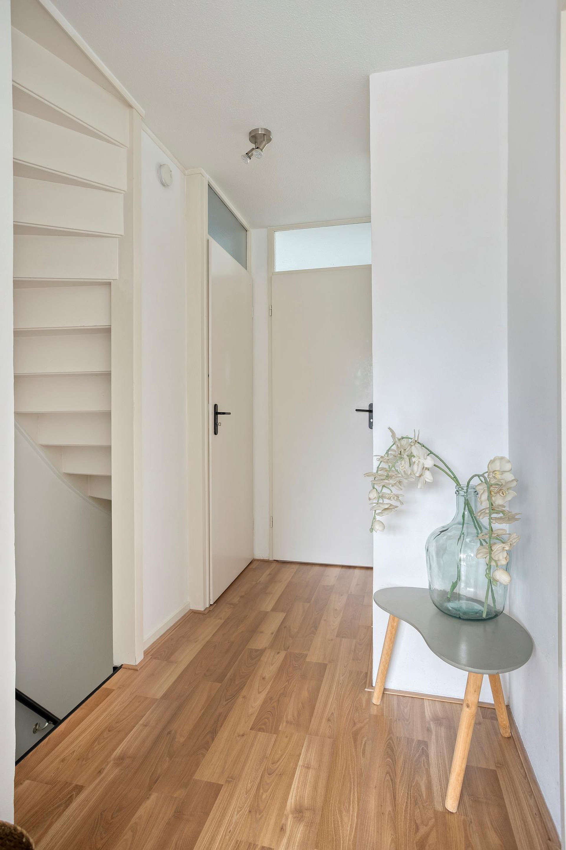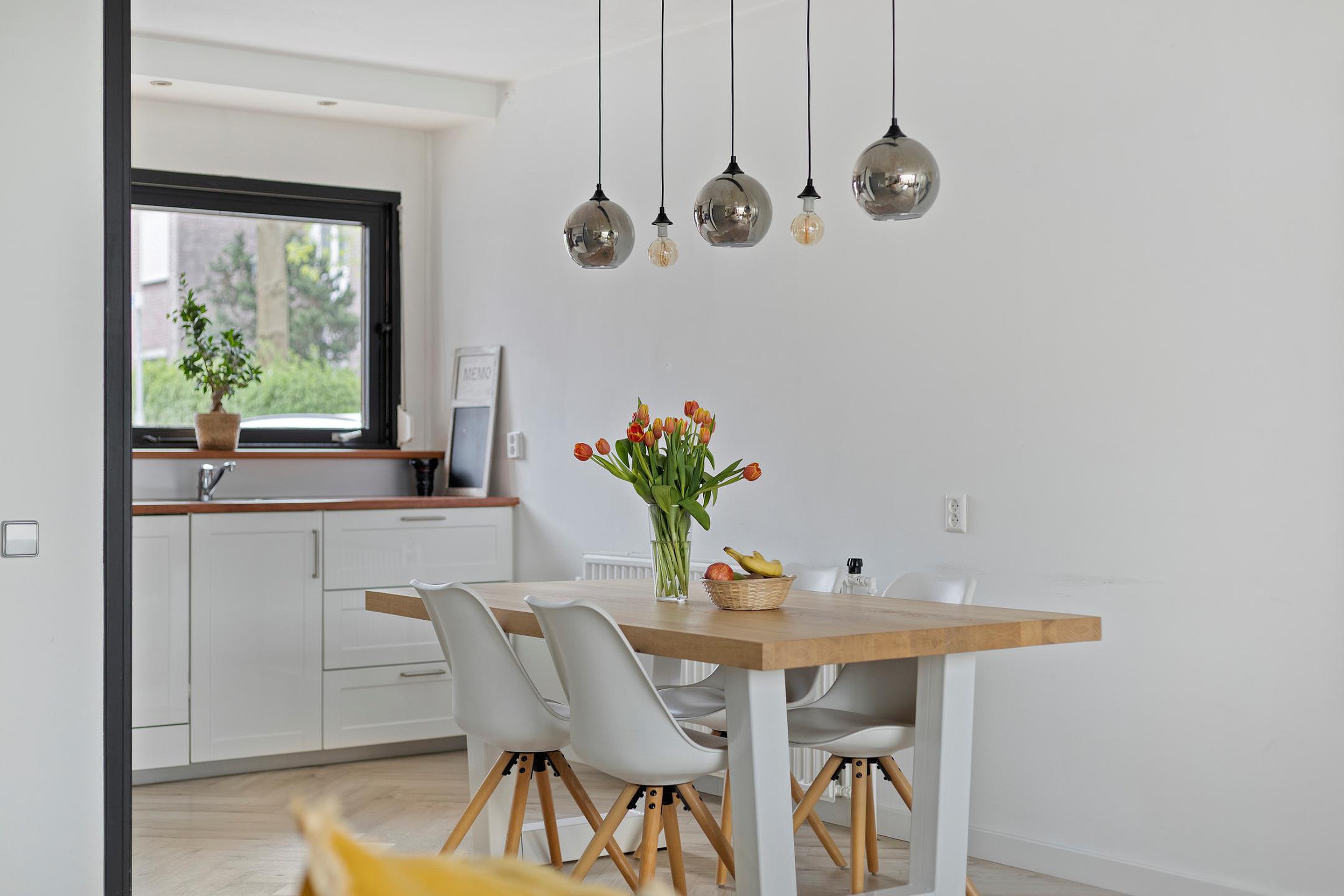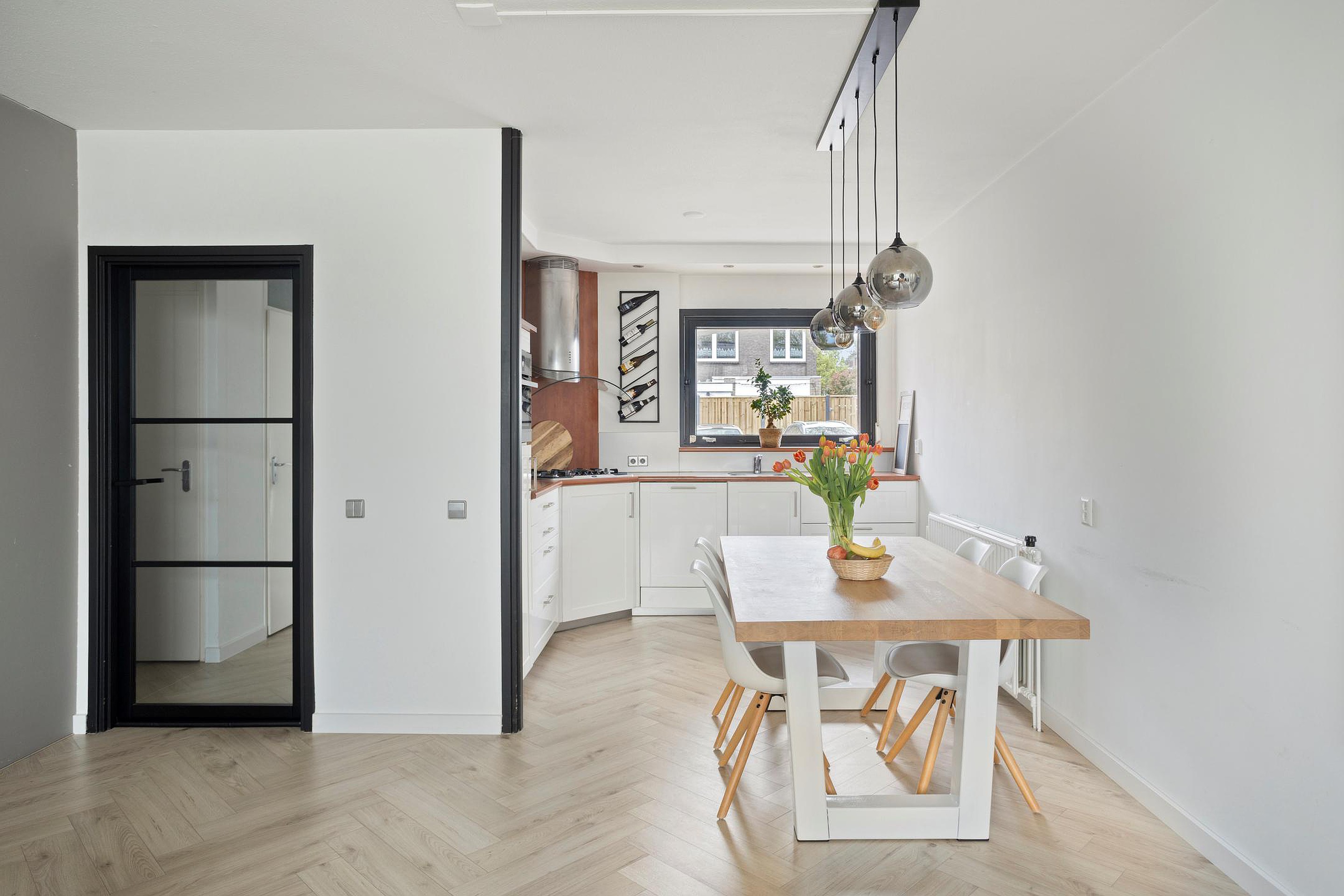 De lichte en royale doorzonwoonkamer (31 m2) vormt het hart van de woning en kenmerkt zich door de prettige lichtinval en de open verbinding met de keuken. De woonkamer is afgewerkt met strak gestucte wanden, een praktische trapkast en een openslaande deur naar de achtertuin met overkapping.