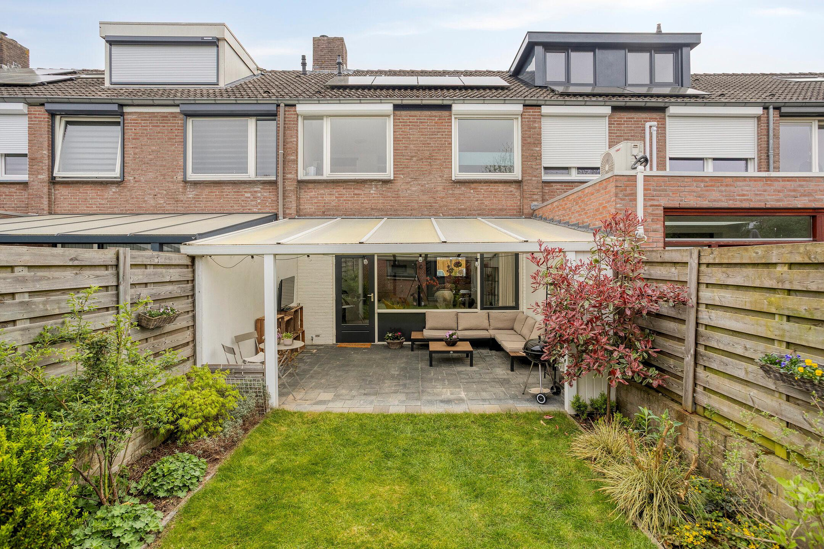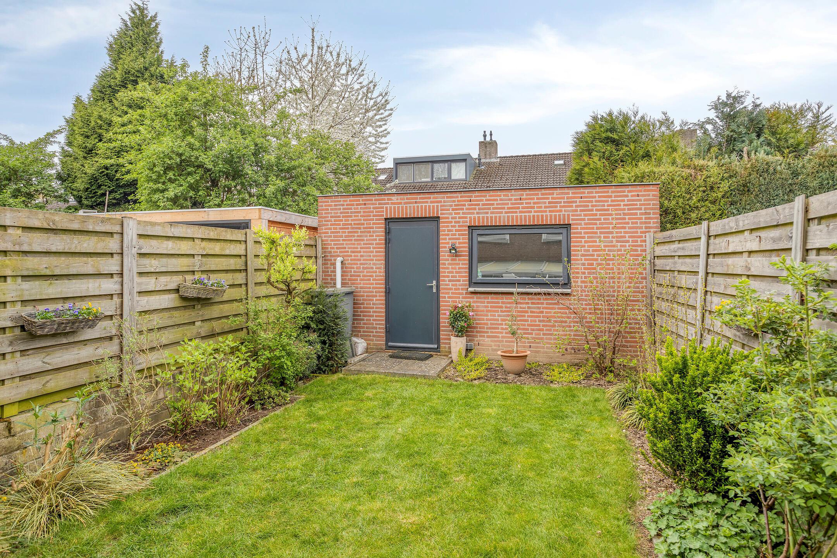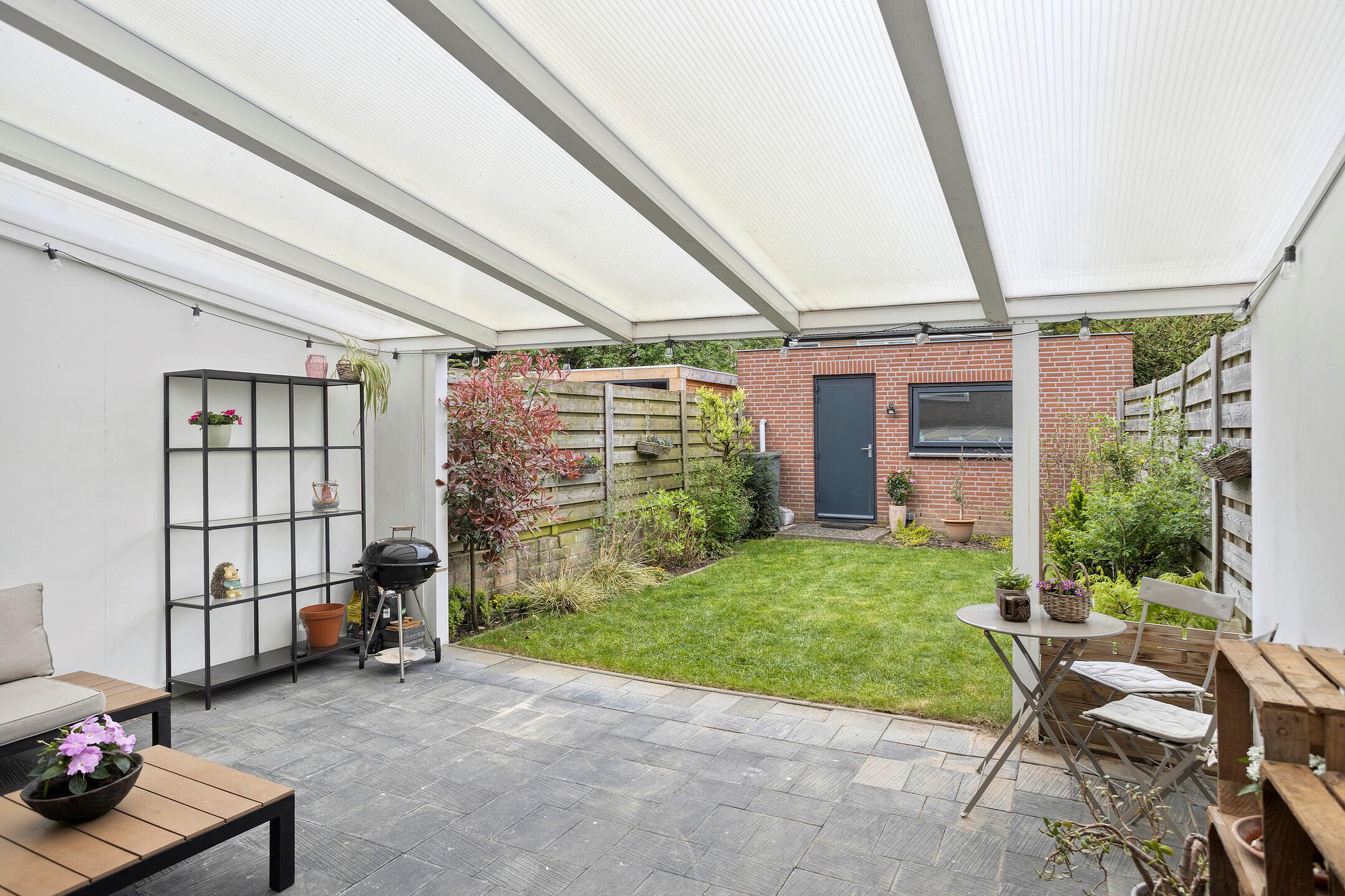 De volledig omsloten achtertuin (75 m2), gelegen op het westen, is onderhoudsvriendelijk aangelegd en biedt volop privacy. Over de volledige breedte van de woning bevindt zich een ruime terrasoverkapping (22 m2), waardoor u optimaal kunt genieten van het buitenleven. Achterin de tuin bevindt zich een vrijstaande berging (11 m2), voorzien van elektra en verlichting.