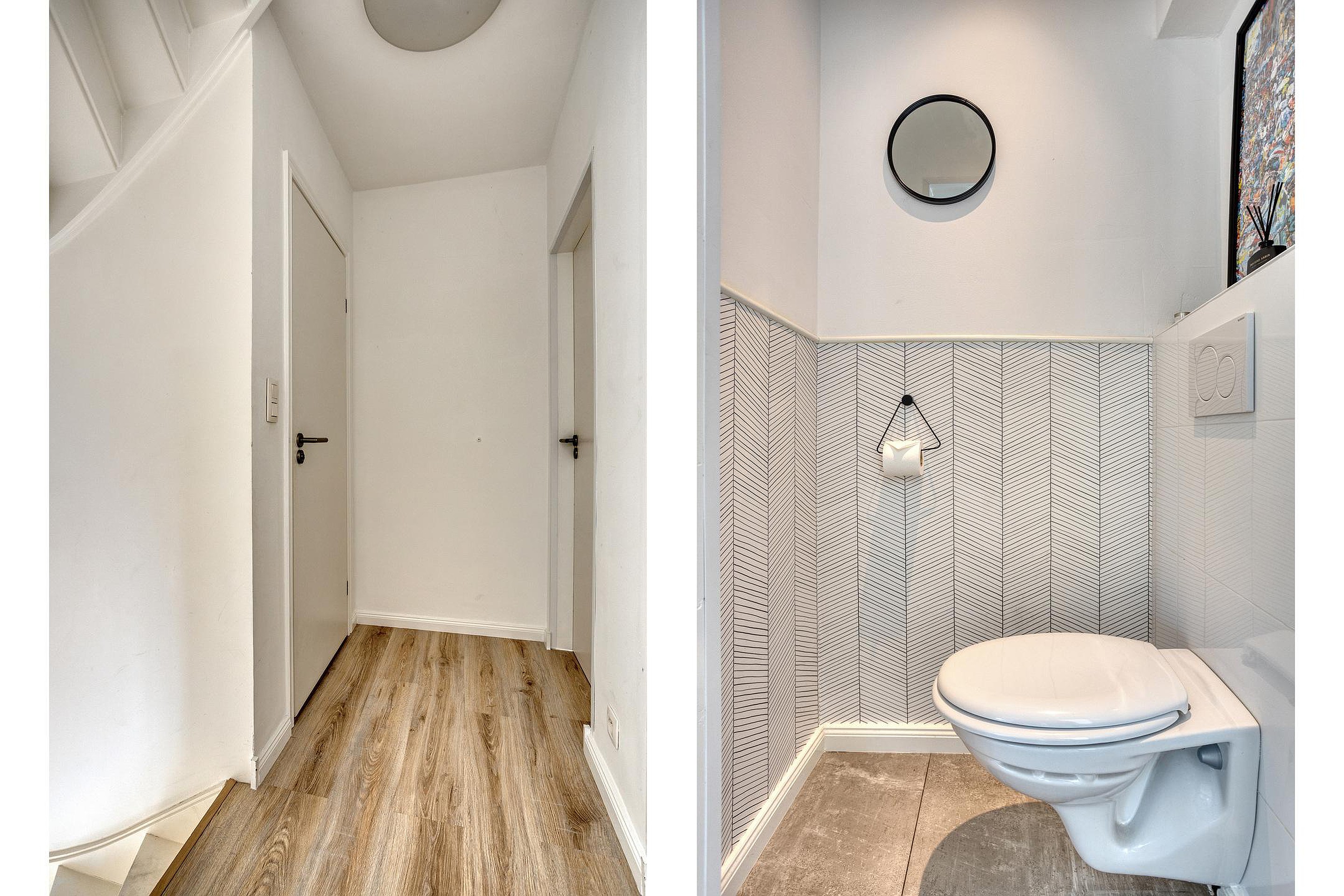 Op de overloop bevindt zich bovendien een separaat, tweede toilet, modern uitgevoerd met zwevend closet.