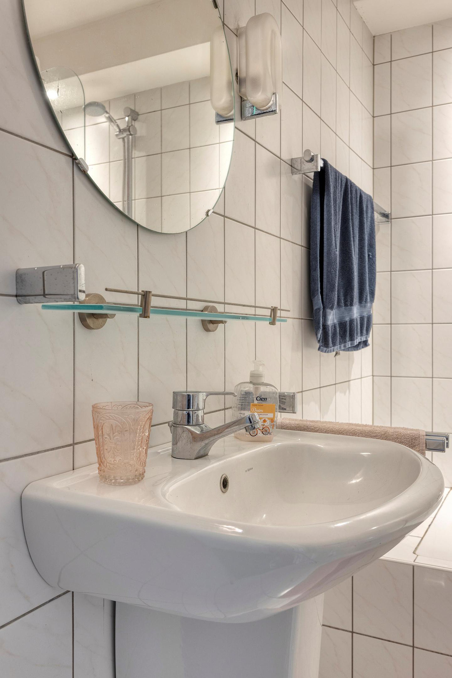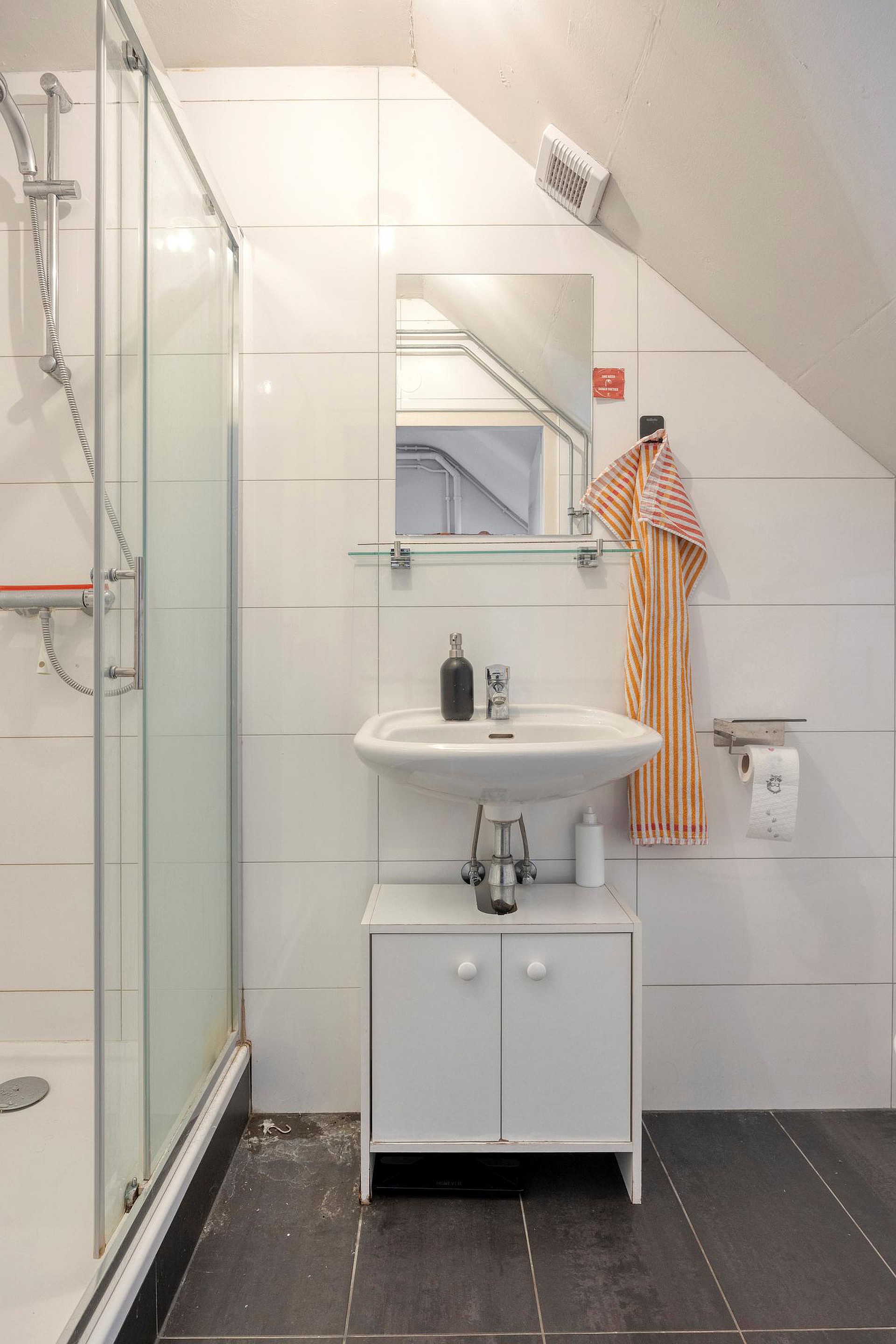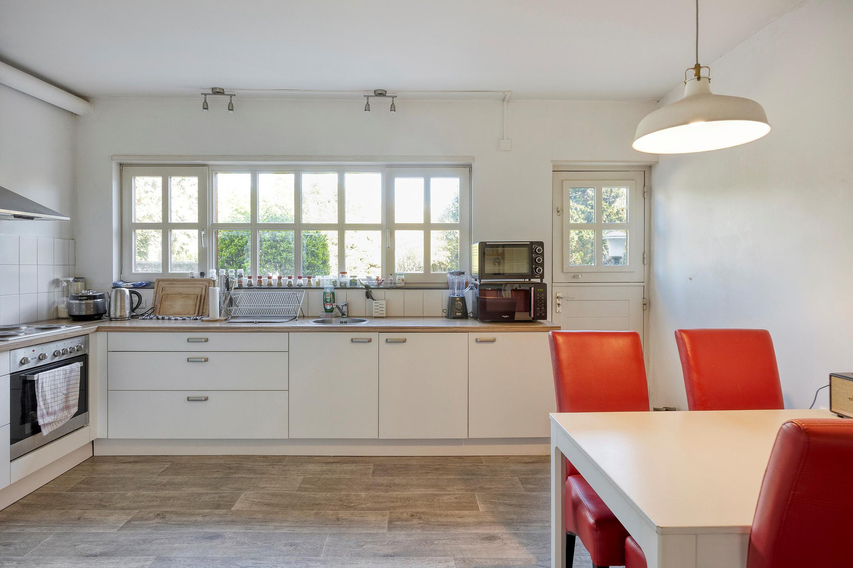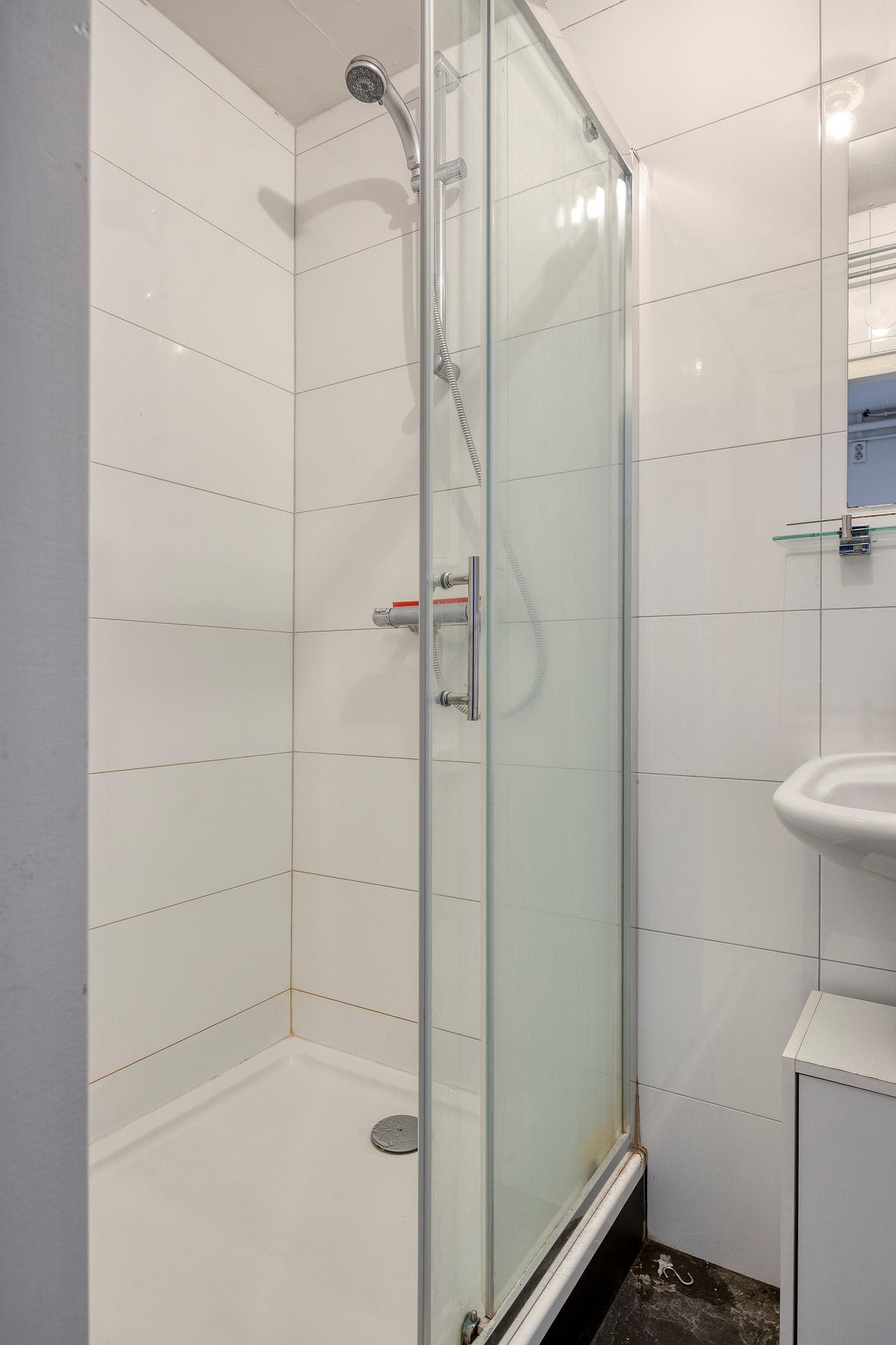 Daarnaast is er een gedeelde keuken aanwezig, voorzien van een kookplaat, oven en koelkast. De badkamer beschikt over een bad met douchecombinatie, een toilet en een wastafel.