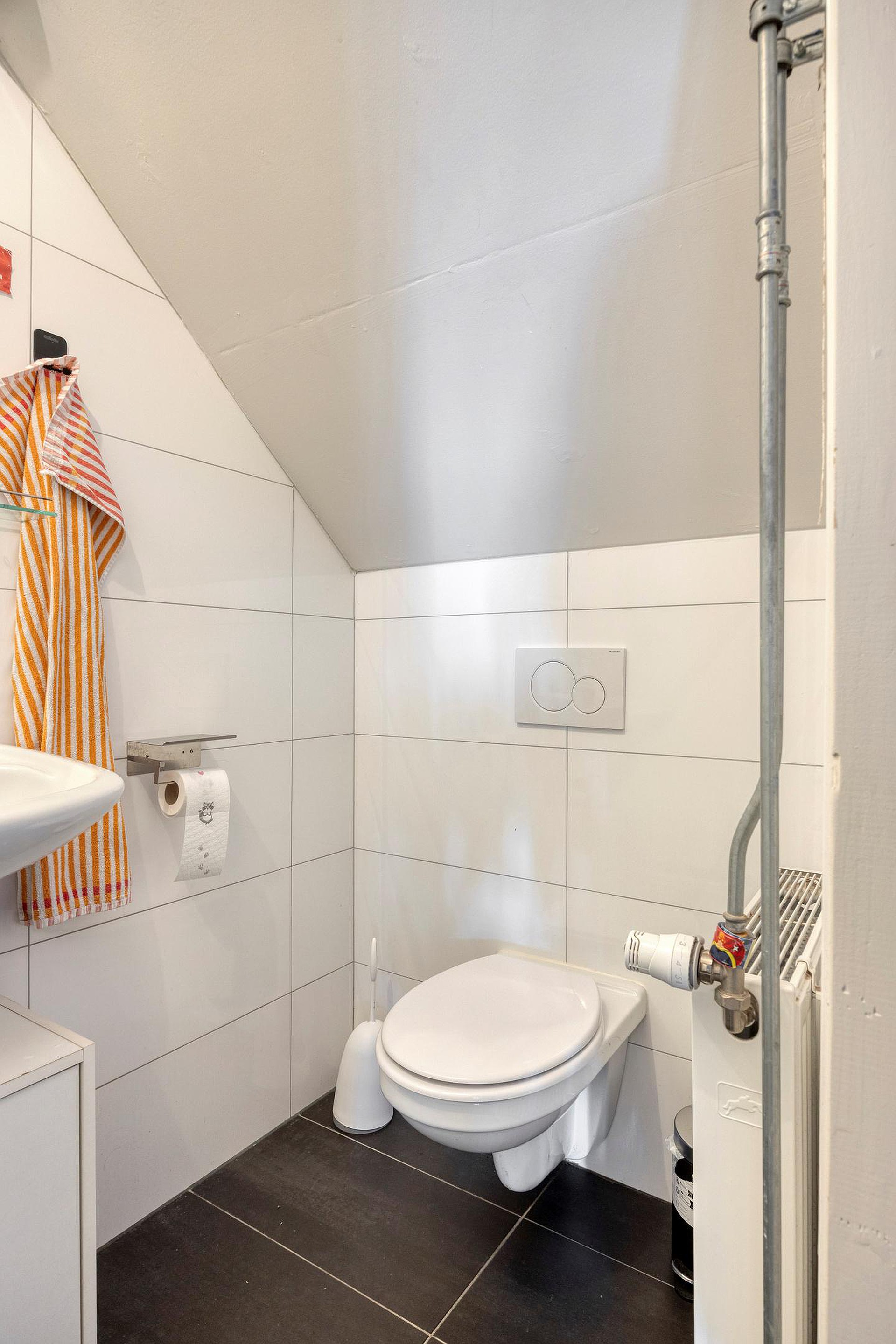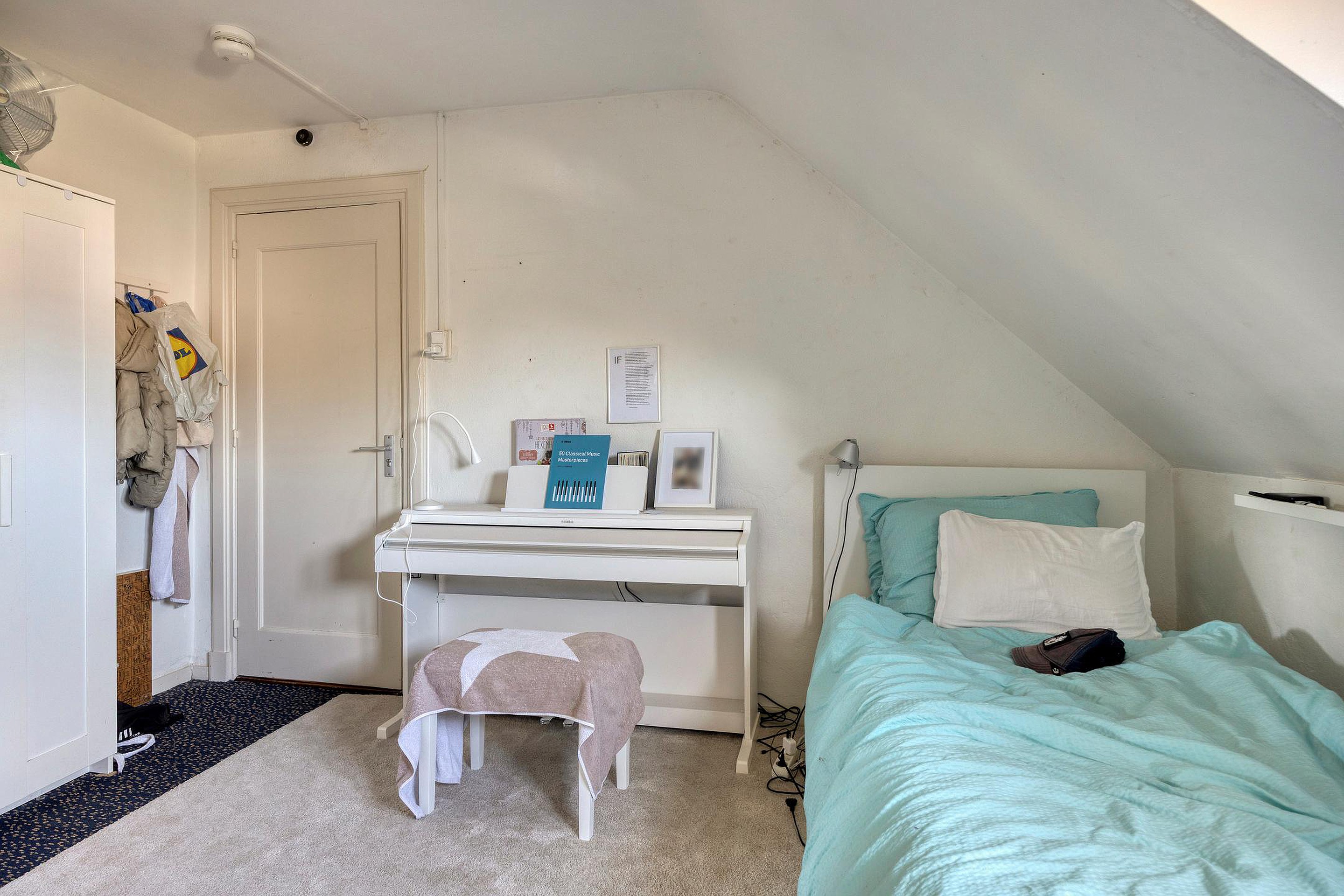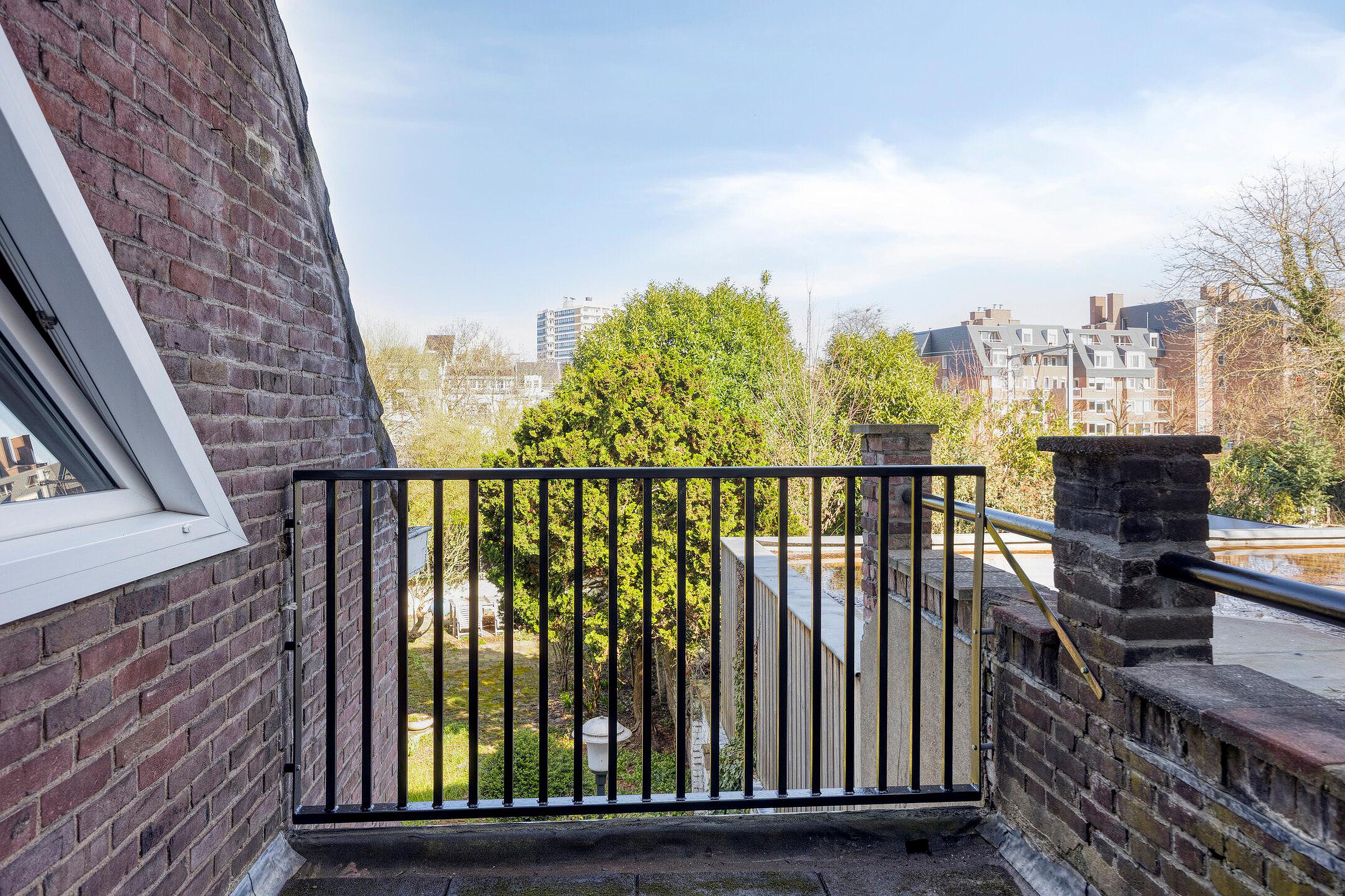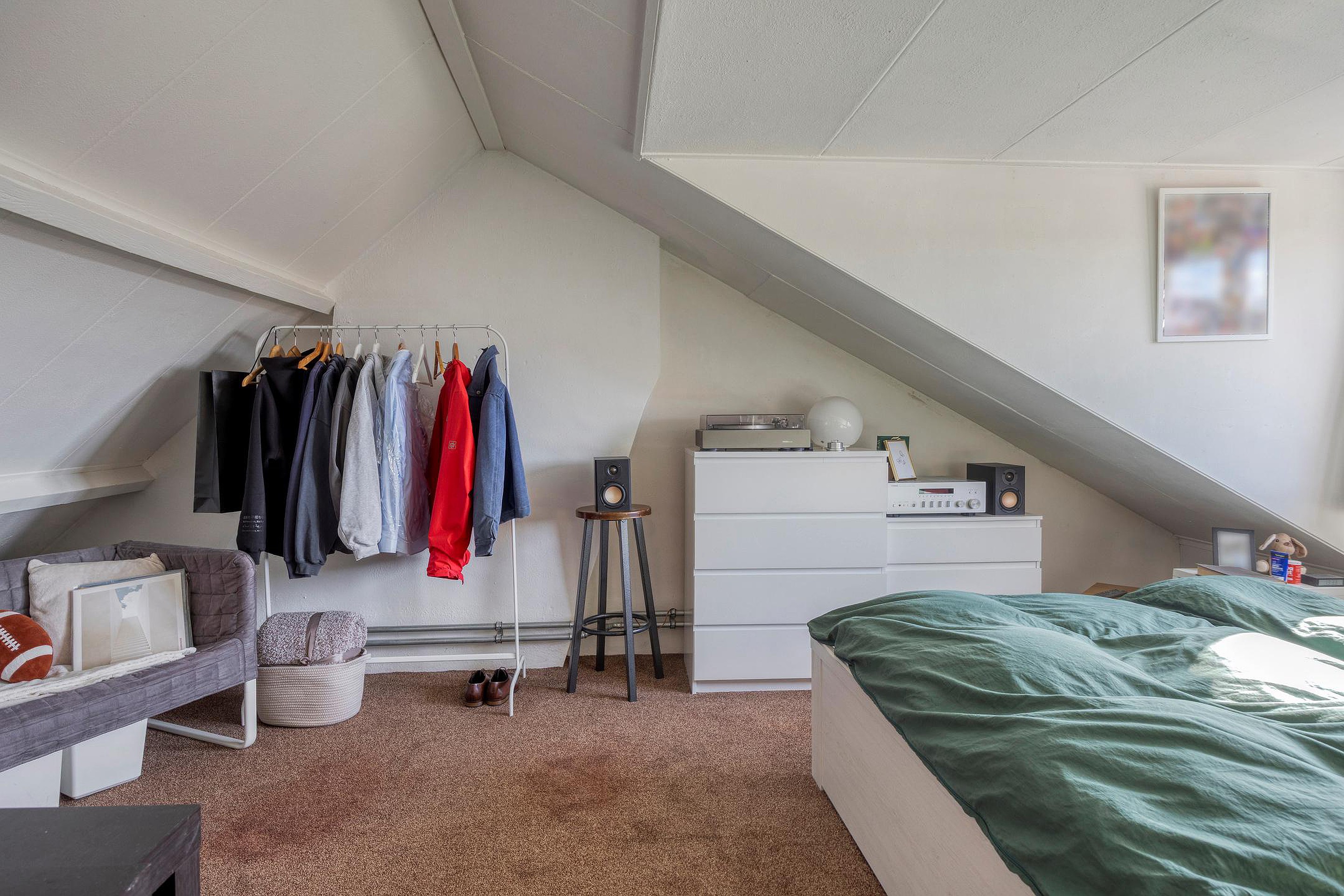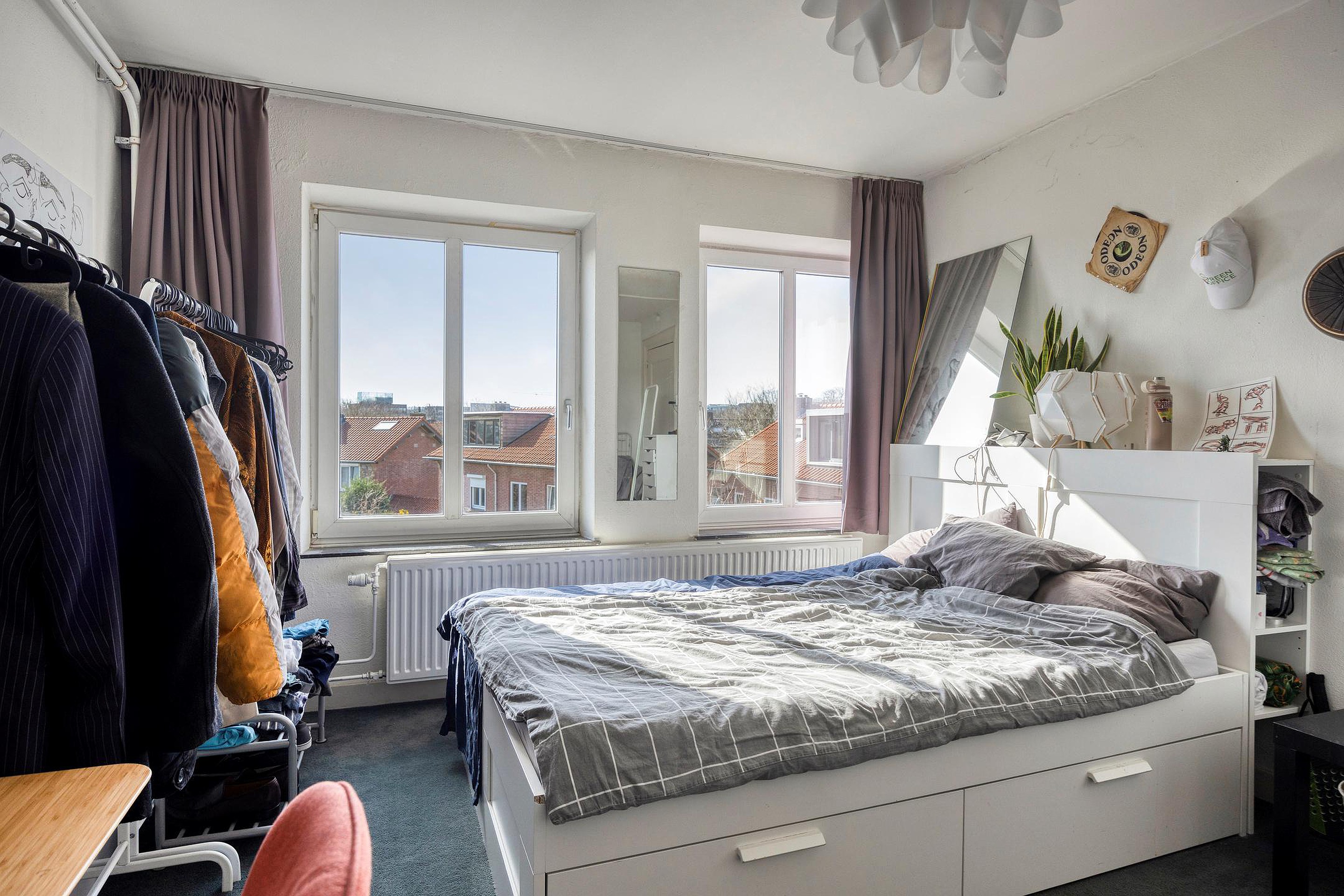 Eén van de kamers aan de achterzijde beschikt over een eigen dakterras, wat een aantrekkelijke extra buitenruimte vormt voor de bewoners.