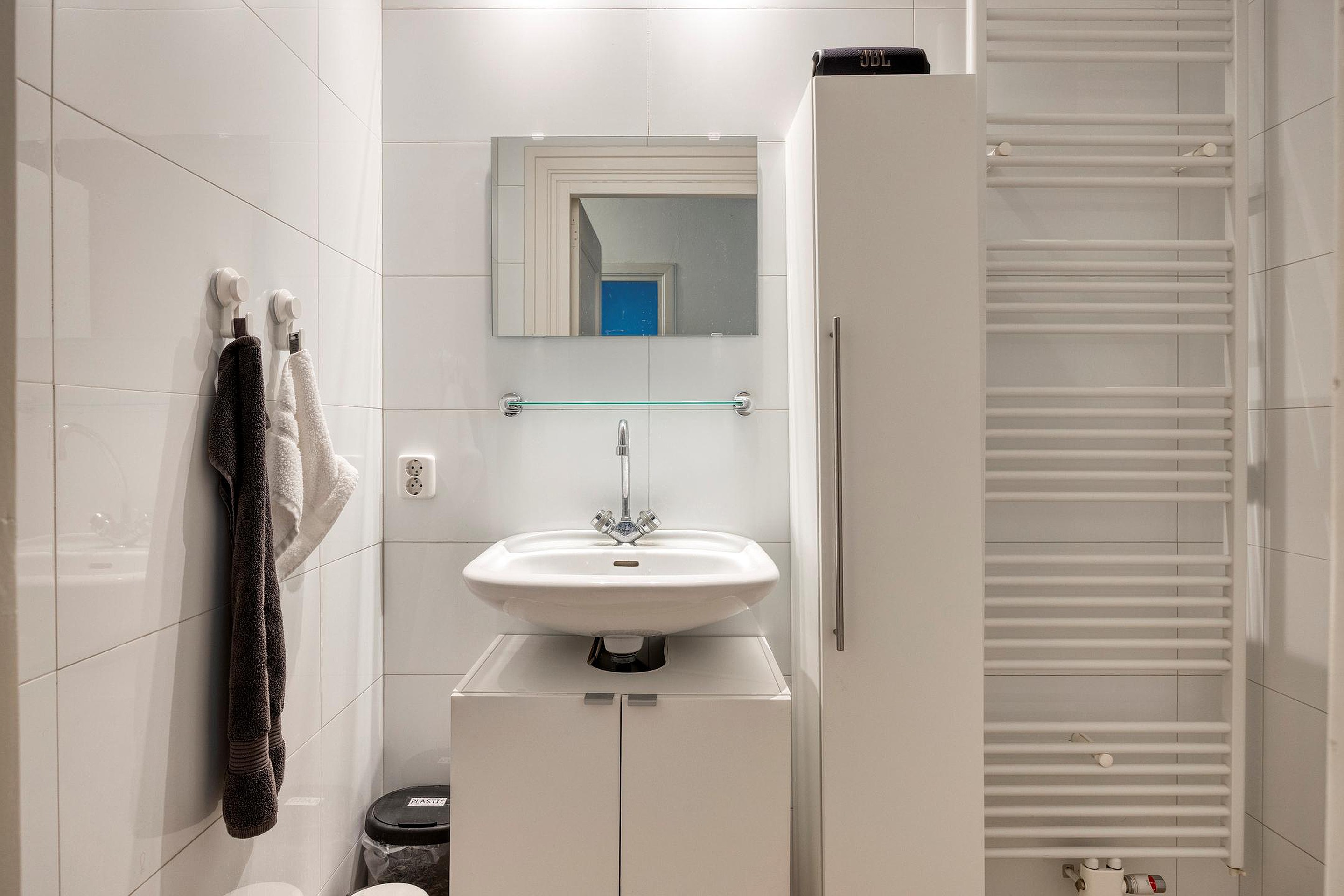 Verder beschikt het appartement over een moderne badkamer met inloopdouche en wastafel, een separaat toilet en een praktische berging.