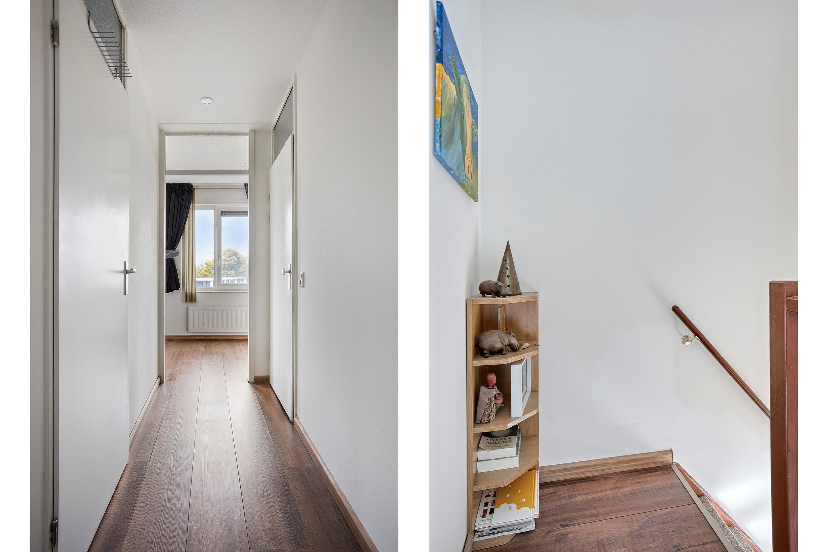 Via vaste trap is de overloop van de tweede verdieping te bereiken, welke toegang geeft tot 2(3) slaapkamers, de badkamer en de technische ruimte. De slaapkamers (ca. 13,5 en 7m2) beschikken over Novilon vloerafwerking en hardhouten kozijnen met isolerende beglazing. De grote slaapkamer beschikt over een vaste muurkast en is gemakkelijk te splitsen in 2 vertrekken, waardoor er 3 slaapkamers gerealiseerd kunnen worden. De badkamer (ca. 4,5m2) is grotendeels betegeld en voorzien van een inloopdouche met regenshower, 2e toilet, badkamermeubel, wastafel, handdoekradiator en mechanische ventilatie. In de technische ruimte (ca. 5 m2) bevinden zich de opstelling van de Cv-ketel (Merk: Intergas HRE 28/24A, Combi, eigendom & bouwjaar 2024), de omvormer van de zonnepanelen en de unit voor de mechanische ventilatie.