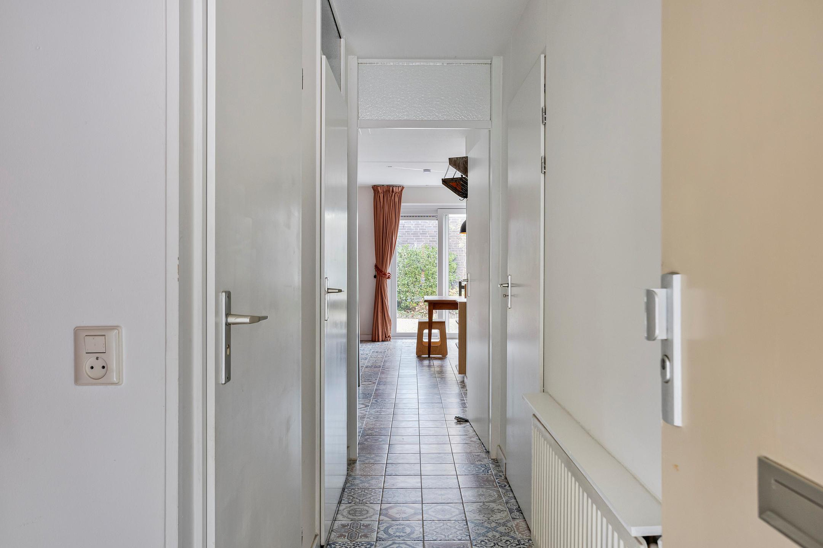 Overdekte entree (ca. 12m2). Inkomhal (ca. 3,5m2) met meterkast (automatische zekeringen, 2 aardlekschakelaars, slimme meters en watermeter), toilet, berging met de witgoedaansluitingen en toegang tot de inpandige garage en de leefkeuken. Het toilet (ca. 1m2) is geheel betegeld en voorzien van een wandcloset en een fonteintje. De garage (ca. 16m2) is voorzien van licht, elektra, watertappunt en een elektrische rolpoort. Royale woonkeuken (ca. 22,5m2) welke aan de achterzijde van de woning is gelegen en met een brede schuifpui toegang geeft tot de achtertuin. De keuken beschikt over een luxe keukeninstallatie in hoekopstelling (geplaatst in 2022), met boven- en onderkasten en de navolgende inbouwapparatuur: inductiekookplaat met 5 zones, spoelbak, vaatwasser, koelkast, vriezer, afzuiginstallatie, oven, combimagnetron en een quooker. Het geheel is mooi afgewerkt met een moderne tegelvloer voorzien van vloerverwarming. Via een vaste trap is de eerste verdieping te bereiken. De gehele begane grond (m.u.v. garage) is voorzien van moderne tegelvloeren.