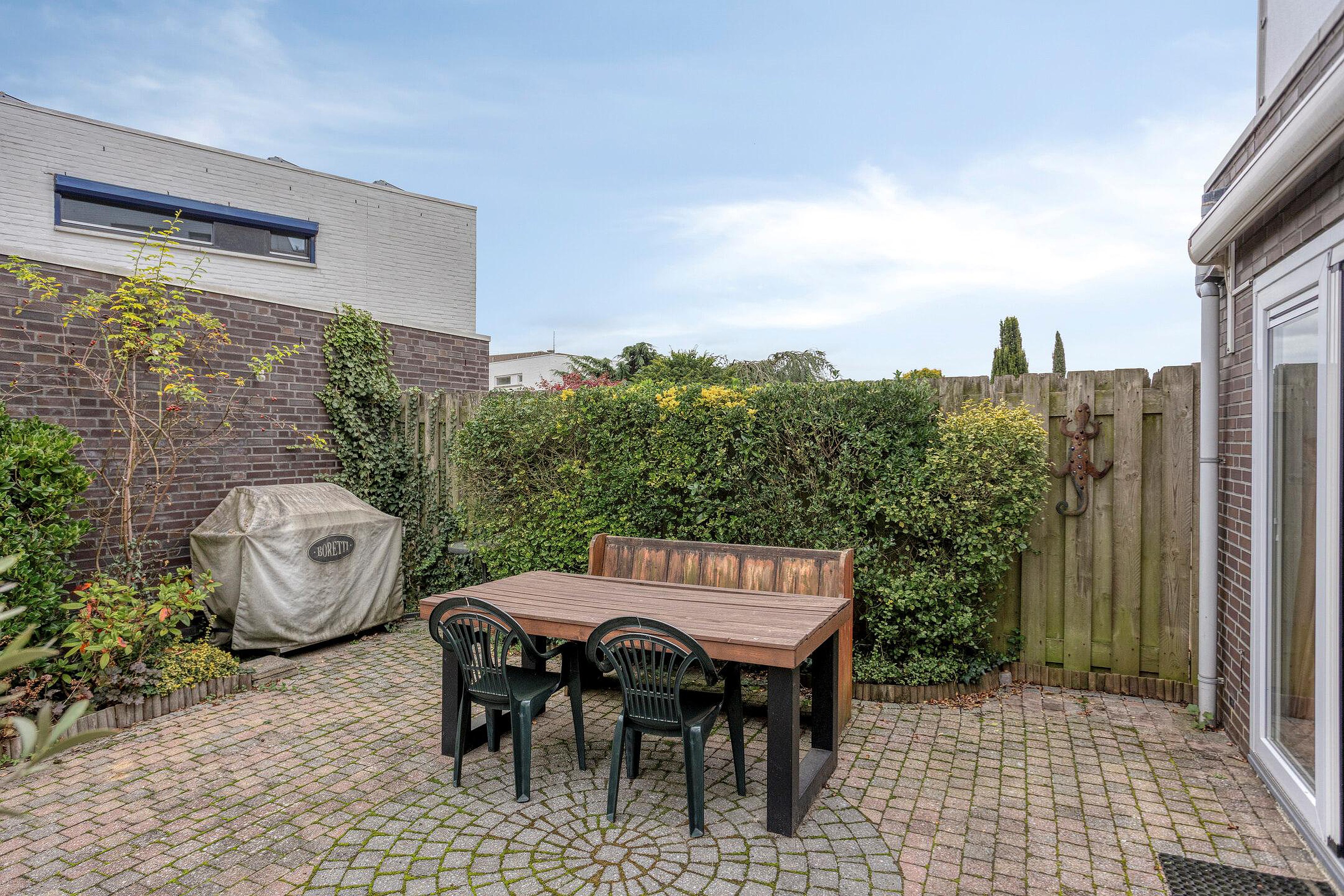 Voortuin met een beklinkerde oprit voor het parkeren van één auto. Smalle zij-tuin voorzien van aanplant en toegangspoort tot achtertuin. Geheel omsloten en sfeervolle achtertuin (ca. 50m2), georiënteerd op het noordoosten, met een betegeld terras, zonnescherm en borders voorzien van diverse aanplant. De tuin is tevens te bereiken vanuit de woonkeuken. Hier kan men in een oase van rust genieten van al het moois dat deze prachtige woonomgeving te bieden heeft.