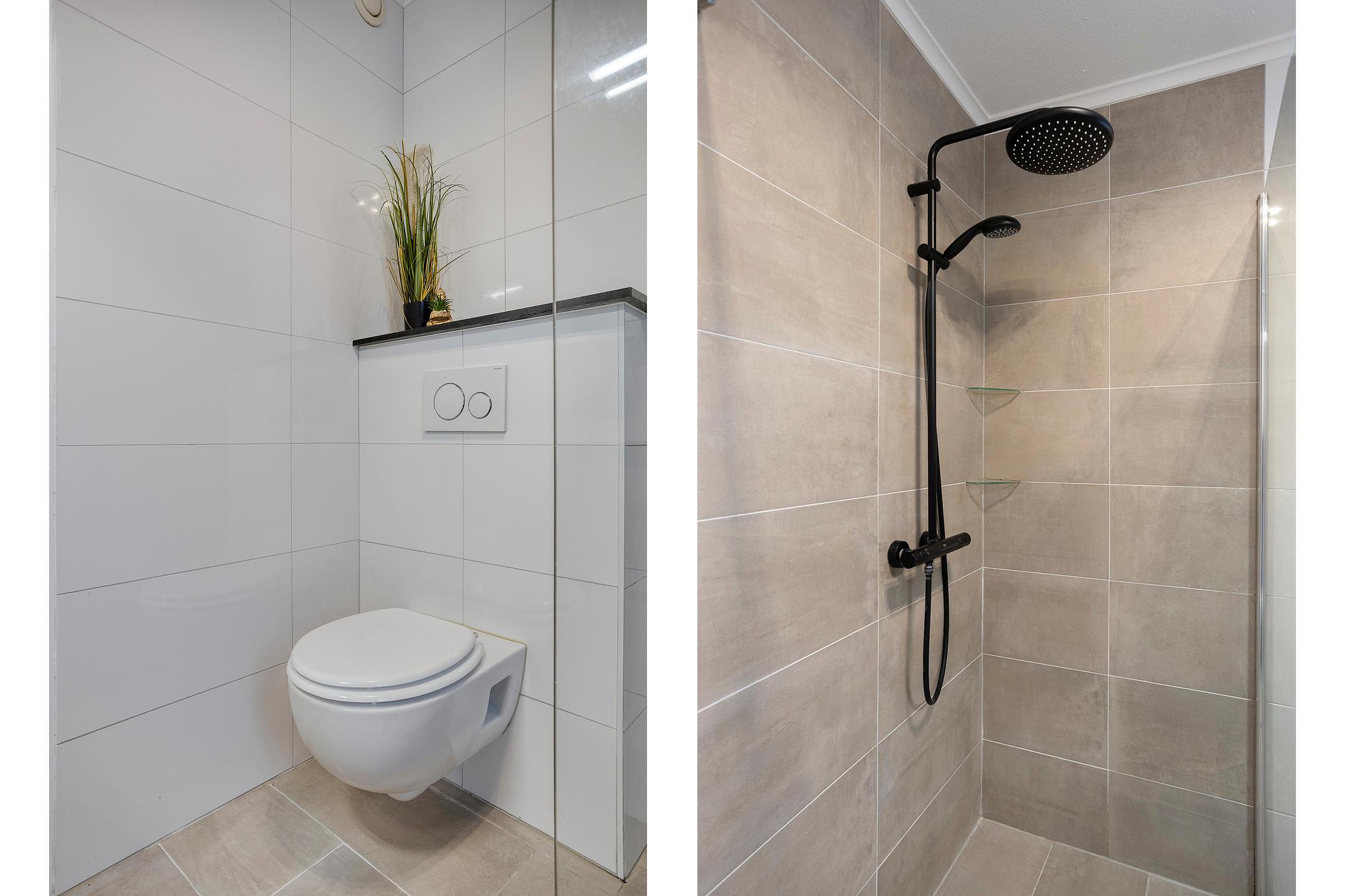 Via vaste trap te bereiken overloop met toegang tot 3 slaapkamers, de technische ruimte en de badkamer. Slaapkamer 1 en 2 (ca. 11 en 6m2) bevinden zich aan de achterzijde van de woning. Slaapkamer 3 (ca. 12m2) bevindt zich aan de voorzijde. De slaapkamers hebben allen keurige laminaatvloeren, kunststof kozijnen met isolerende HR- beglazing en rolluiken. In de technische ruimte bevinden zich de opstelling van de Cv-ketel (Nefit, HR combi, eigendom & bouwjaar 2023), de unit voor de mechanische ventilatie en de aansluitpunten voor de wasmachine. De moderne badkamer (ca. 4m2) is geheel betegeld en uitgerust met een royale (inloop)douche met regen- en handdouche, een designradiator, een vaste wastafel in ombouwmeubel en een wandcloset. Het geheel is keurig afgewerkt en voorzien van mechanische ventilatie.