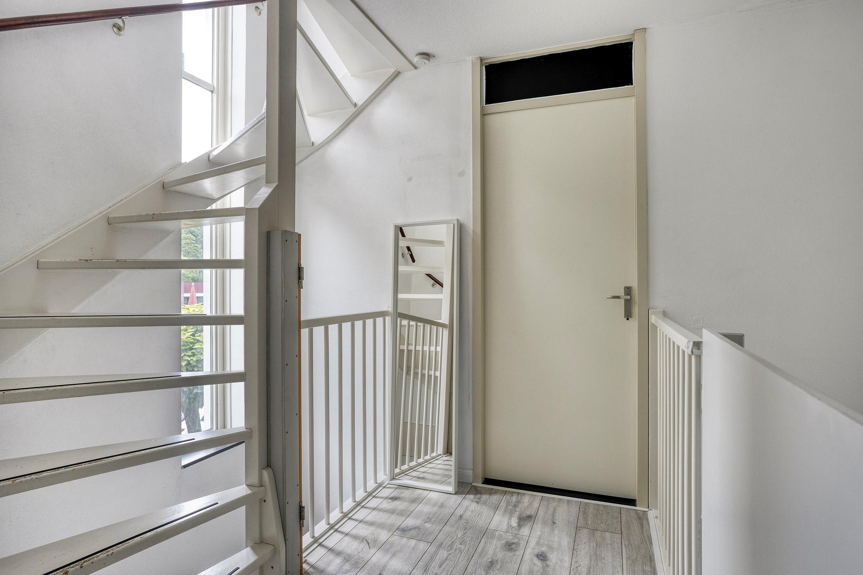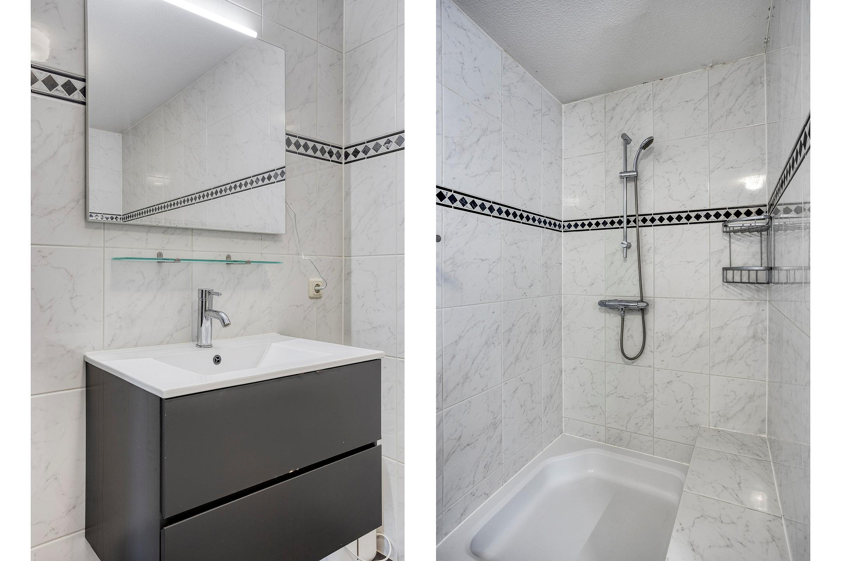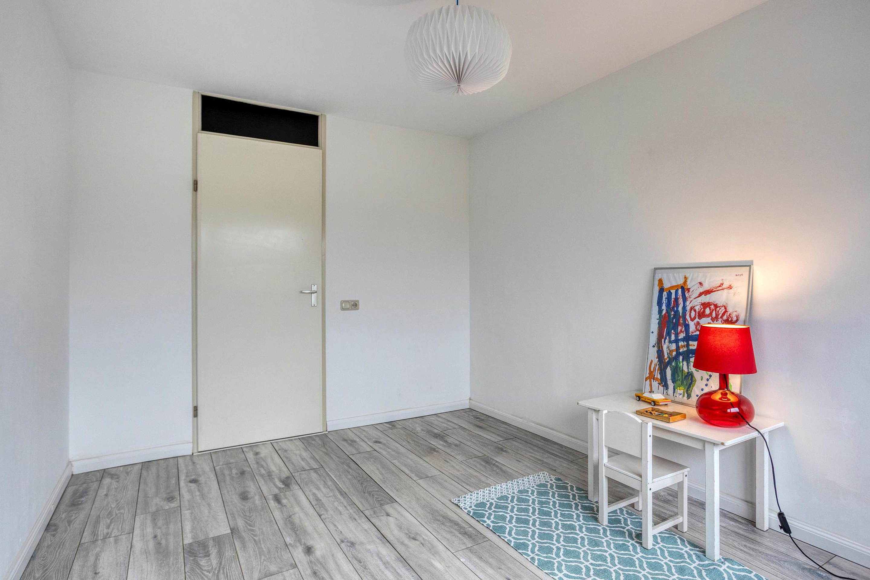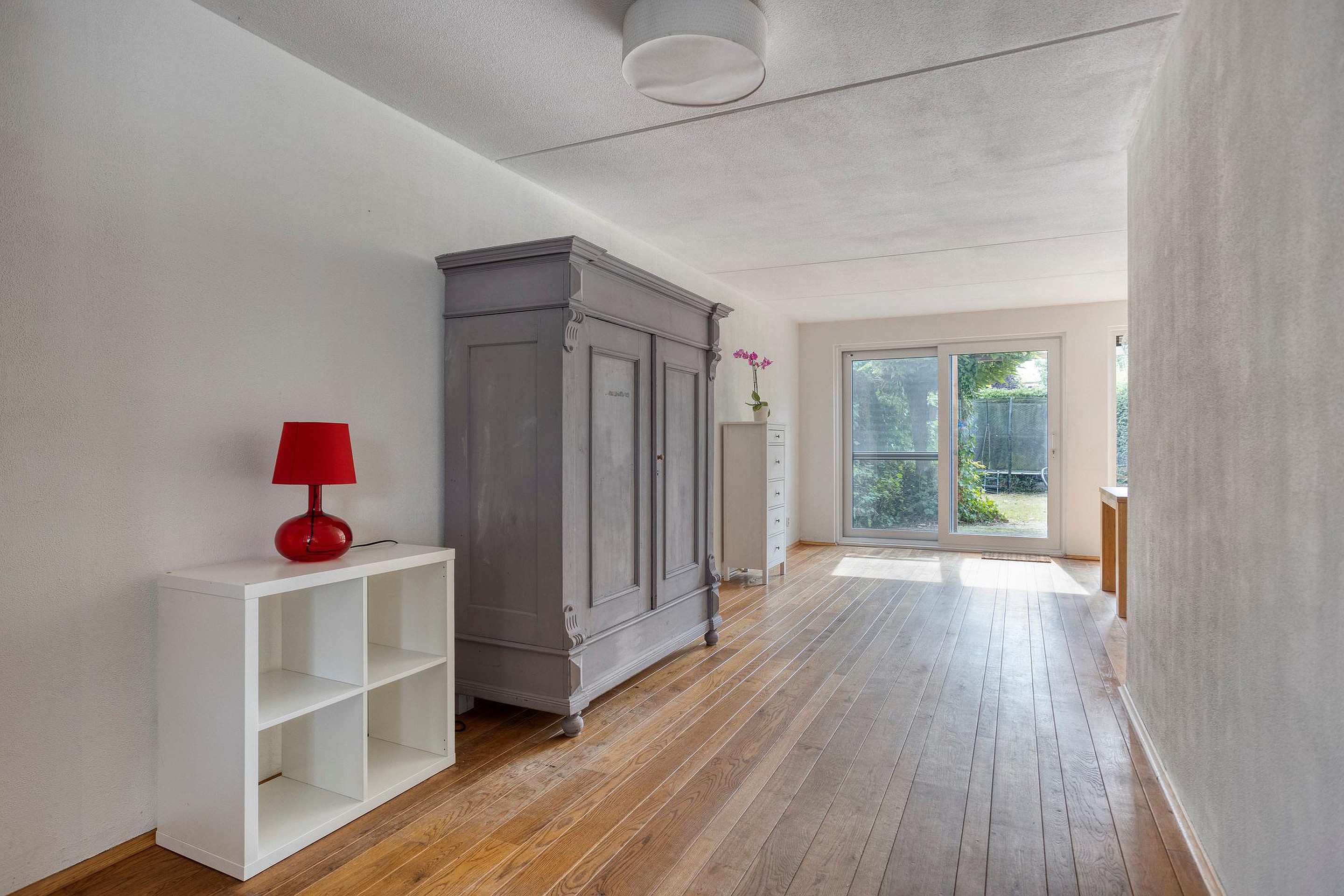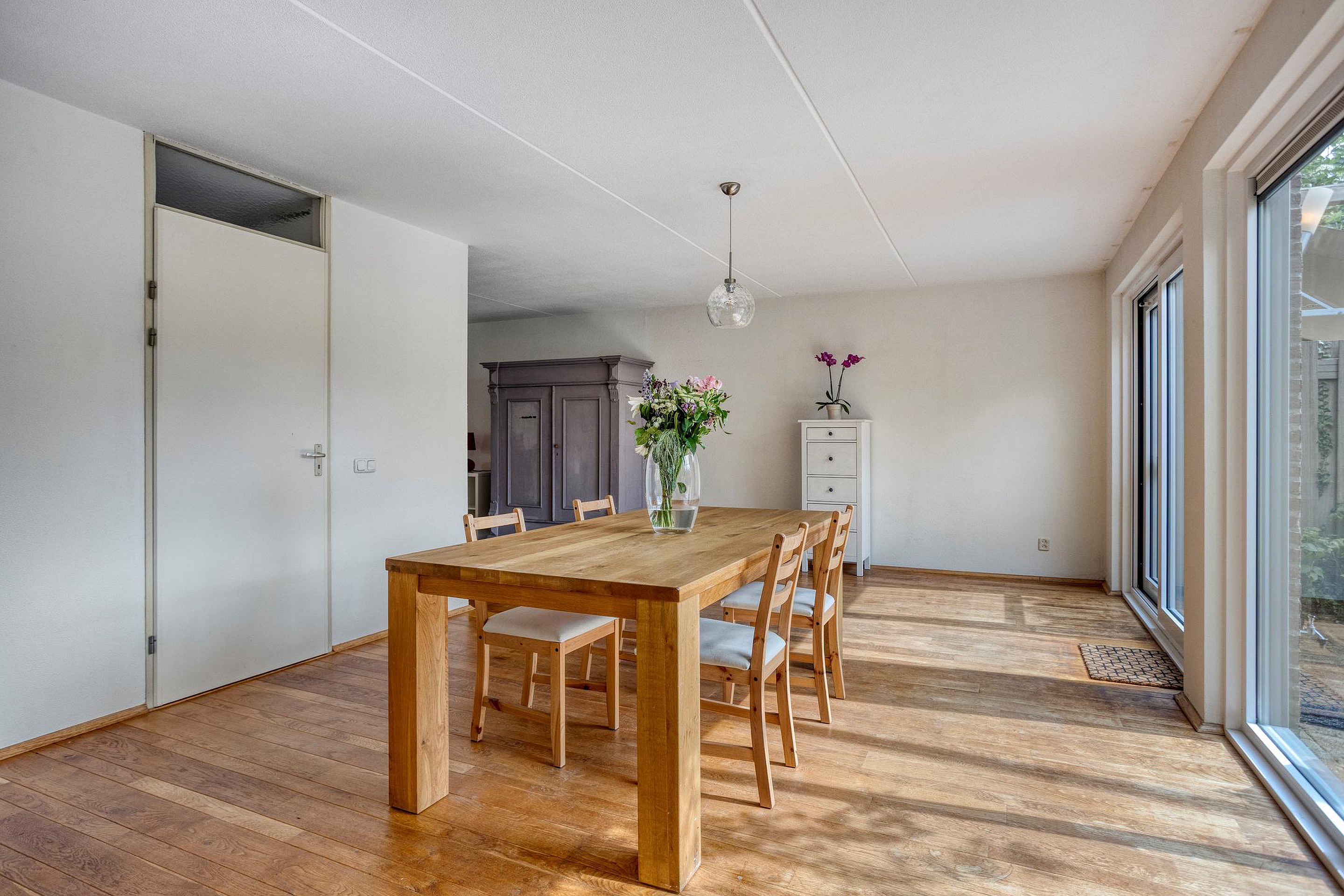 Overdekte entree met toegang tot inkomhal en berging/bijkeuken. Ruime inkomhal (ca. 7m2) voorzien van een donkere tegelvloer, met meterkast (moderne groepenkast met automaatgroepen en slimme meters), toilet, trapopgang en toegang tot de woonkamer, keuken en berging/bijkeuken. De toiletruimte (ca. 1m2) is geheel betegeld en beschikt over een staand closet en een fonteintje. Sfeervolle en lichtovergoten doorzonwoonkamer met open keuken (totaal ca. 65m2). De zitkamer (ca. 43m2) is aan de achterzijde van de woning gelegen en geniet veel lichtinval vanwege de grote ramenpartijen. De vloer is afgewerkt met een houten parketvloer en via een grote schuifpui (met schuifhordeur) is er toegang tot de tuin. Vanuit de zitkamer bereikt men de eetkamer (ca. 9m2), met doorloop naar de keuken (ca. 13,5m2), welke aan de voorzijde van de woning is gelegen. De keuken beschikt over een nette keukenopstelling in U-opstelling, met onder- en bovenkasten, wandkast, ontbijtbar en de navolgende inbouwapparatuur: 1,5 spoelbak, vaatwasser, keramische kookplaat, RVS-afzuiginstallatie (defect) met RVS-achterwand, koelkast en een combi-oven. Het geheel is mooi afgewerkt met een kunststof werkblad en een donkere tegelvloer. De berging/bijkeuken (ca. 5m2) beschikt over voldoende opslagruimte. Hier kan men eventueel ook de aansluitpunten voor het witgoed realiseren.