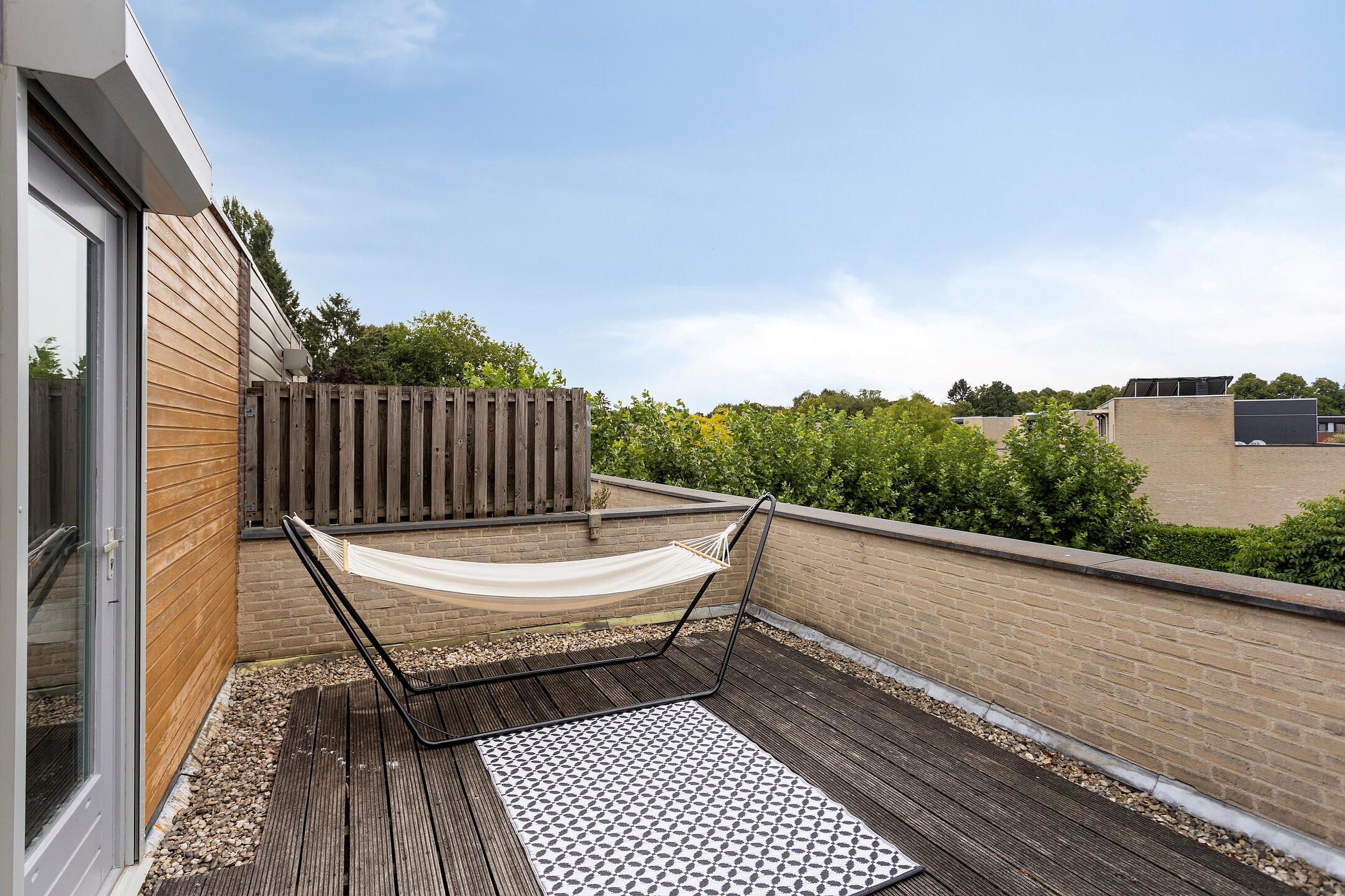 Middels vaste trap te bereiken overloop (ca. 2,5m2), met Cv-ruimte en toegang tot de vierde slaapkamer. In de Cv-ruimte (ca. 2,5m2) bevinden zich de aansluitpunten van het witgoed, de opstelling Cv-ketel (merk: Nefit Topline, HR+ Combi, eigendom &bouwjaar 2009) en de unit van de mechanische ventilatie. Vierde zolderslaapkamer (ca. 12m2), voorzien van een keurige laminaatvloer, hardhouten kozijnen met isolerende beglazing en rolluiken. Deze kamer geeft vervolgens toegang tot het dakterras (ca. 27m2), voorzien van een houten vlonder. Hier kan men in een oase van rust genieten van de zon en al het moois dat deze prachtige woonomgeving te bieden heeft.