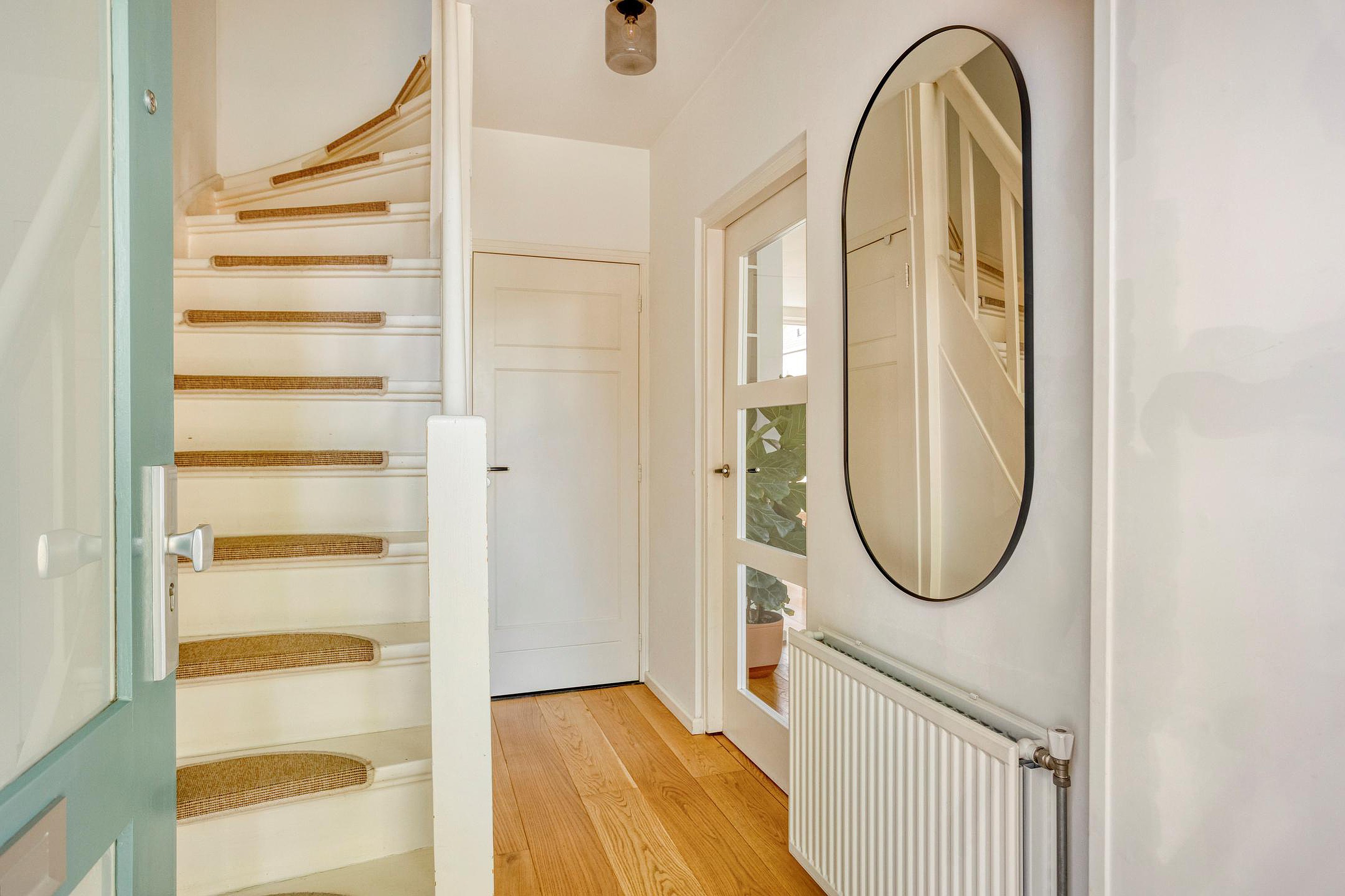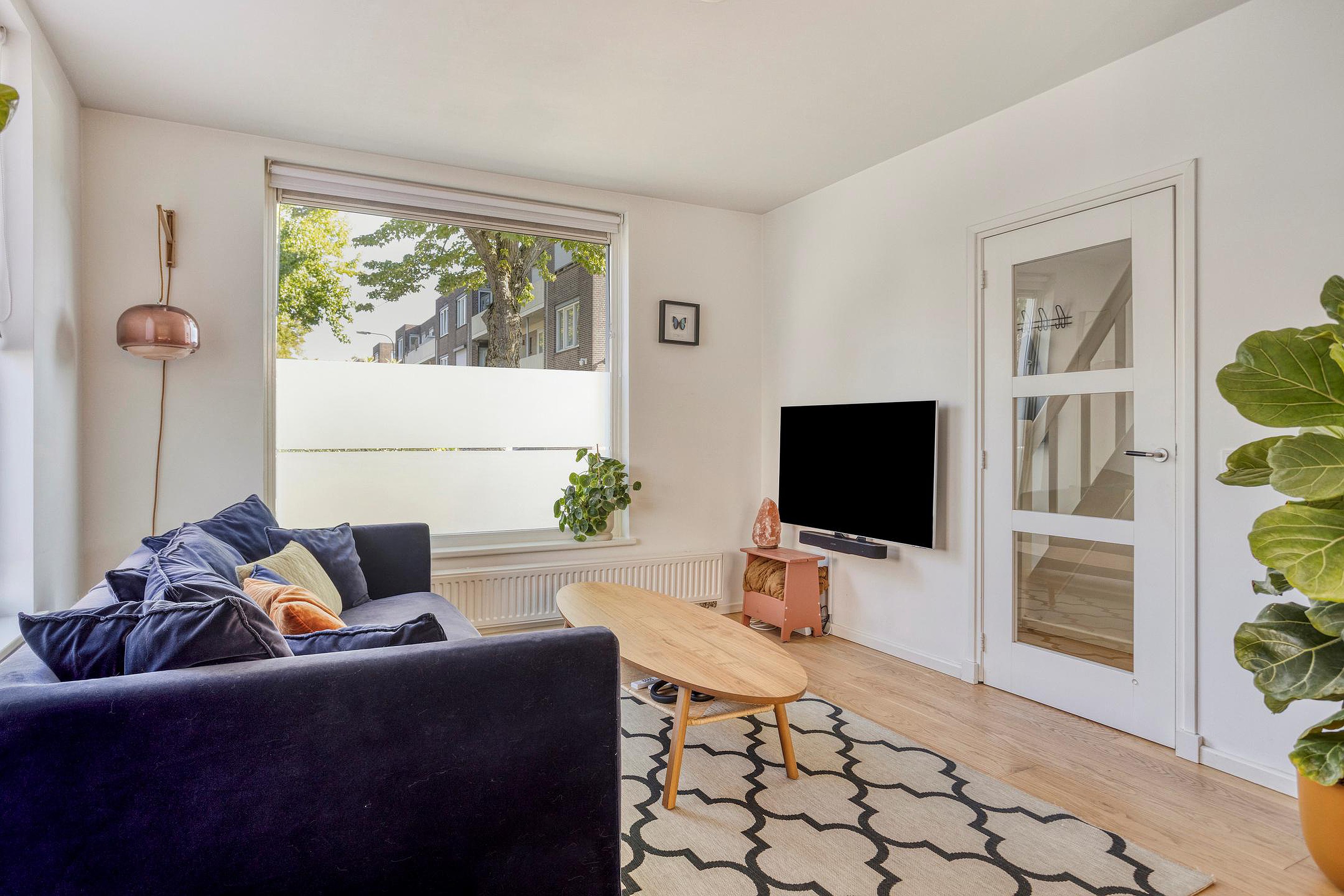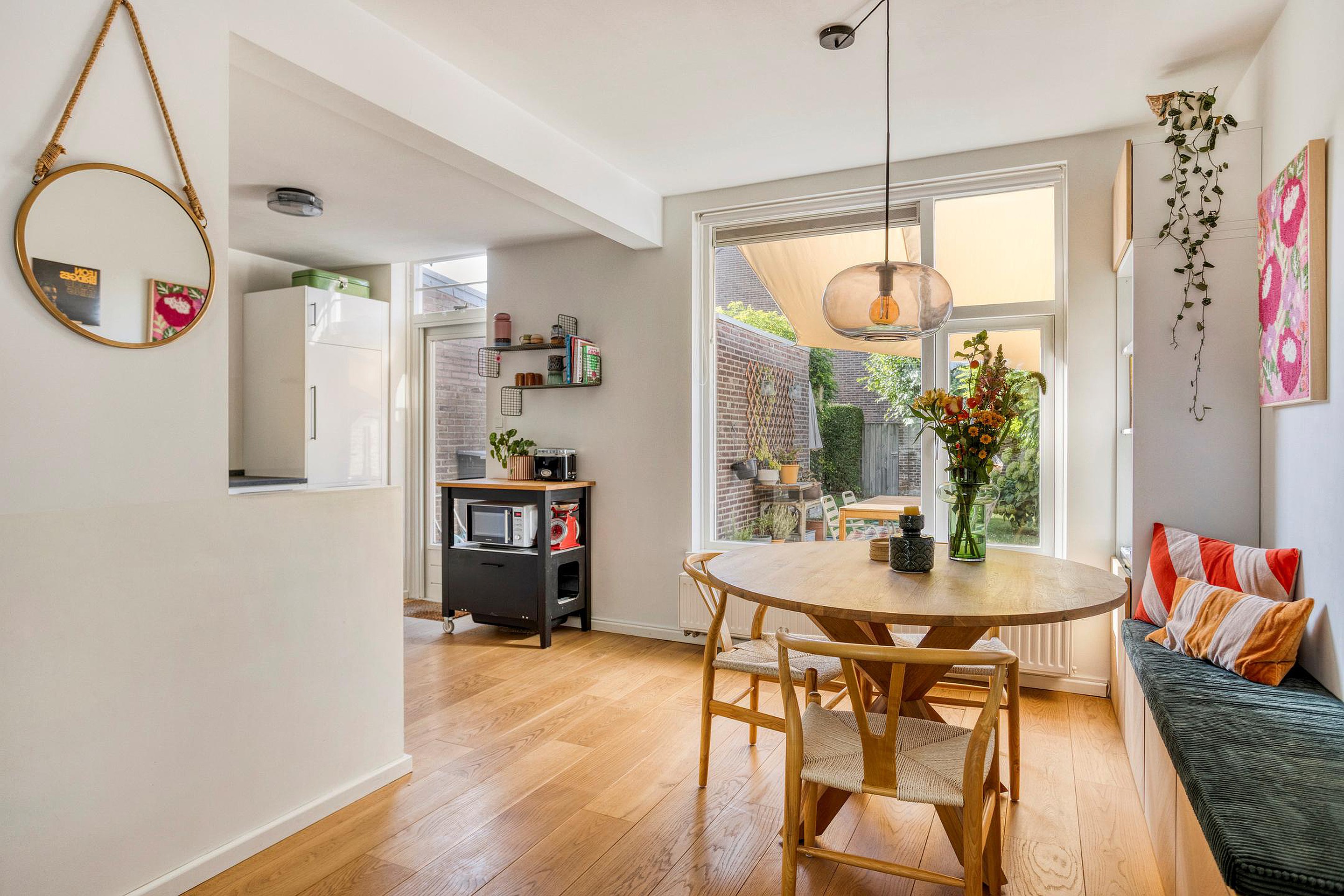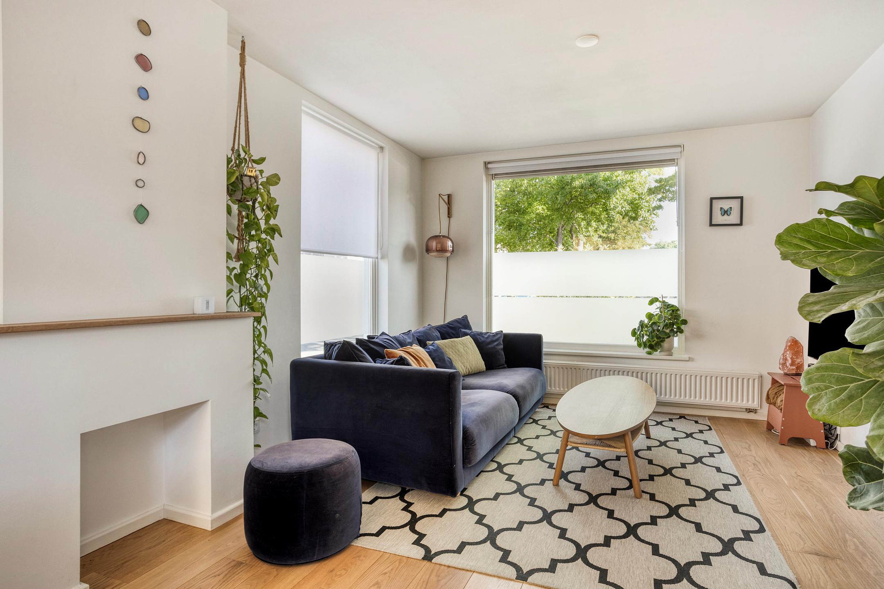 Entree met hal, meterkast en modern toilet voorzien van wandcloset en fonteintje. De woonkamer (23m2) kenmerkt zich door een prettige lichtinval dankzij de hoekligging en is afgewerkt met een houten vloer, wat zorgt voor een warme en verzorgde uitstraling.