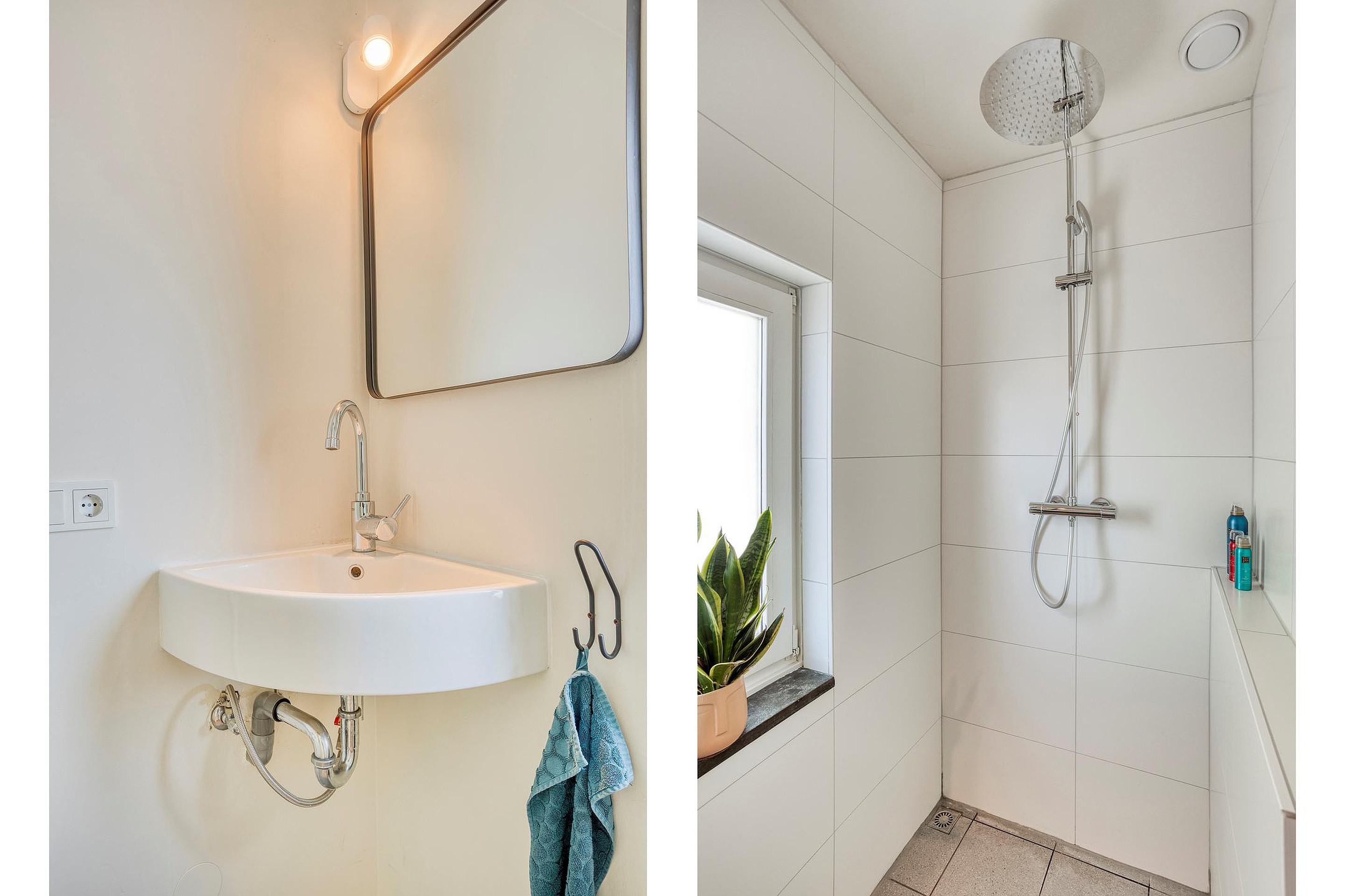 Overloop met bergkast en toegang tot drie slaapkamers met een oppervlakte van circa 11m2, 10m2 en 7m2. Alle slaapkamers zijn voorzien van vloerbedekking. De moderne badkamer (3m2) is stijlvol afgewerkt en voorzien van een inloopdouche en een vaste wastafel.