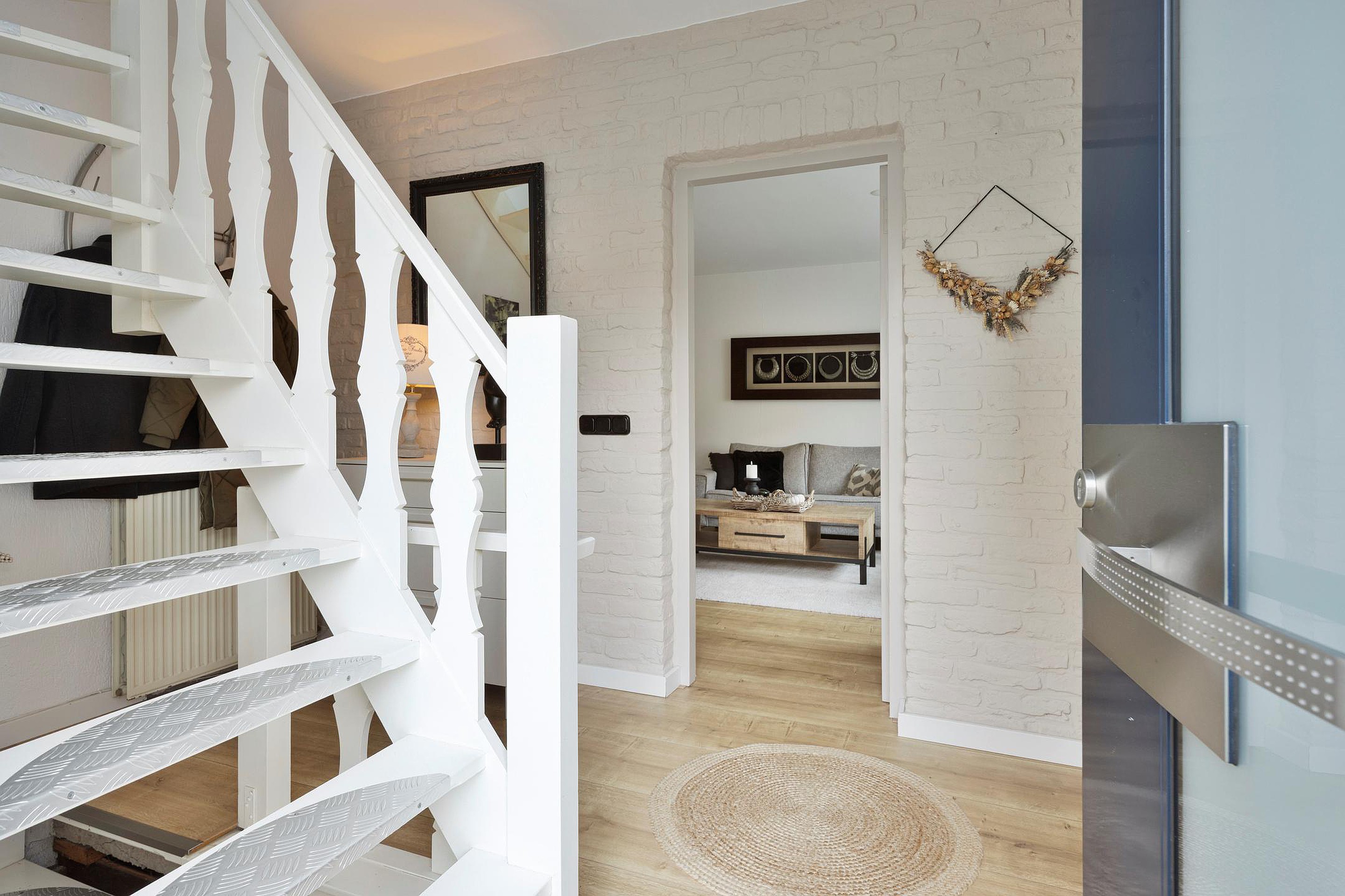 De gehele begane grond is, met uitzondering van het toilet, afgewerkt met een nette laminaatvloer.
