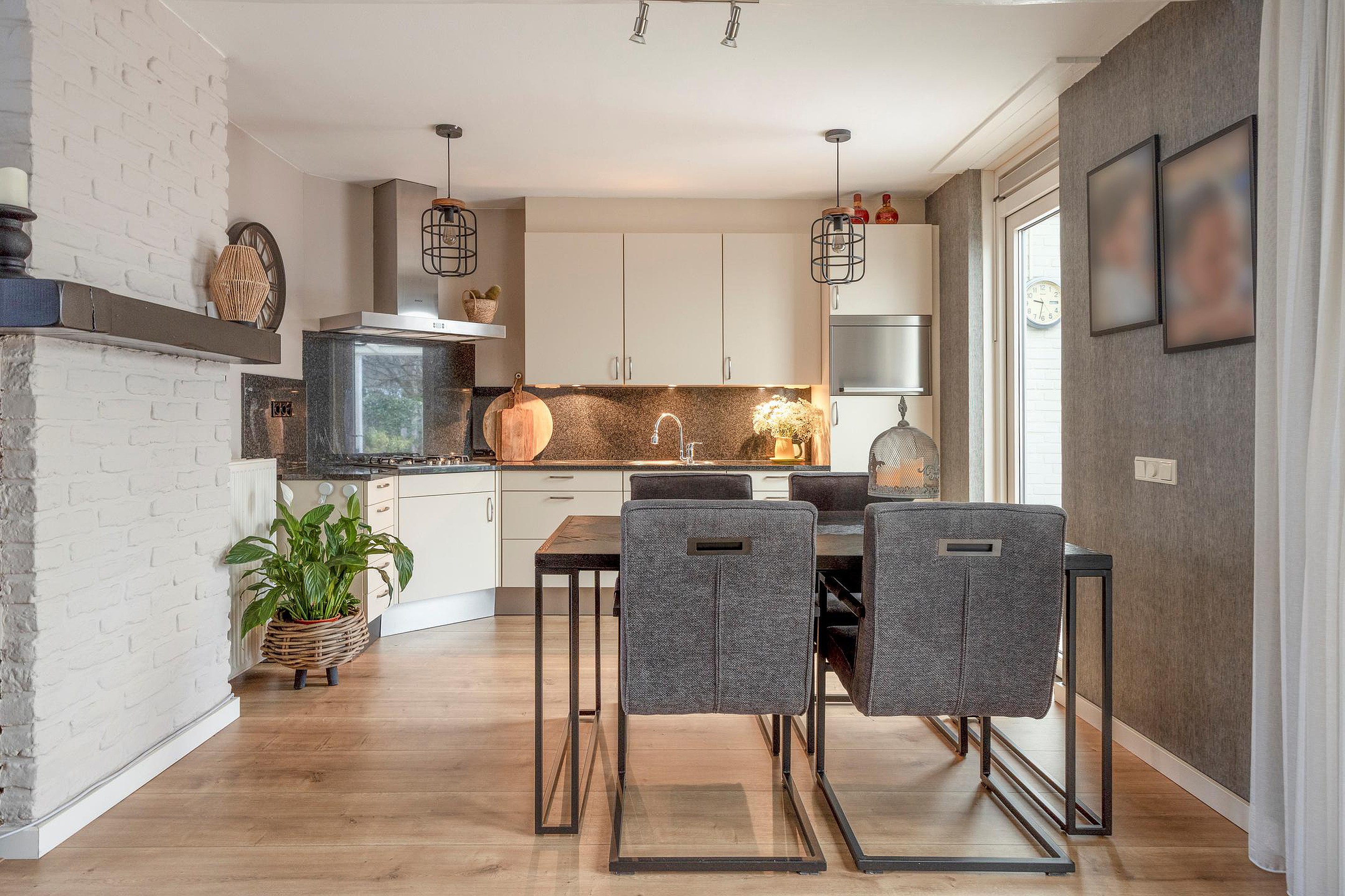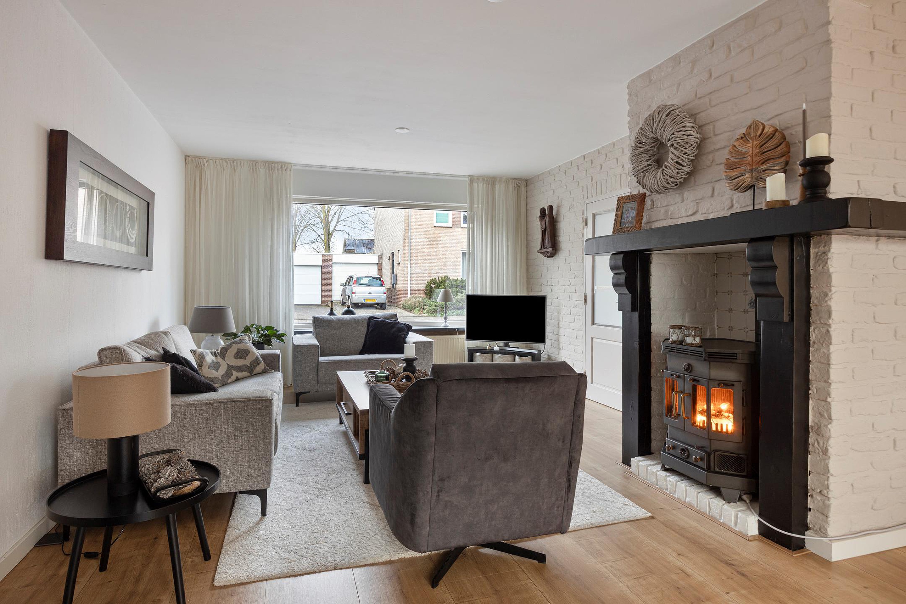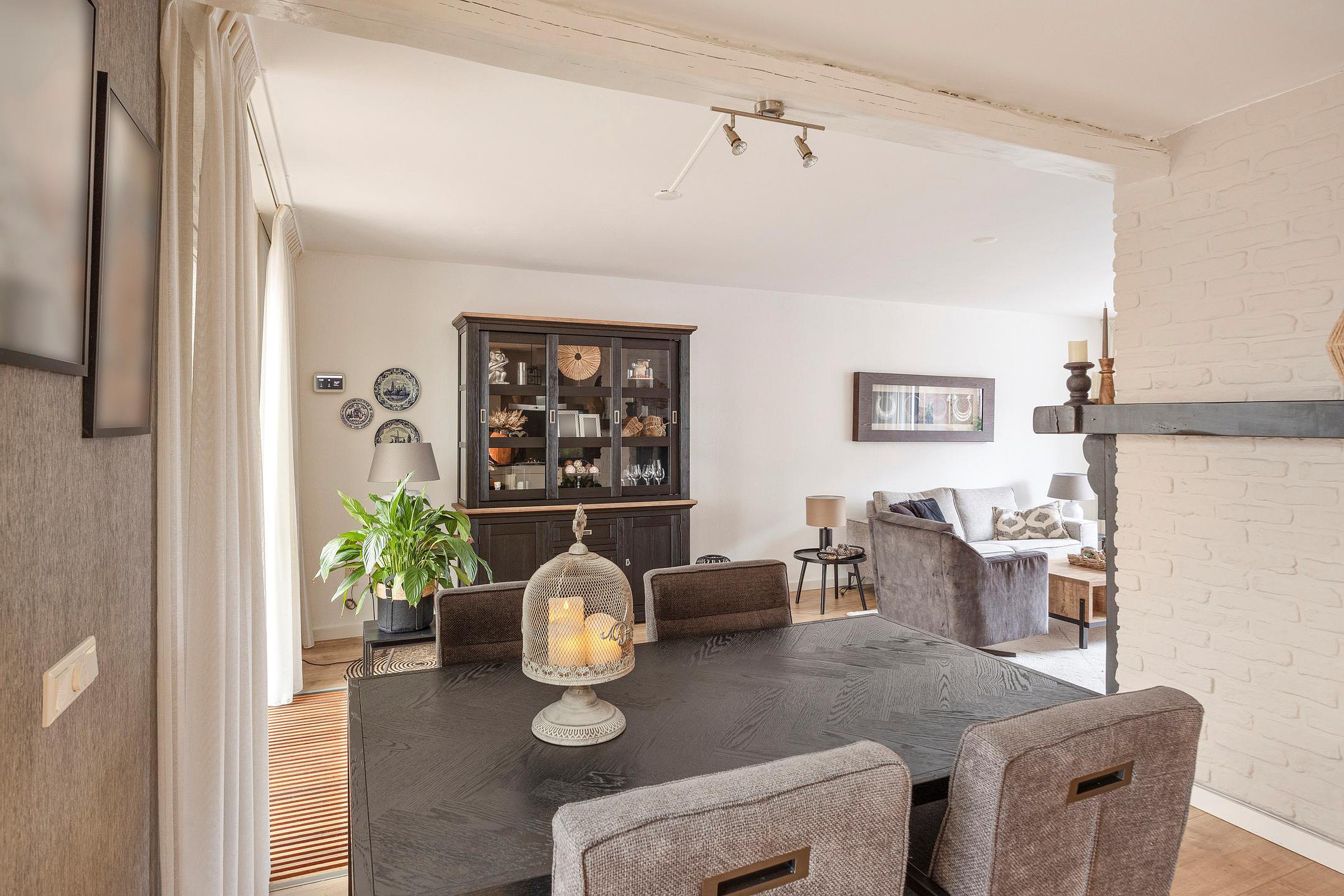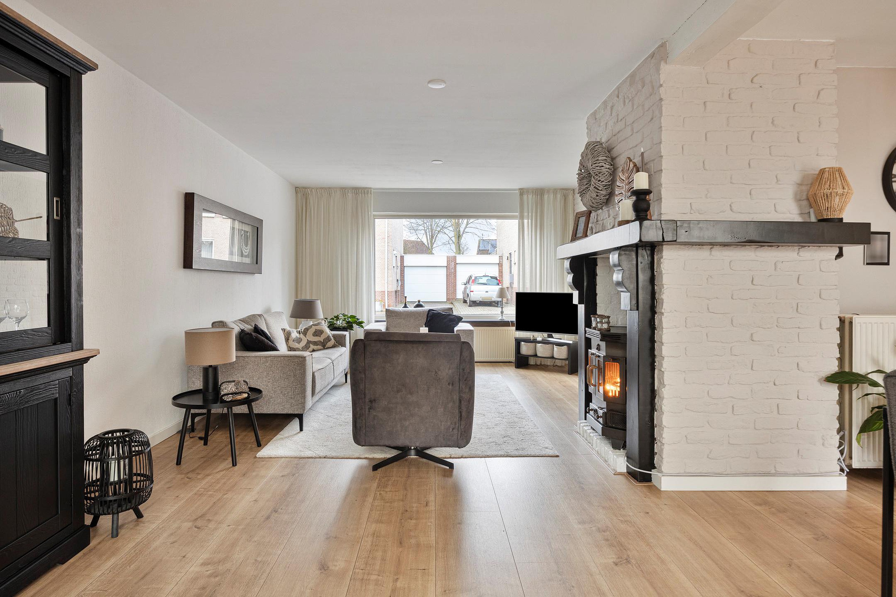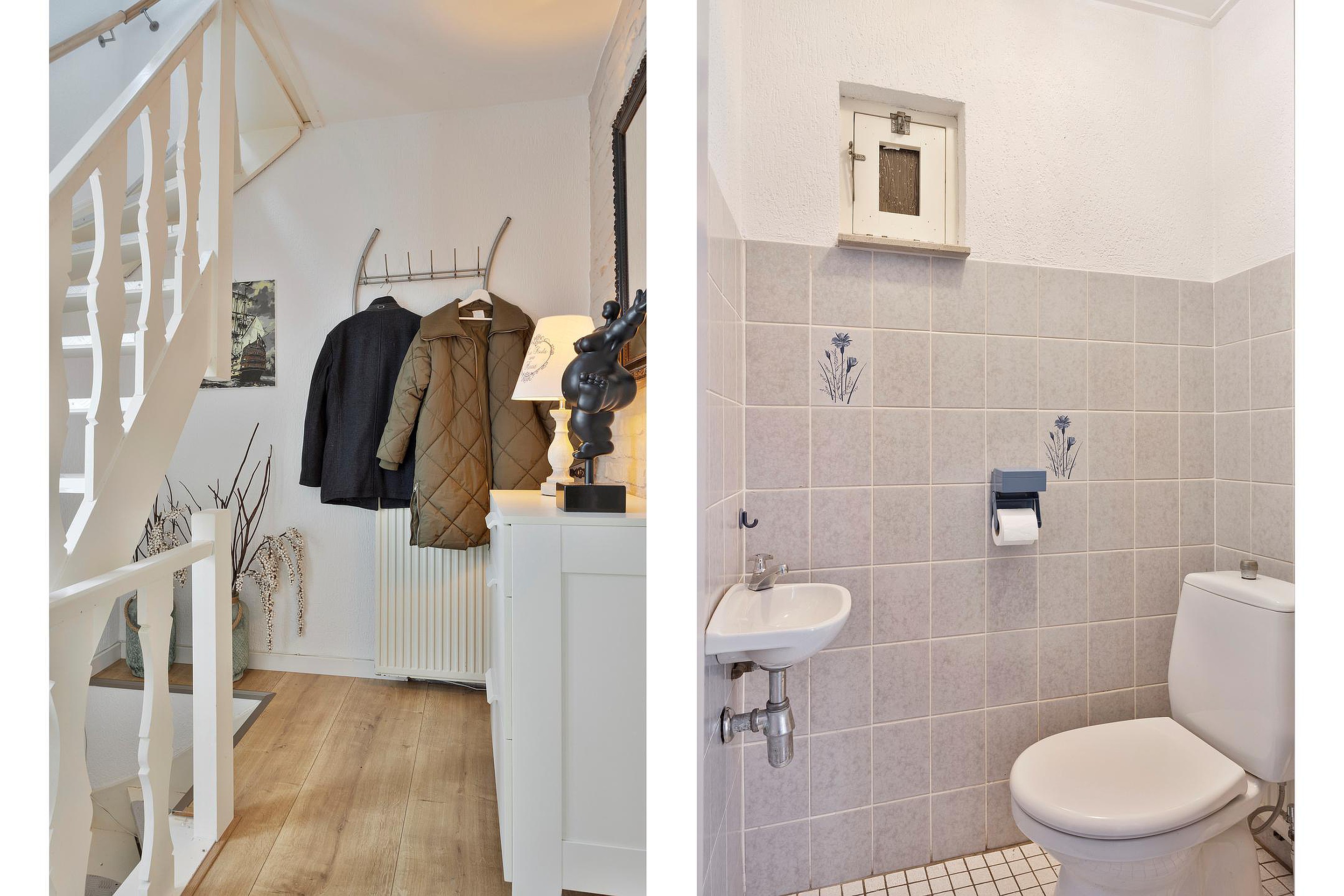 Via de entree komt u in de verzorgde hal met meterkast en een nette toiletruimte, voorzien van een staand closet en fonteintje. Vanuit hier bereikt u de ruime en lichte woonkamer van ca. 32 m2 (8 × 4m), waar sfeer en comfort samenkomen. Aan de voorzijde van de woning is een fijne zithoek gesitueerd, terwijl aan de achterzijde een gezellige eethoek naadloos overloopt in de open keuken. De kachel zorgt voor een warme, gezellige uitstraling, terwijl de grote raampartij aan de voorzijde zorgt voor een prettige hoeveelheid daglicht.