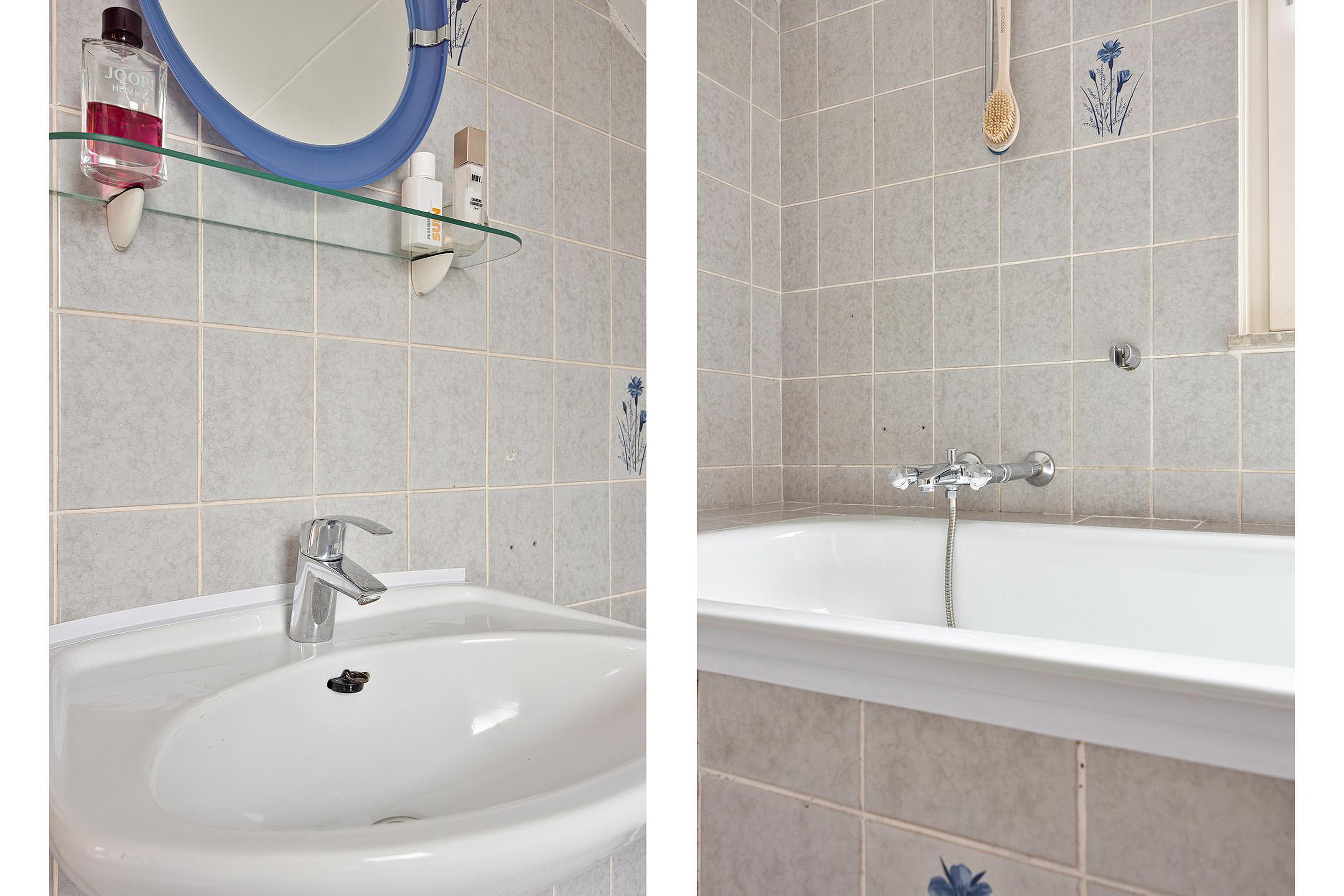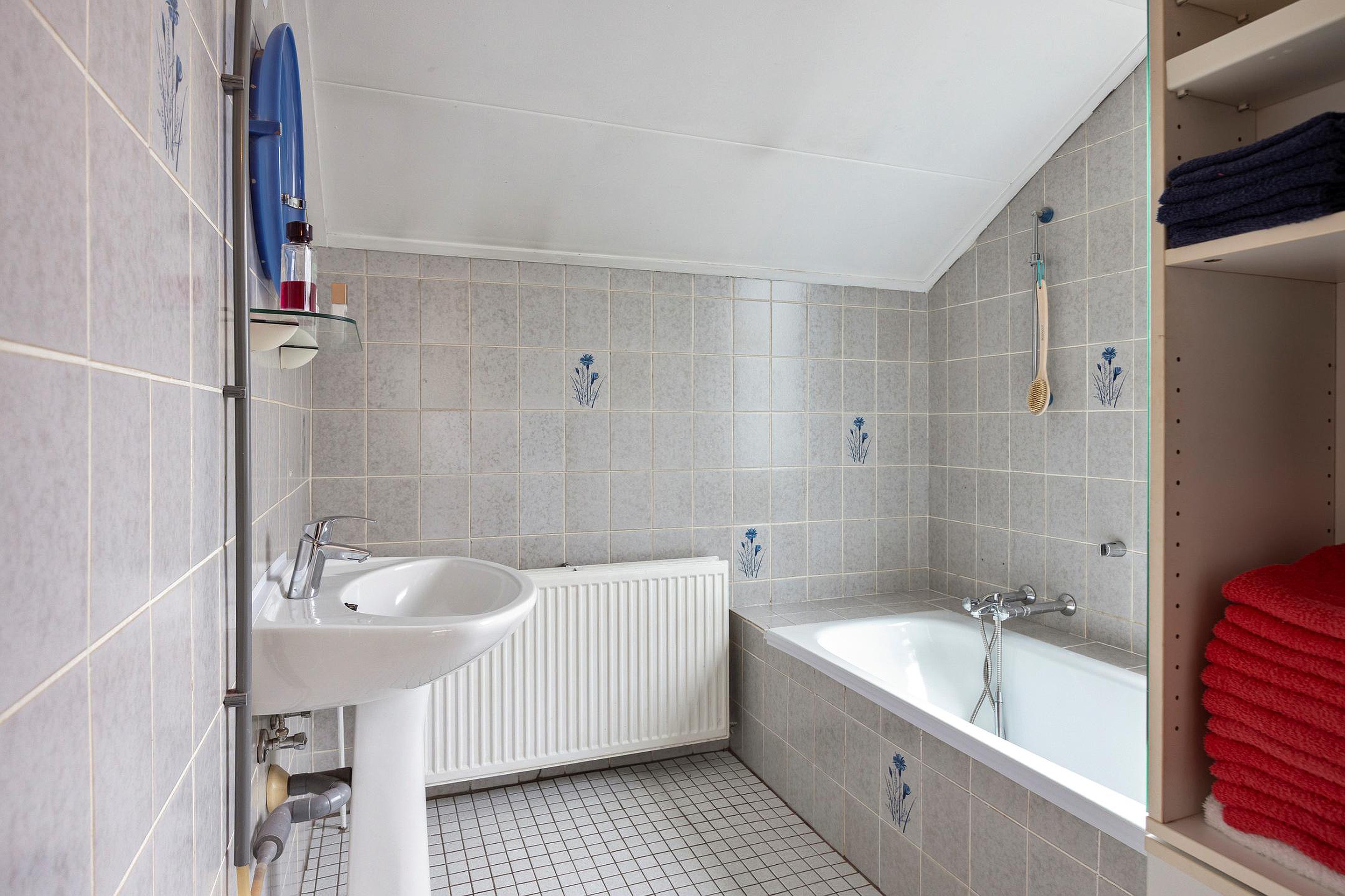 Op de eerste verdieping bevindt zich de overloop met toegang tot drie slaapkamers en de badkamer. De badkamer van ca. 5 m2 is voorzien van een ligbad met douche en een vaste wastafel.