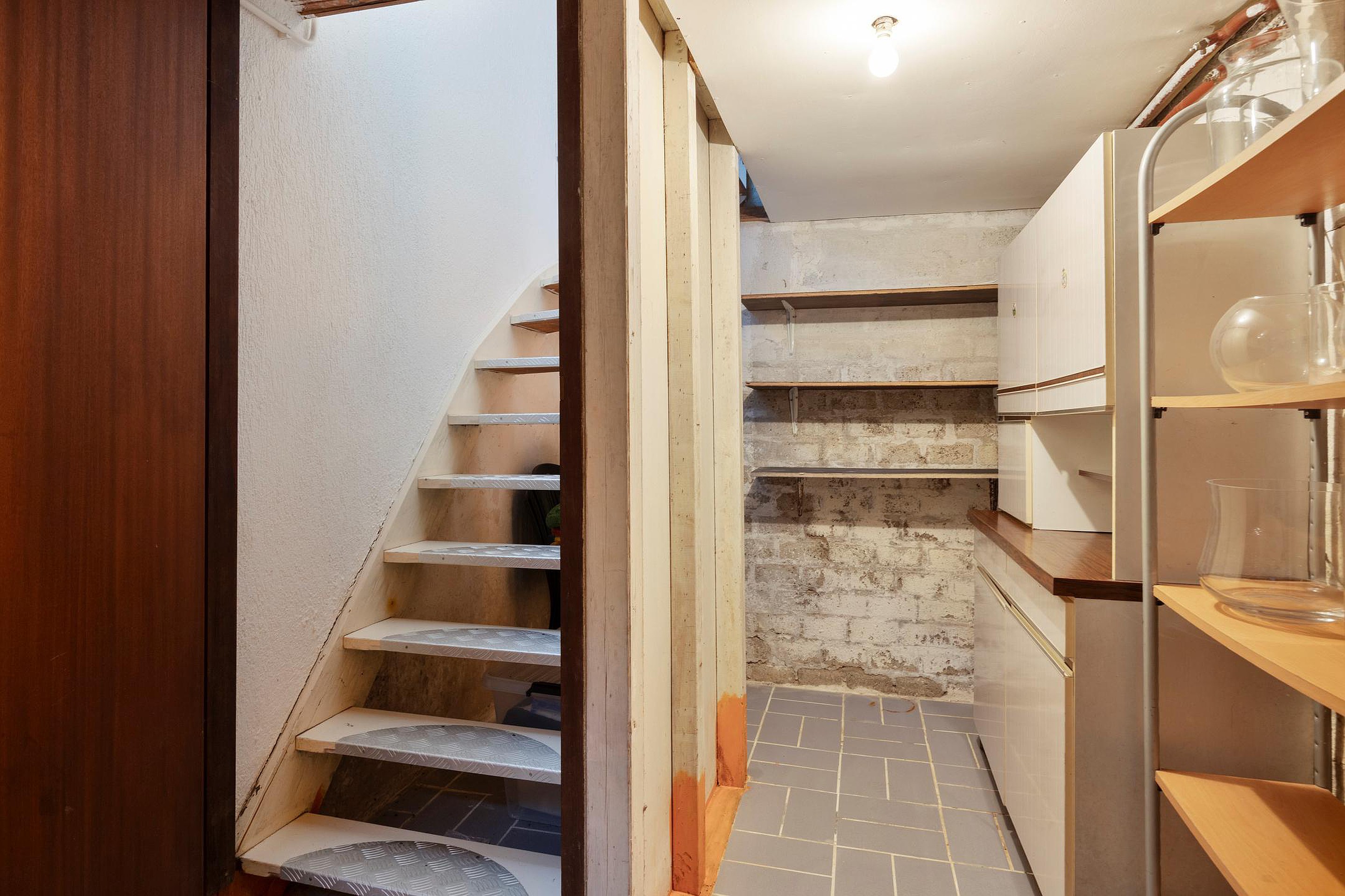 In het souterrain bevindt zich een praktische kelderruimte van ca. 9 m2 met stahoogte. Deze ruimte wordt momenteel gebruikt als provisiekelder, maar leent zich ook uitstekend voor extra opslag of bijvoorbeeld een wijnvoorraad.