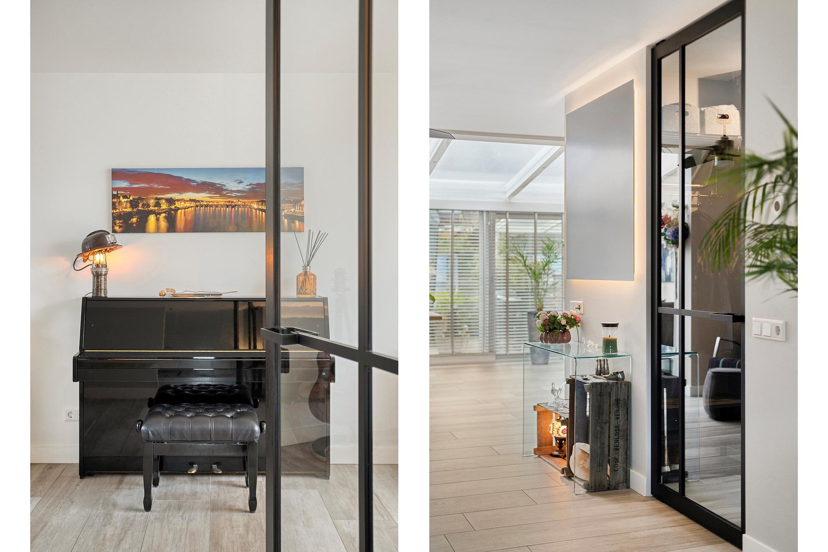 - De begane grond is voorzien van houten en kunststof kozijnen met dubbele beglazing (deels isolerend). De woonkamer is aan de voorzijde voorzien van rolluiken. De eerste verdieping beschikt over houten kozijnen met enkele beglazing en rolluiken;