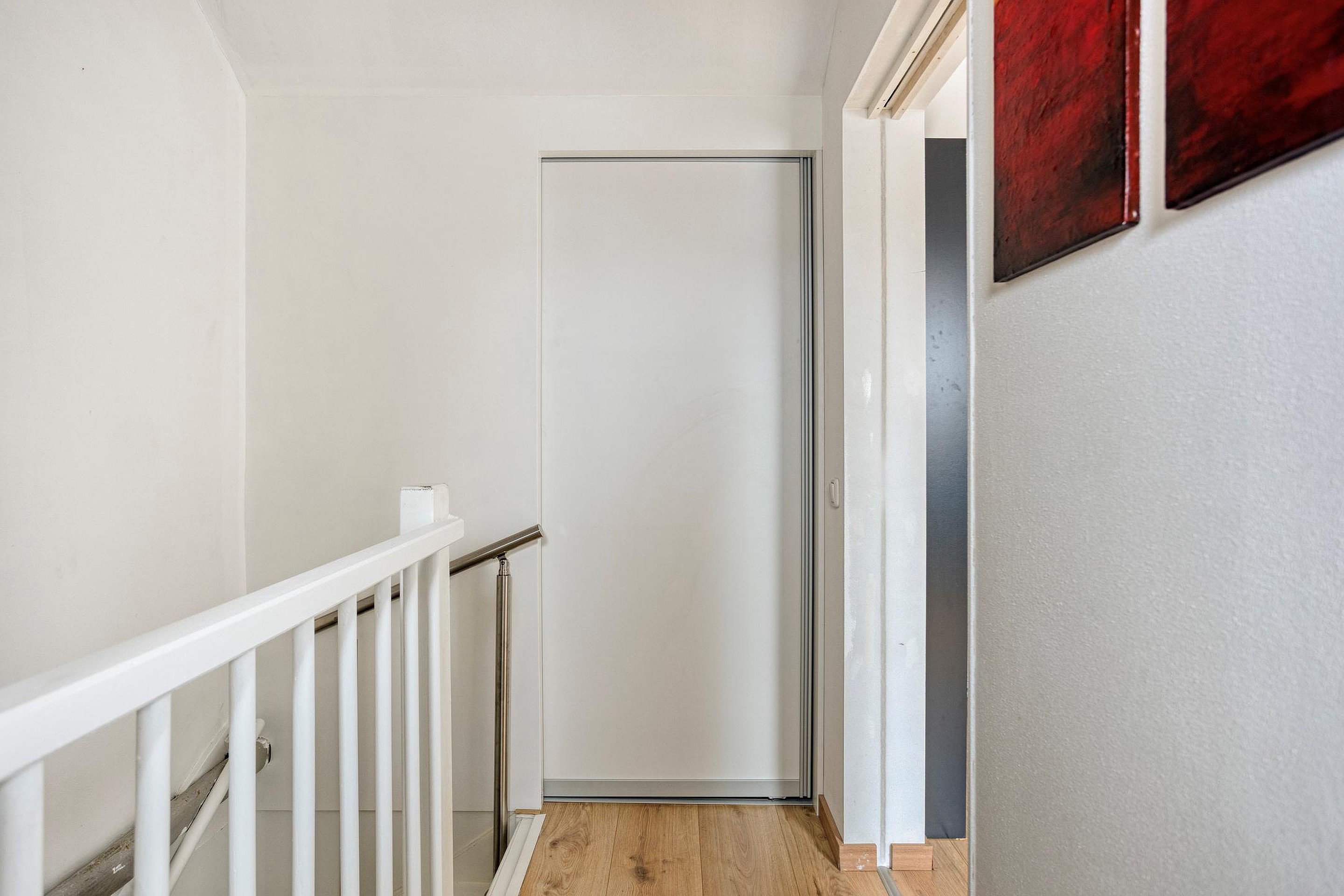 Aan de linkerzijde van de overloop bevindt zich een royale bergruimte, voorzien van een kastenwand, ideaal voor het opbergen van seizoensspullen.