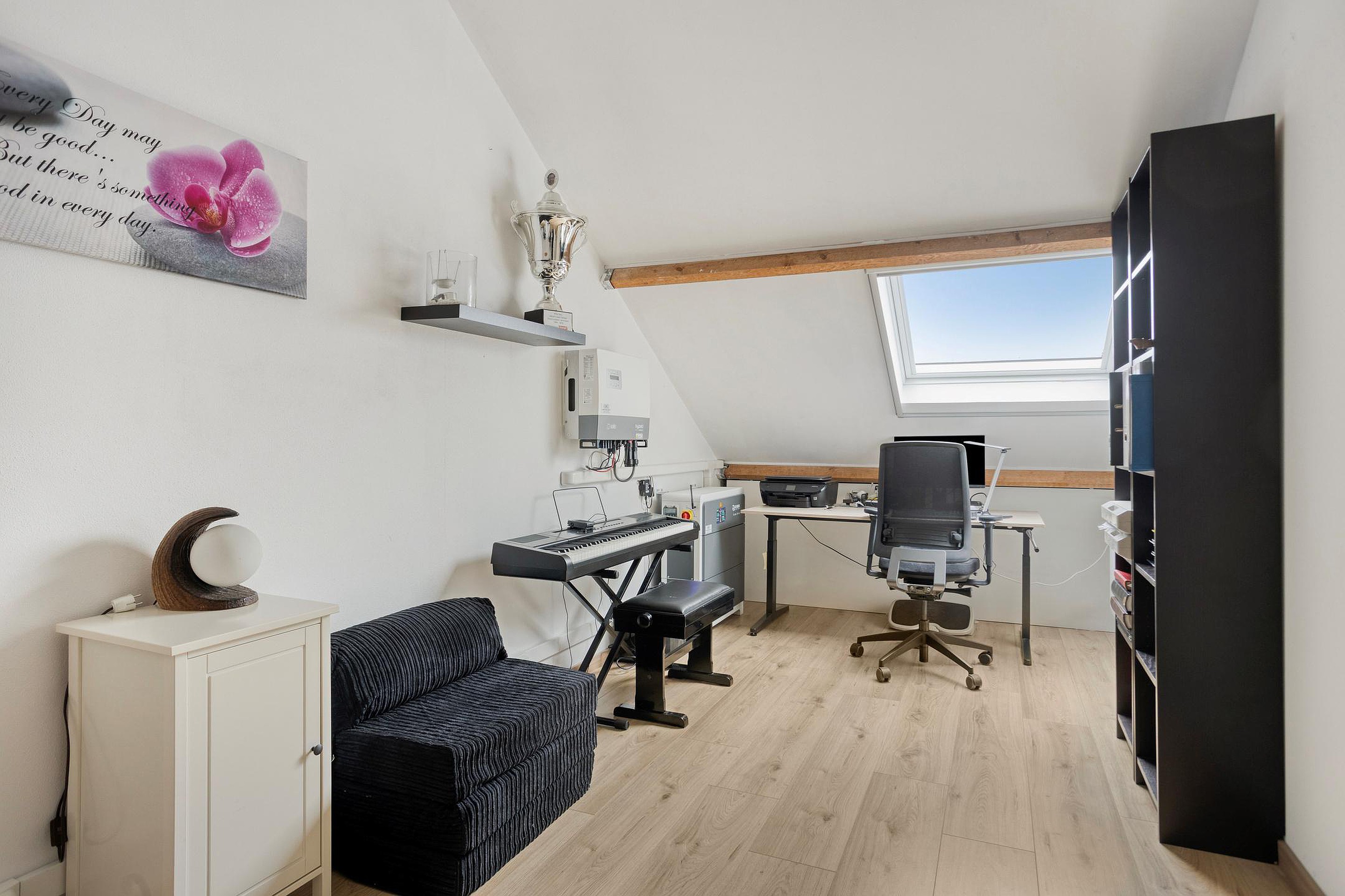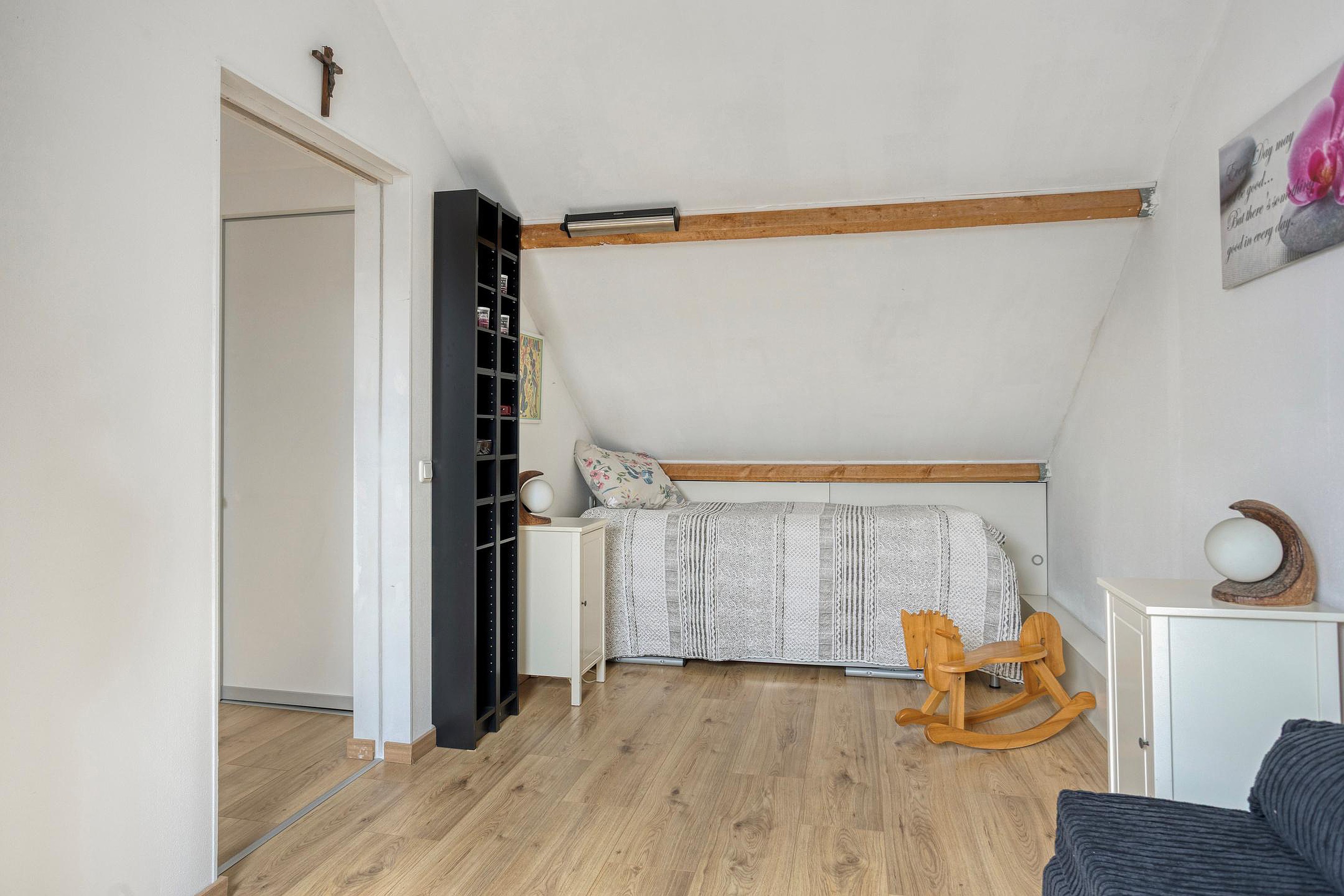 Centraal op deze verdieping is de vierde slaapkamer gesitueerd. Deze kamer is prettig van formaat en afgewerkt met een laminaatvloer. Dankzij het Velux dakraam met verduisteringsgordijn geniet de ruimte van voldoende daglicht en kan deze tevens volledig worden verduisterd. In deze slaapkamer is tevens de thuisbatterij (2025) geplaatst, waarmee de woning optimaal gebruikmaakt van de opgewekte zonne-energie. Door de efficiënte indeling is deze verdieping uitstekend geschikt als extra slaap-, werk- of hobbyruimte.