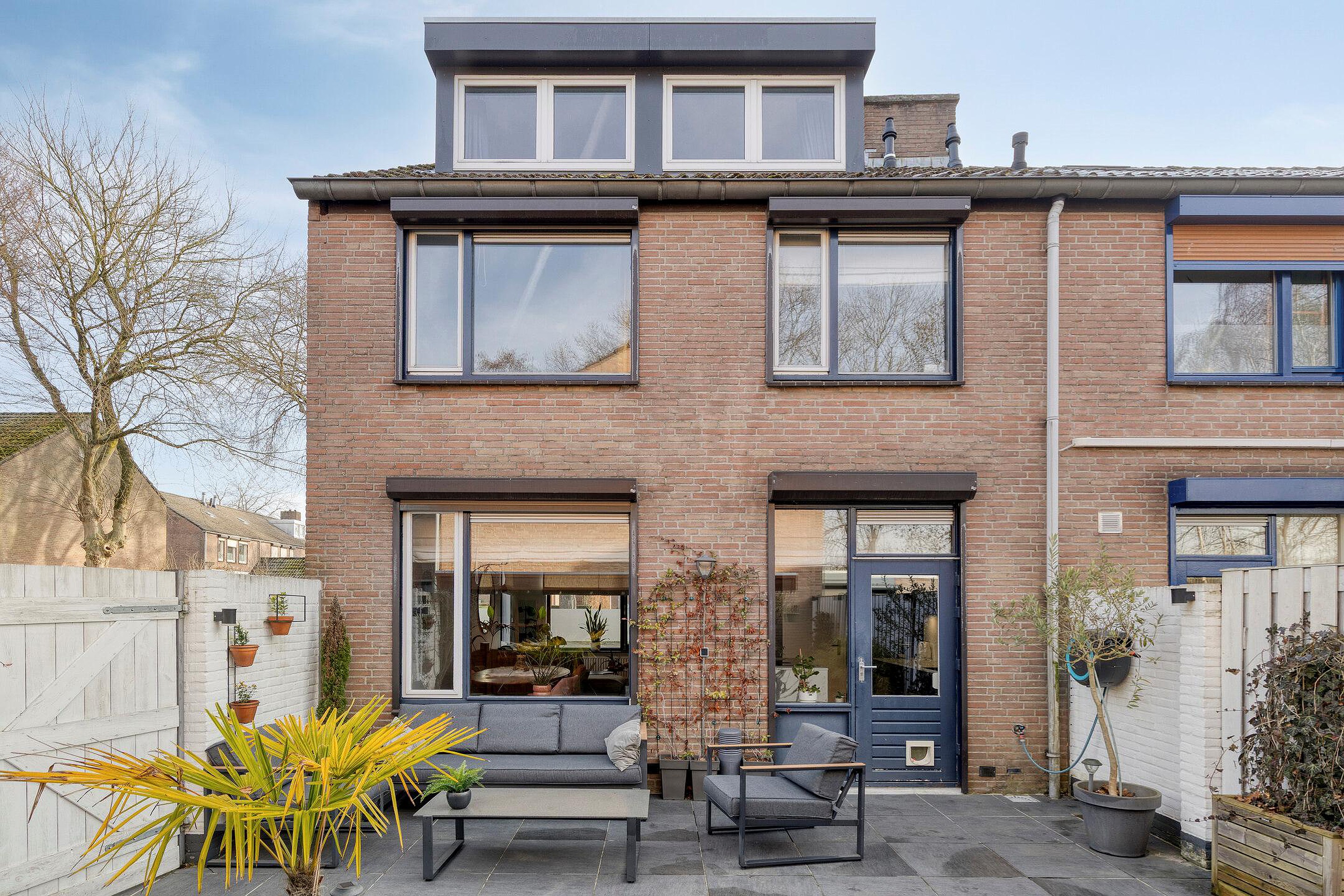De achtertuin is fraai aangelegd, volledig omheind en biedt veel privacy. Het perceel is gelegen op het westen, waardoor u in de middag en avond van de zon kunt genieten. In de tuin staat een houten berging met overdekt terras van circa 10 m2 en een praktische zij-ingang.