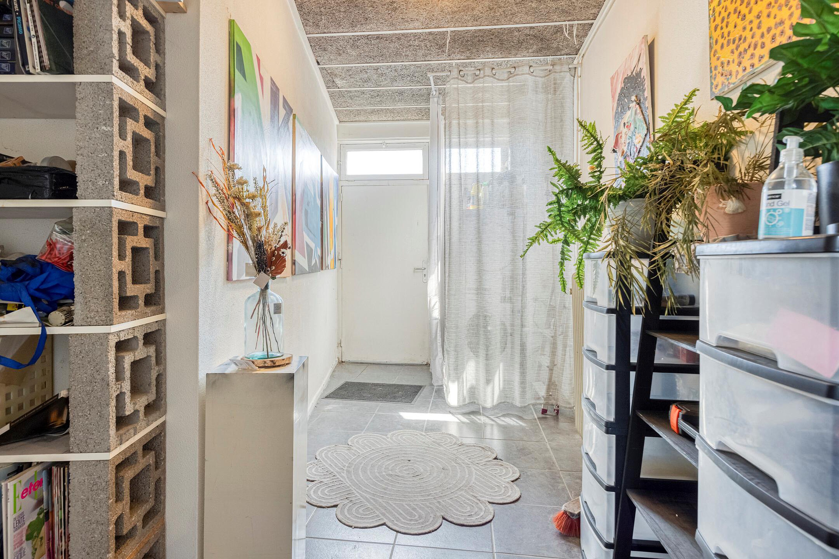 Aan de voorzijde van het object bevindt zich een entree, die toegang biedt tot zowel de commerciële ruimte op de begane grond als tot het bovengelegen appartement. Beide gedeeltes kunnen afzonderlijk worden afgesloten.