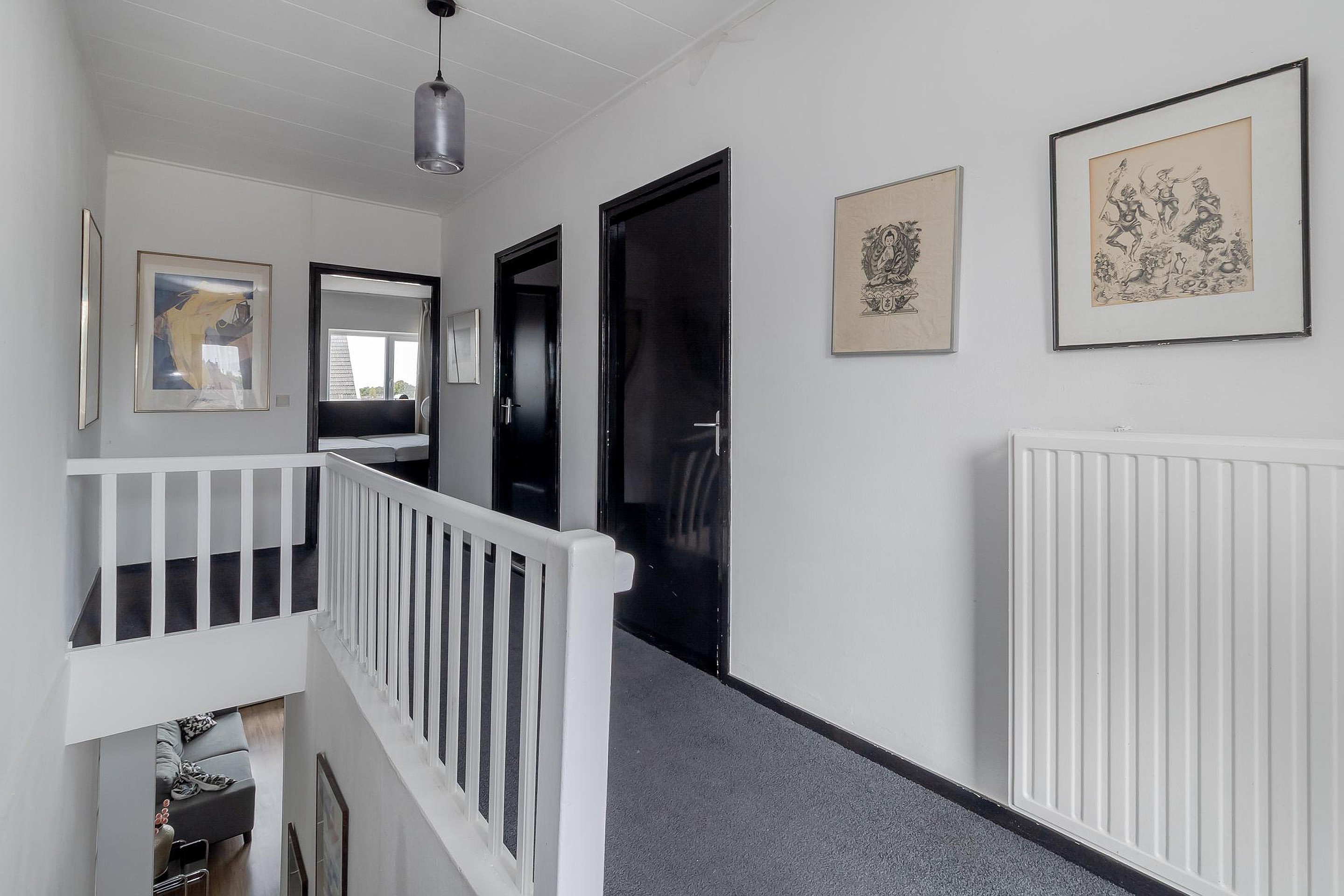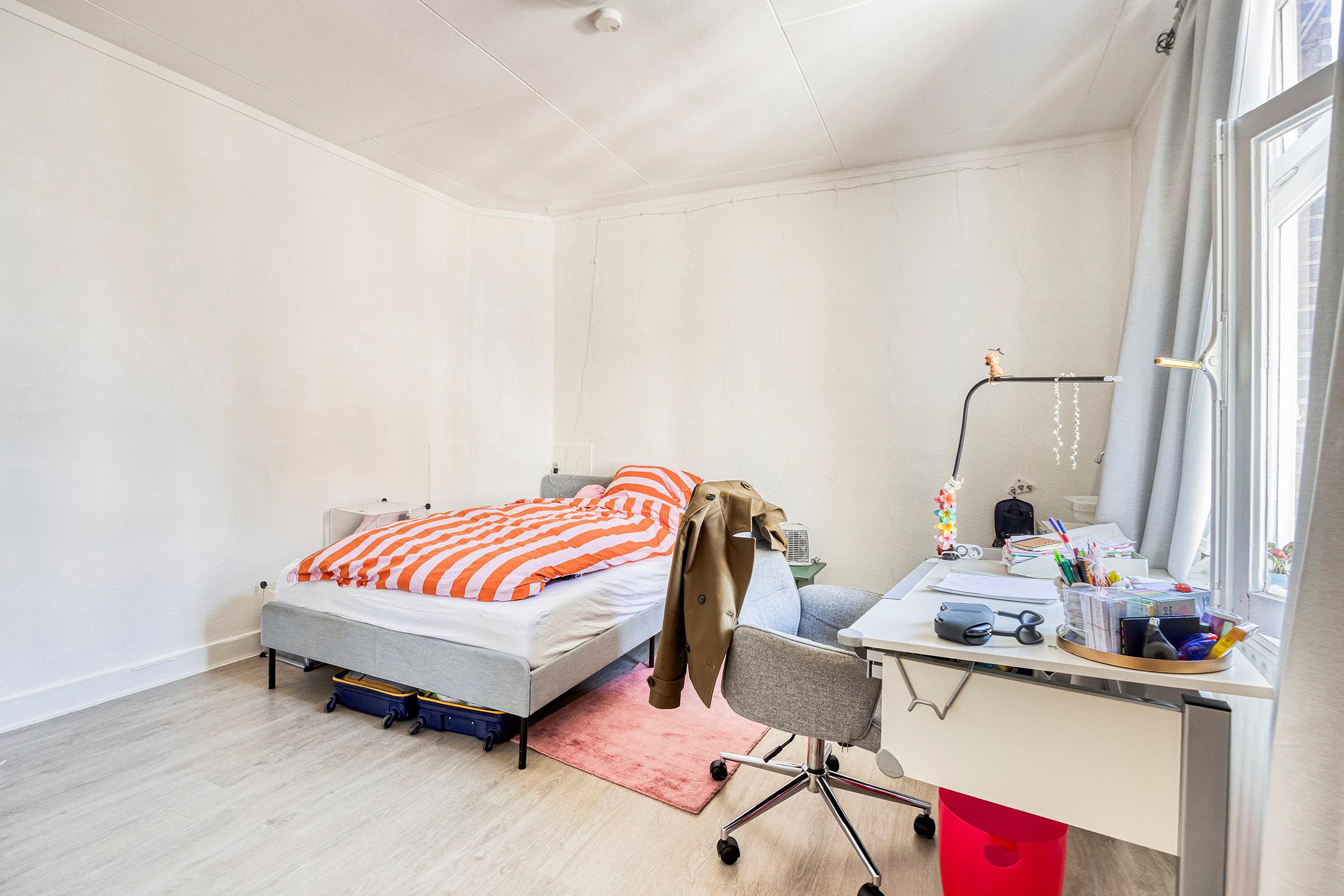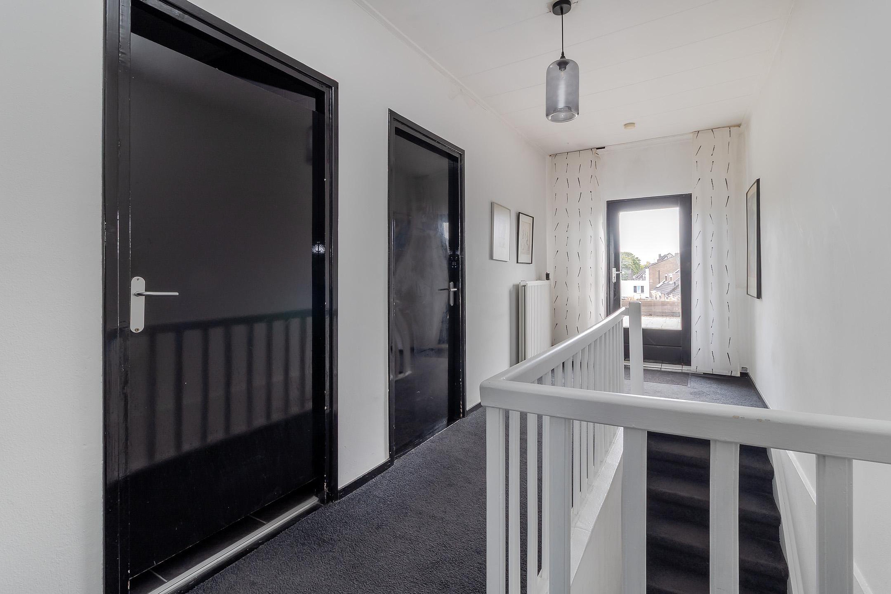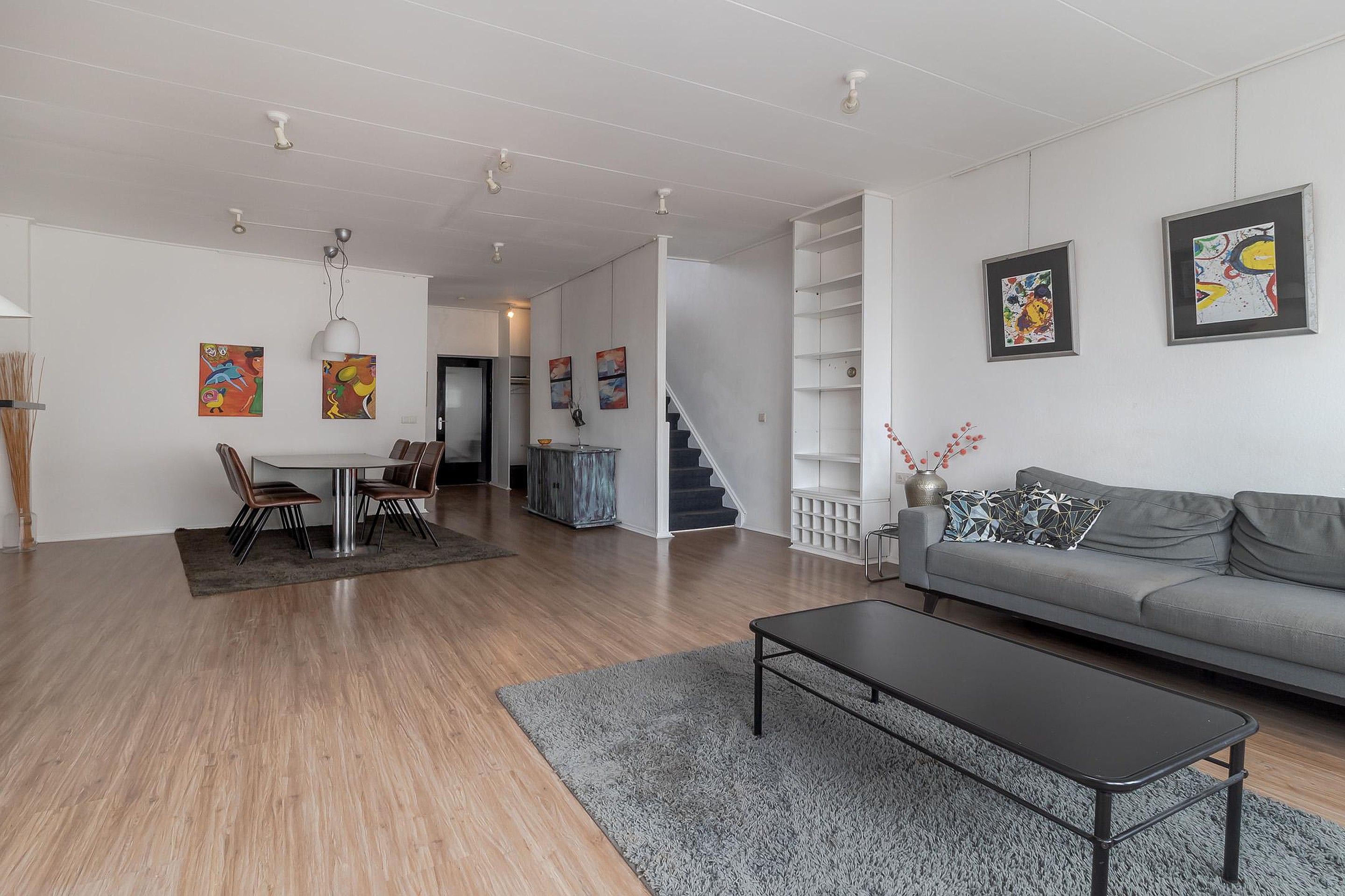 De bovenwoning is bereikbaar via de gesloten trapopgang vanuit de gezamenlijke entree. Op de eerste verdieping bevindt zich een ruime woonkamer in open verbinding met de keuken. Op deze woonlaag zijn tevens het toilet. De tweede verdieping beschikt over twee volwaardige slaapkamers en een badkamer voorzien van bad en douche, toilet en dubbele wastafel. Daarnaast is er toegang tot het royale dakterras gesitueerd, dat aan de achterzijde van het pand ligt en volop privacy biedt.