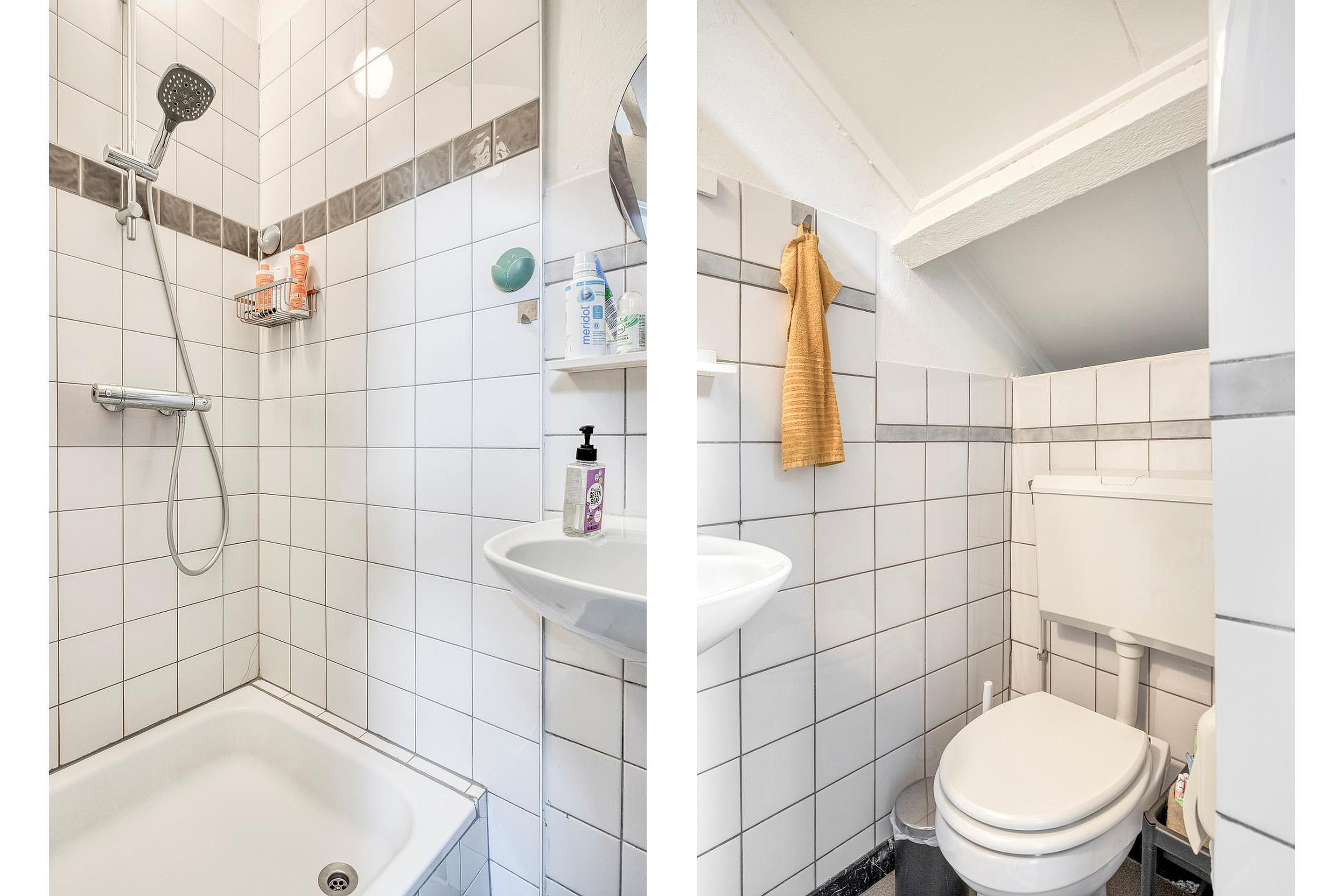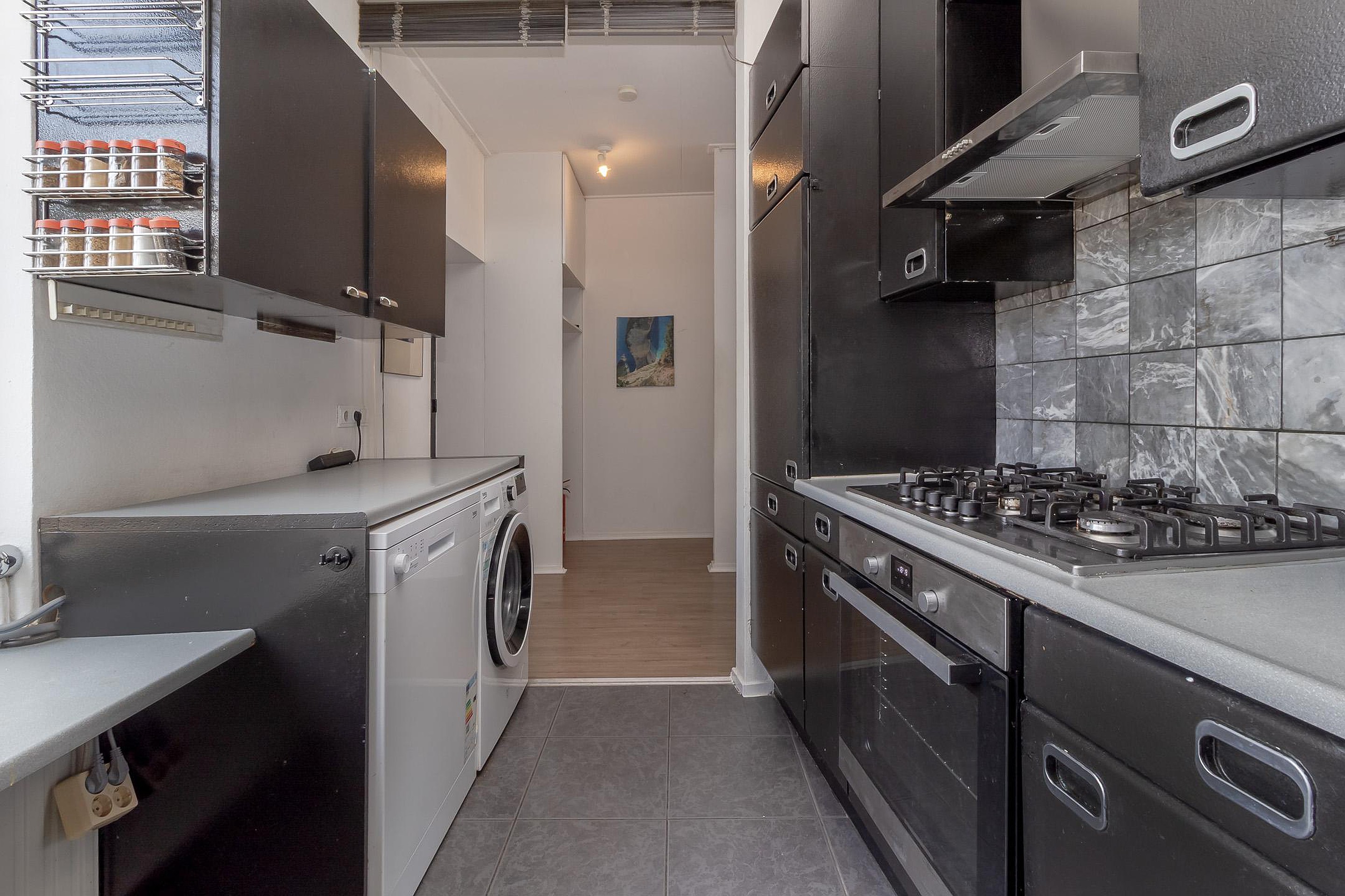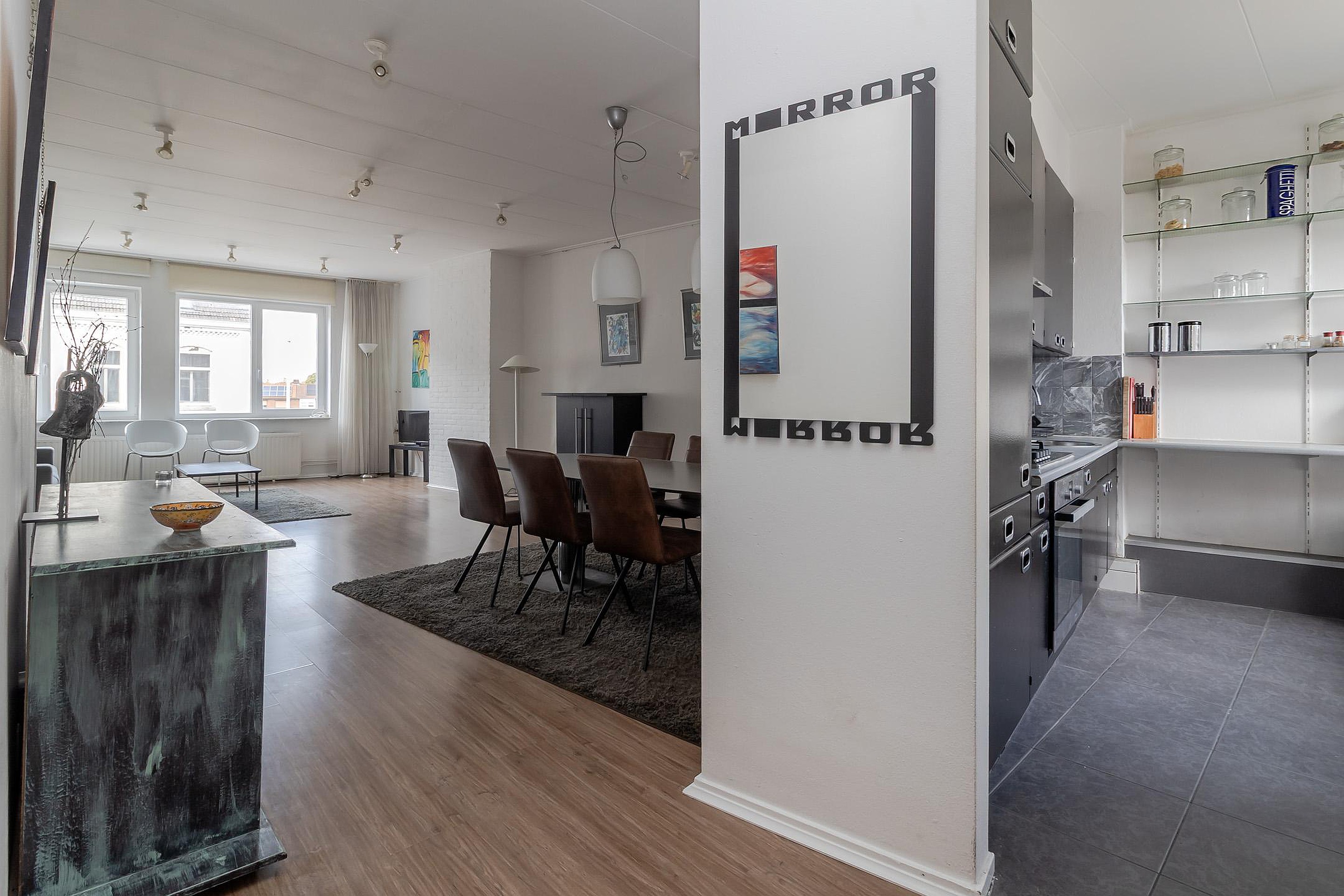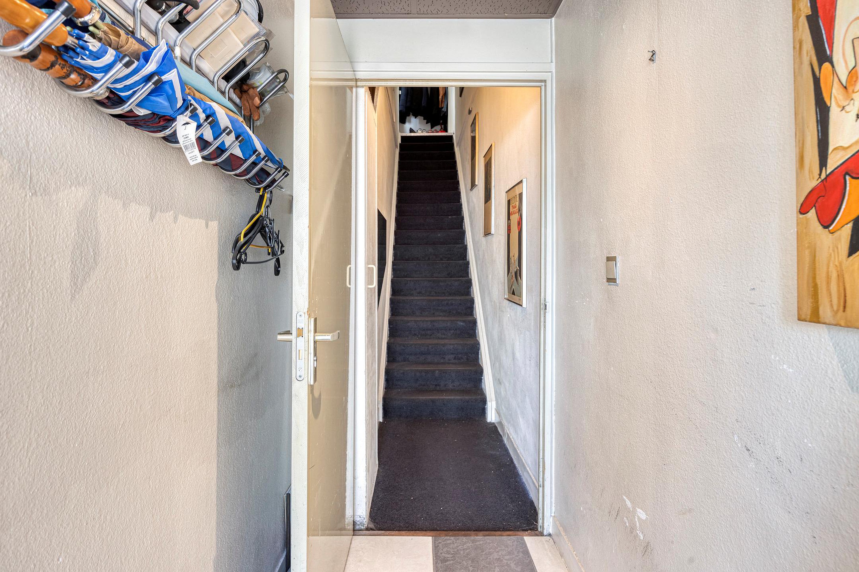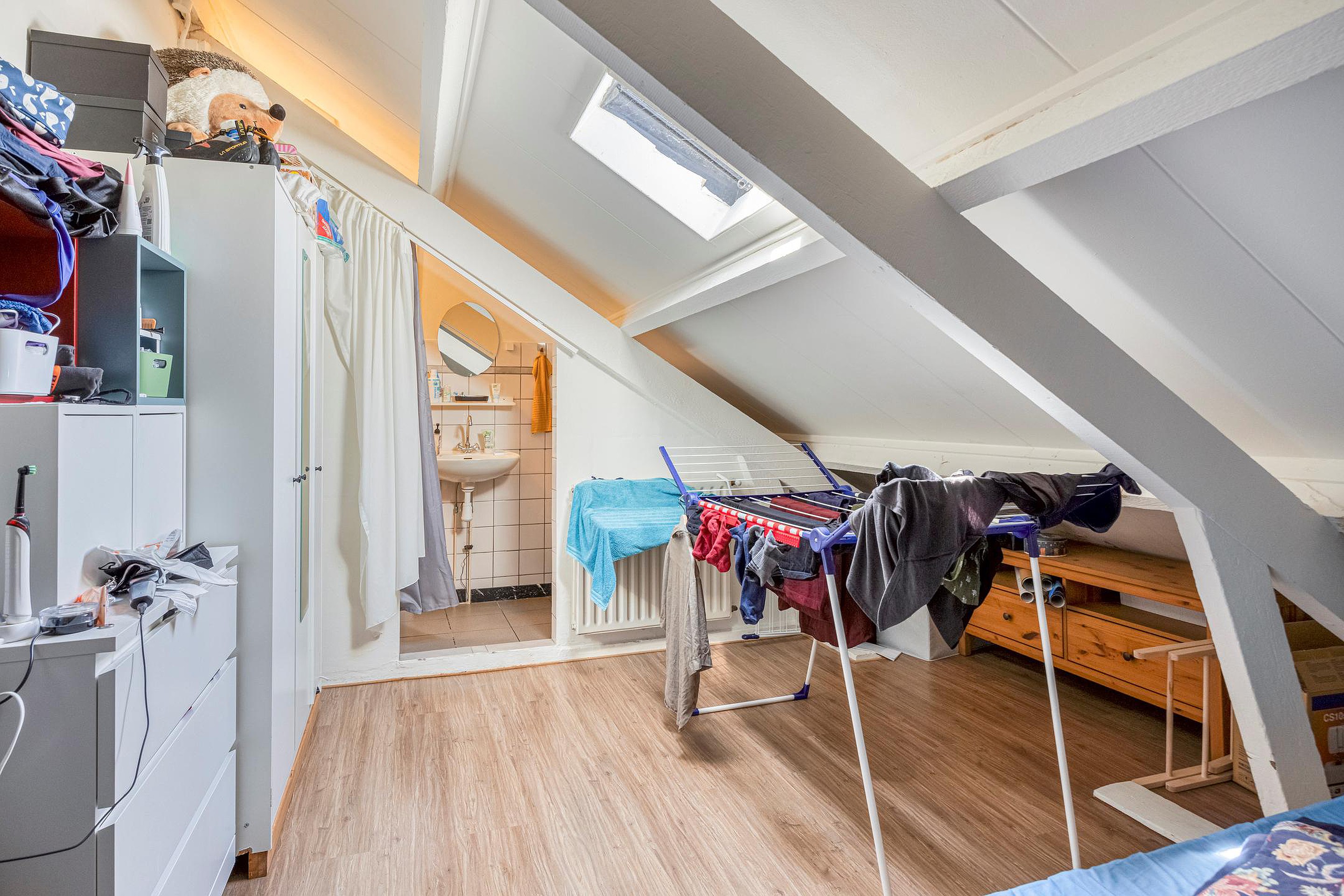 De bovenwoning is bereikbaar via de gesloten trapopgang vanuit de gezamenlijke entree. Op de eerste verdieping bevindt zich een ruime woonkamer in open verbinding met de keuken. Op deze woonlaag zijn tevens het toilet. De tweede verdieping beschikt over twee volwaardige slaapkamers en een badkamer voorzien van bad en douche, toilet en dubbele wastafel. Daarnaast is er toegang tot het royale dakterras gesitueerd, dat aan de achterzijde van het pand ligt en volop privacy biedt.