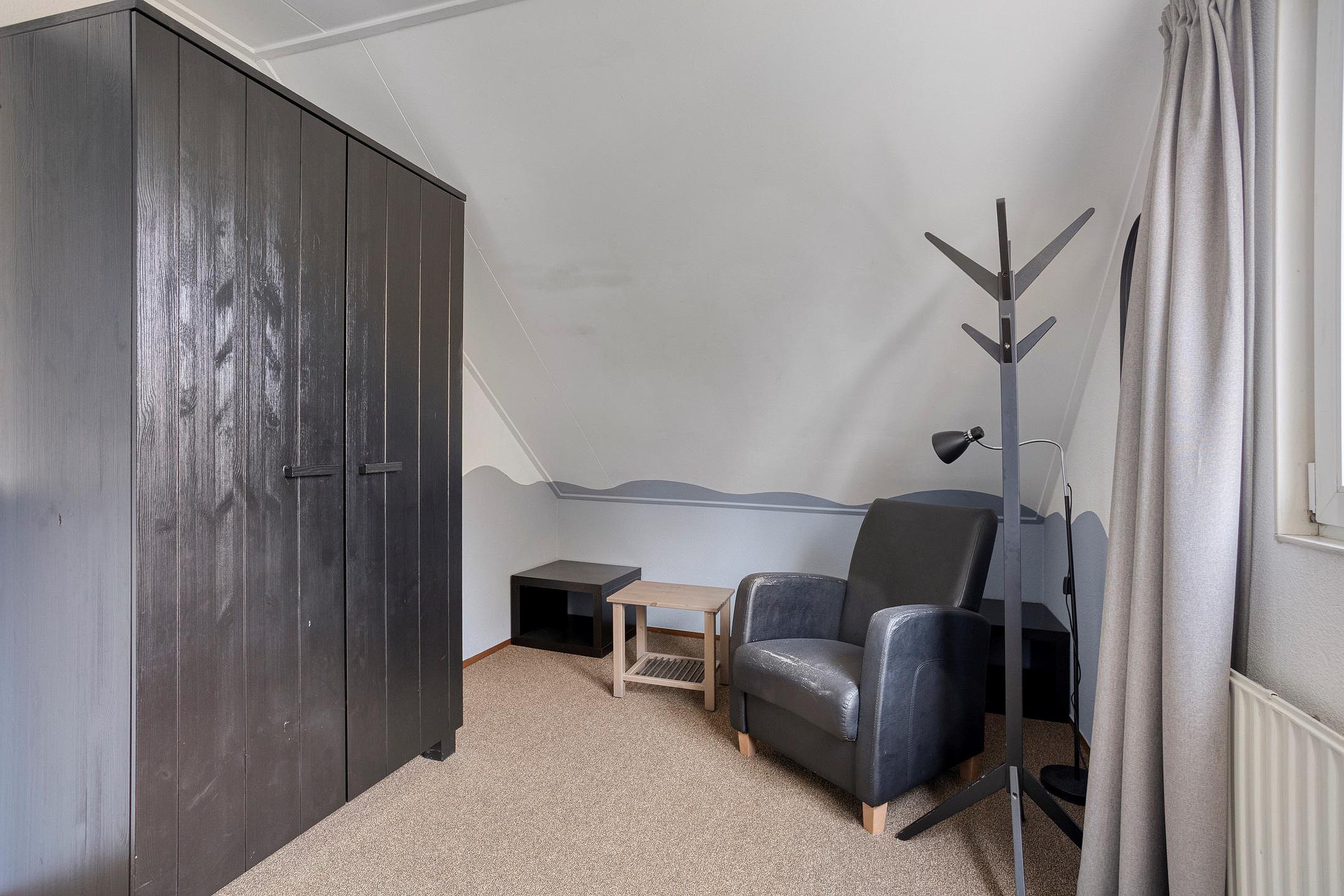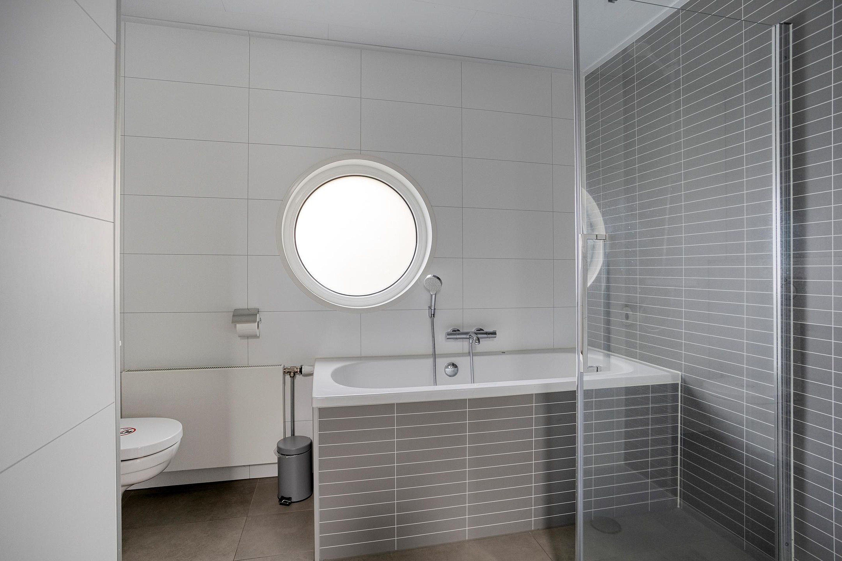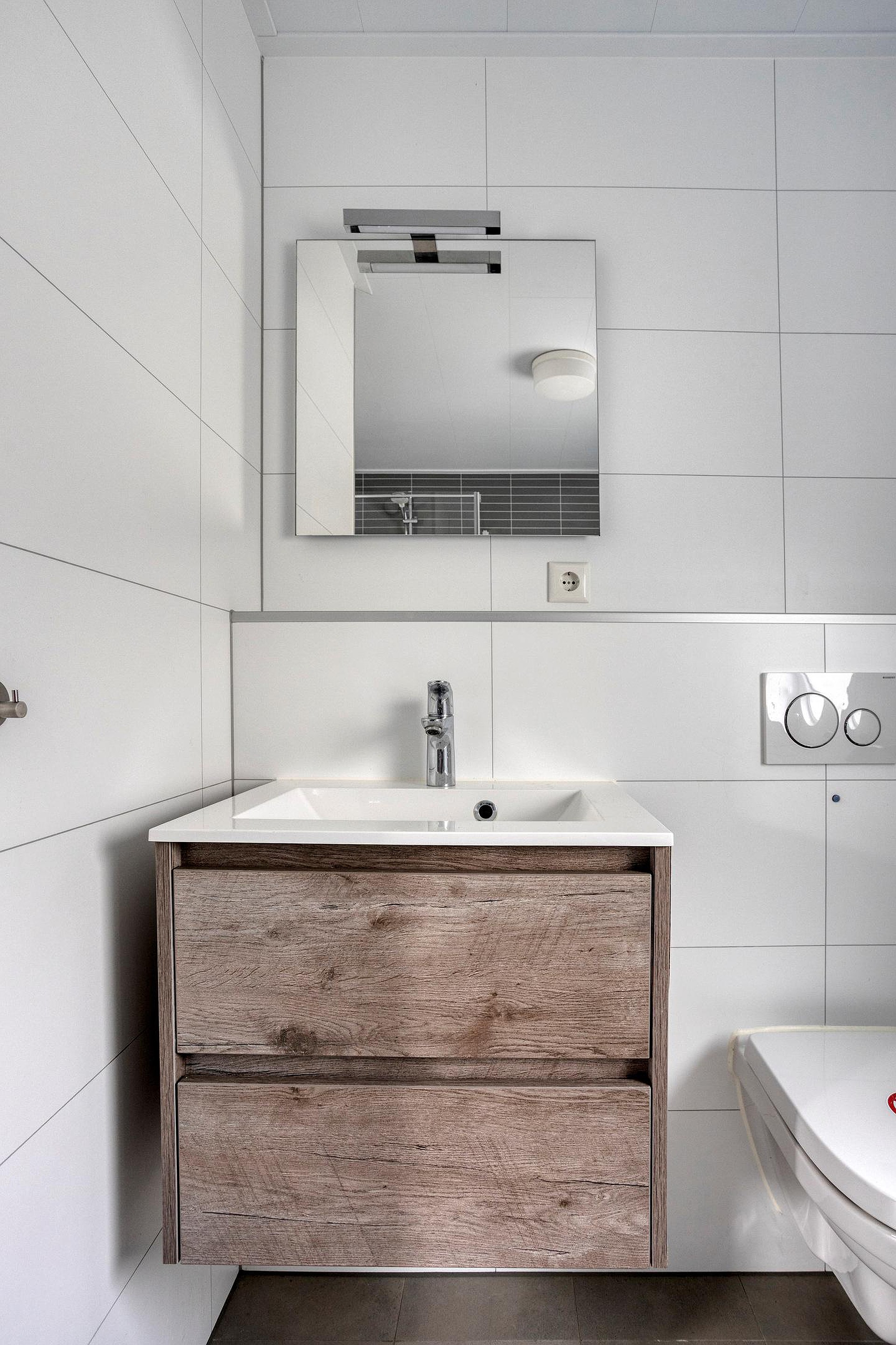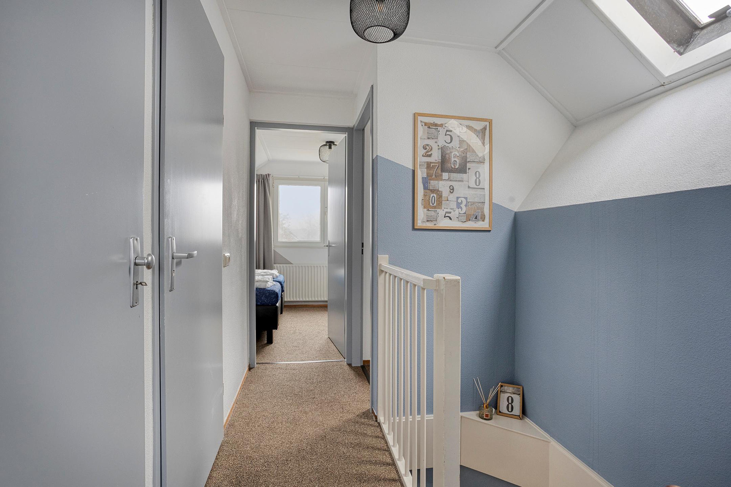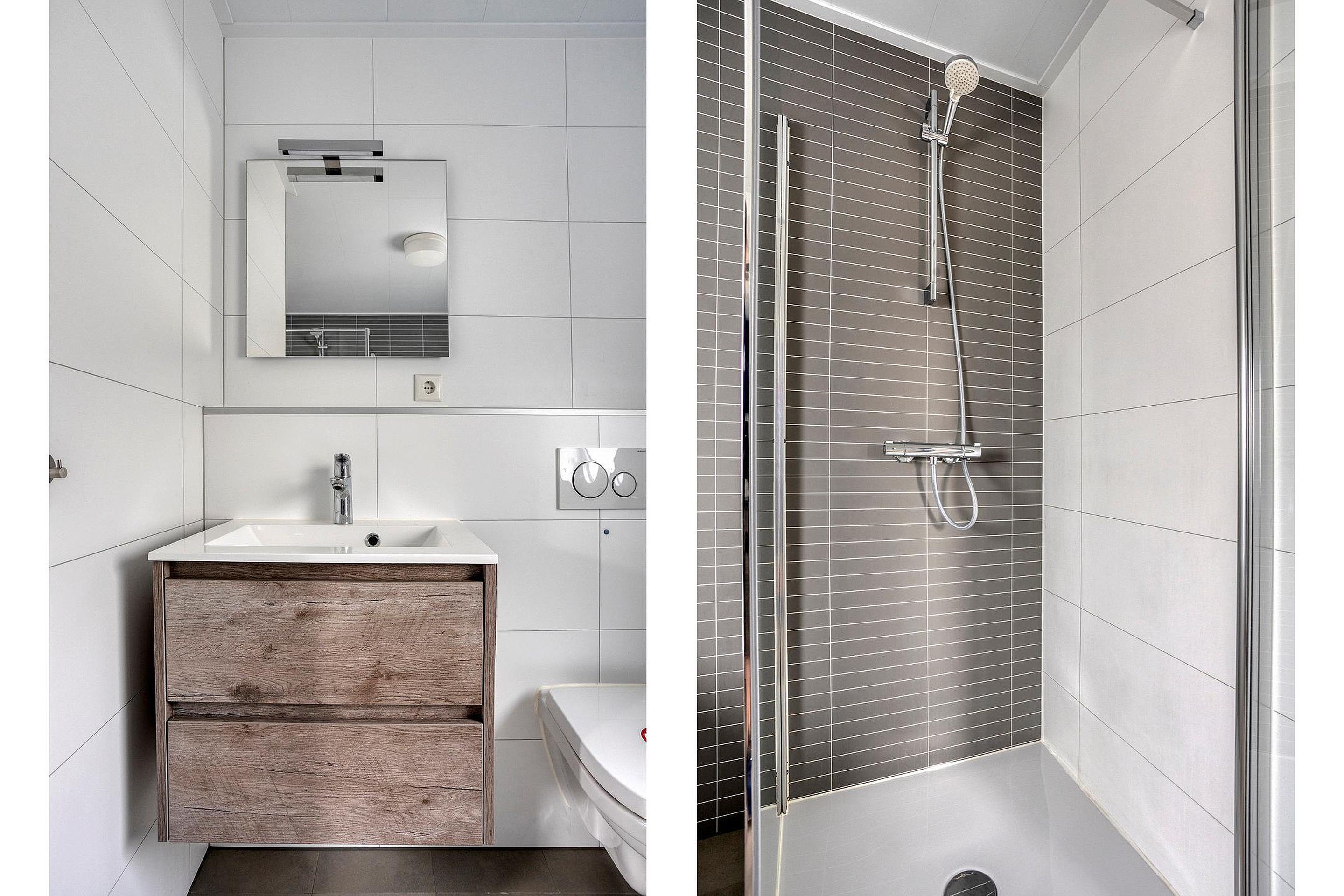 1e verdieping: de overloop geeft toegang tot 2 ruime slaapkamers en de moderne badkamer. Deze is voorzien van een tweede toilet, douchecabine en whirlpool. Achter de trap bevindt zich een afsluitbare eigenaarskast, waardoor deze woning uitermate geschikt is voor de combinatie van verhuren en zelf genieten.