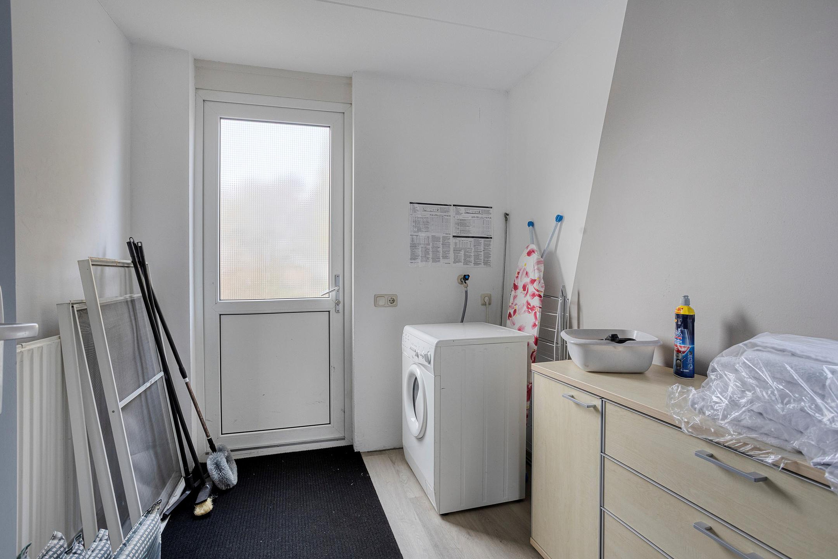 de zij-entree geeft toegang tot de L-vormige woonkamer waarvan de openslaande deuren uitzicht geven op de tuin met daarachter het open vaarwater. De keuken is recent nieuw geplaatst en is voorzien van alle gemakken. De stofzuiger kan opgeborgen worden in de trapkast. De inpandige berging, direct naast de voordeur is naar buiten uitgebouwd en biedt ruimte voor de fietsen en de was/droogmachine.
