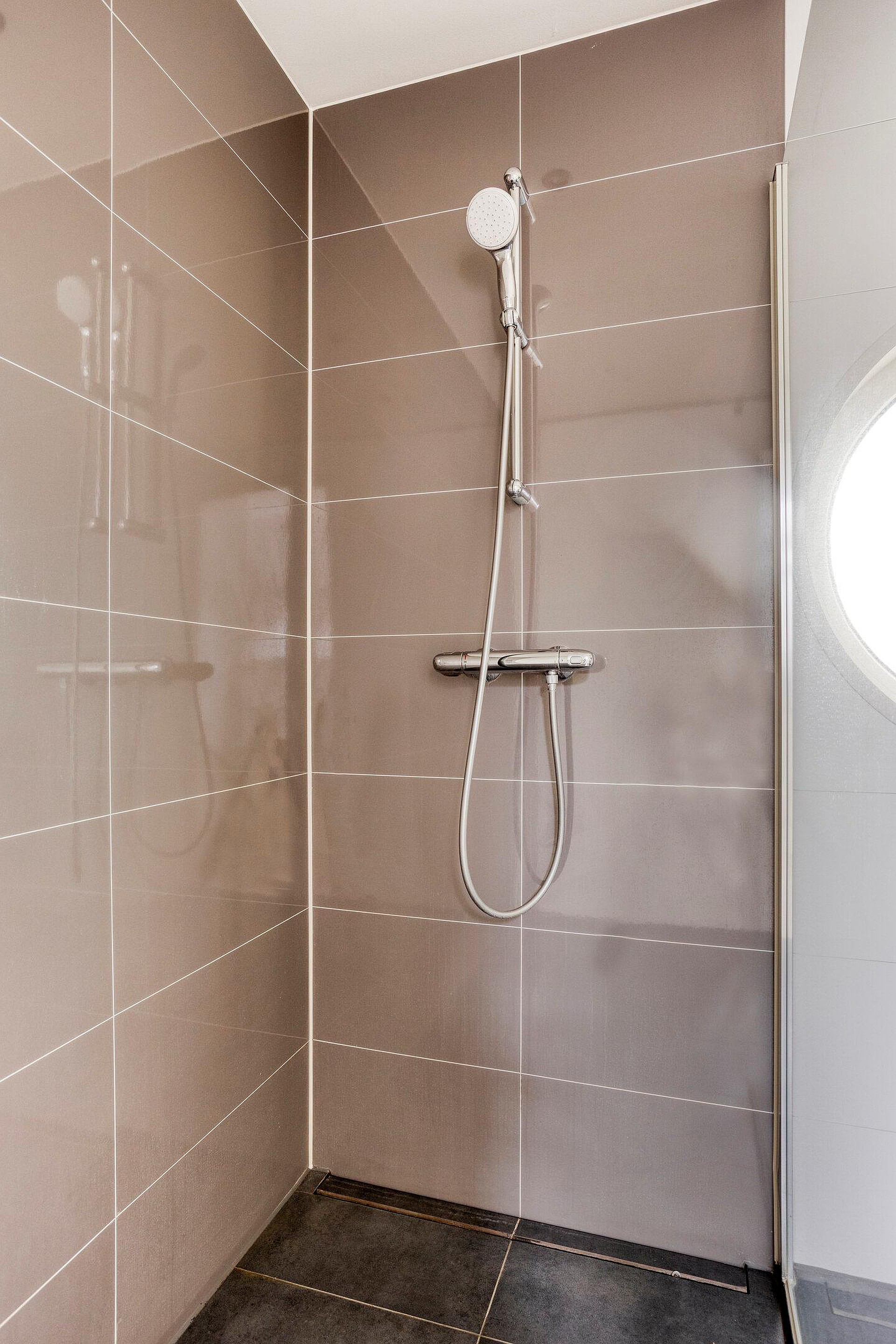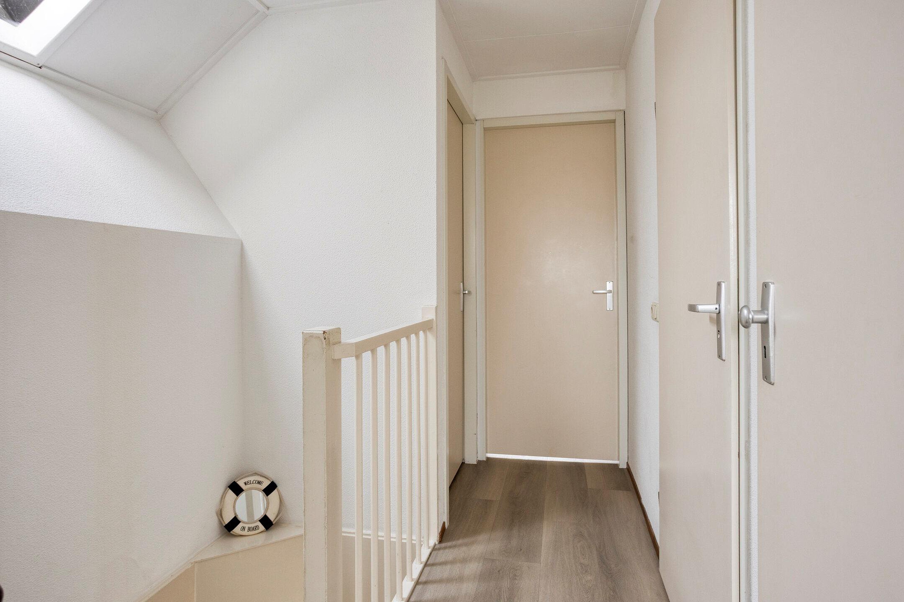 De overloop geeft toegang tot 2 ruime slaapkamers, een kleinere en de gemoderniseerde badkamer. De ruimte is ingedeeld met een royale inloopdouche, wastafelmeubel en tweede toilet. Achter de trap bevindt zich een afsluitbare eigenaarskast, waardoor deze woning uitermate geschikt is voor de combinatie van verhuren en zelf genieten.