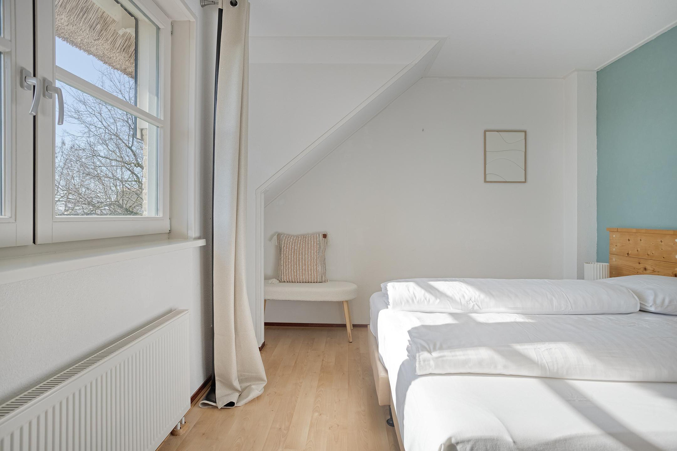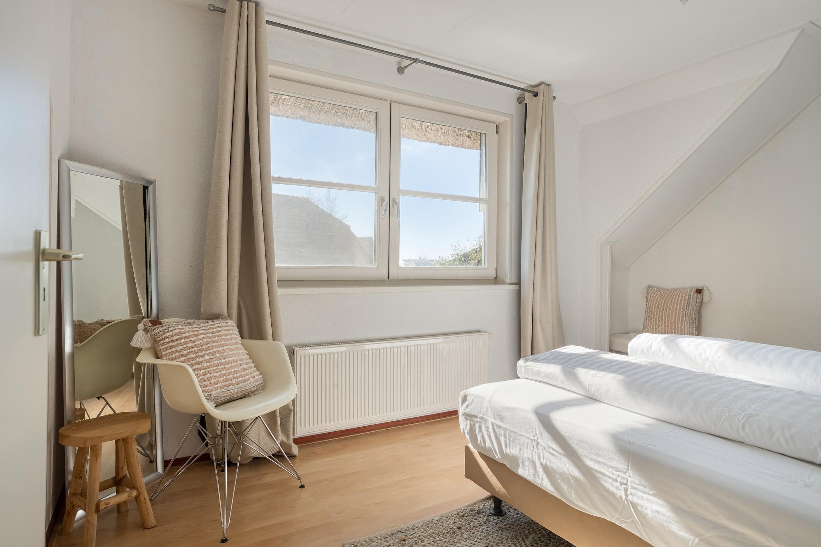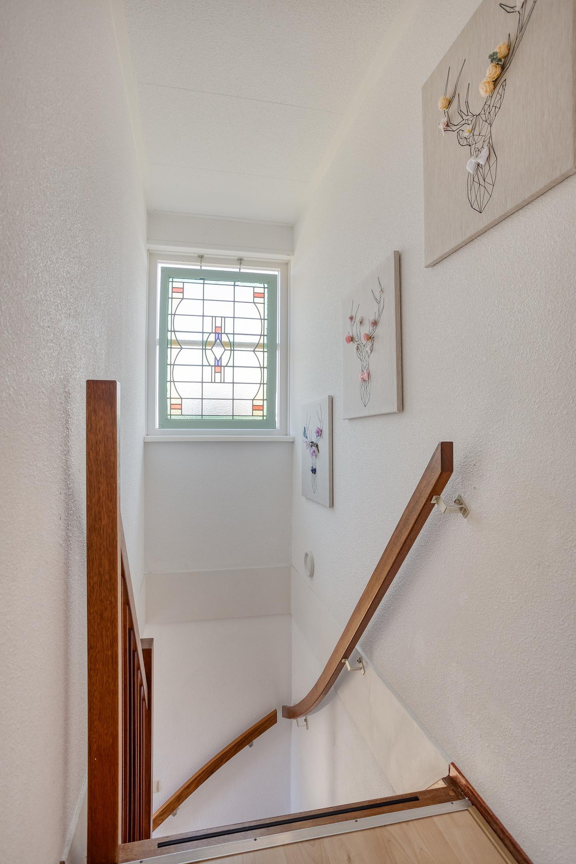 De verdiepingsvloer is grotendeels voorzien van laminaat en de slaapkamers en badkamer beschikken over raamhorren.