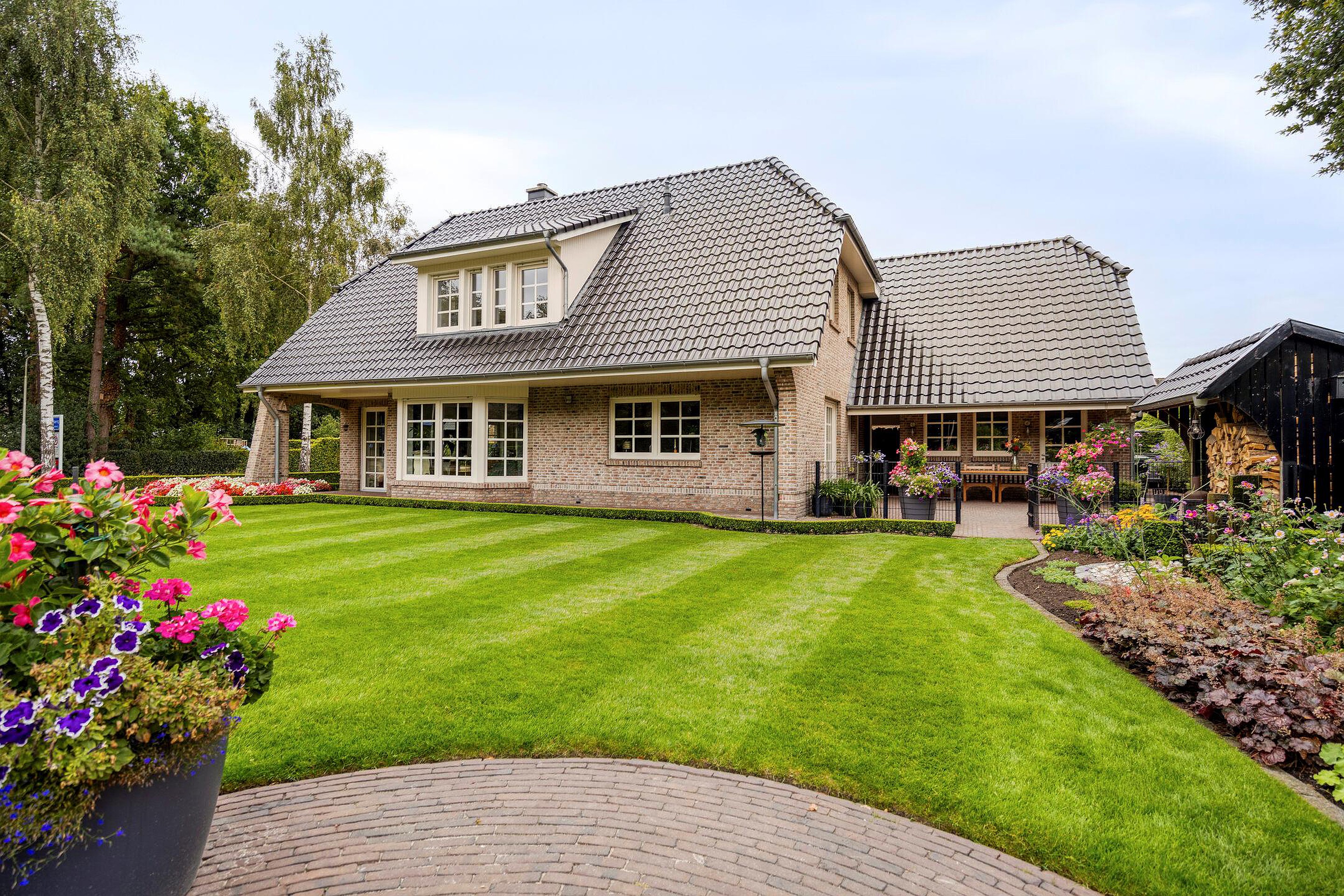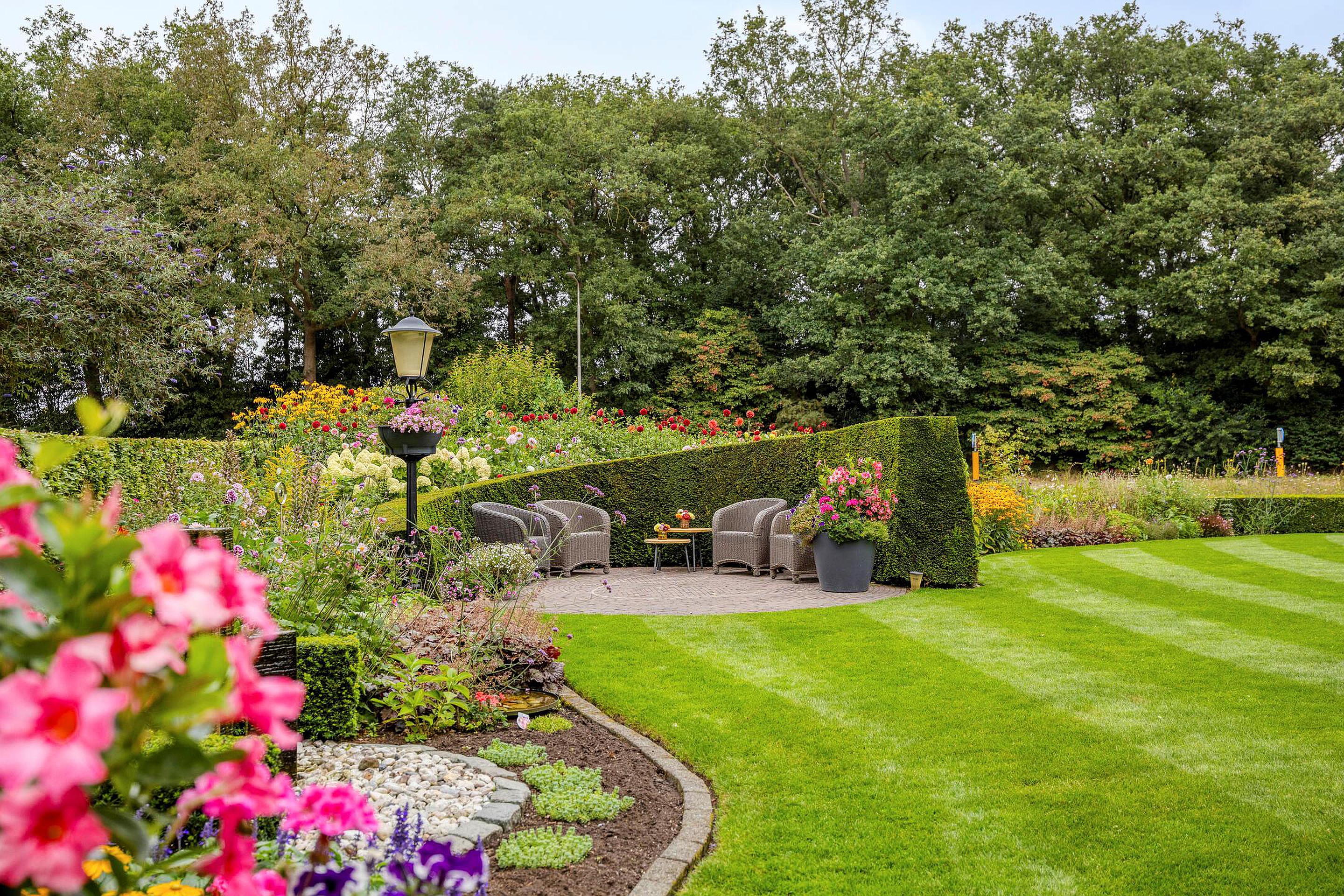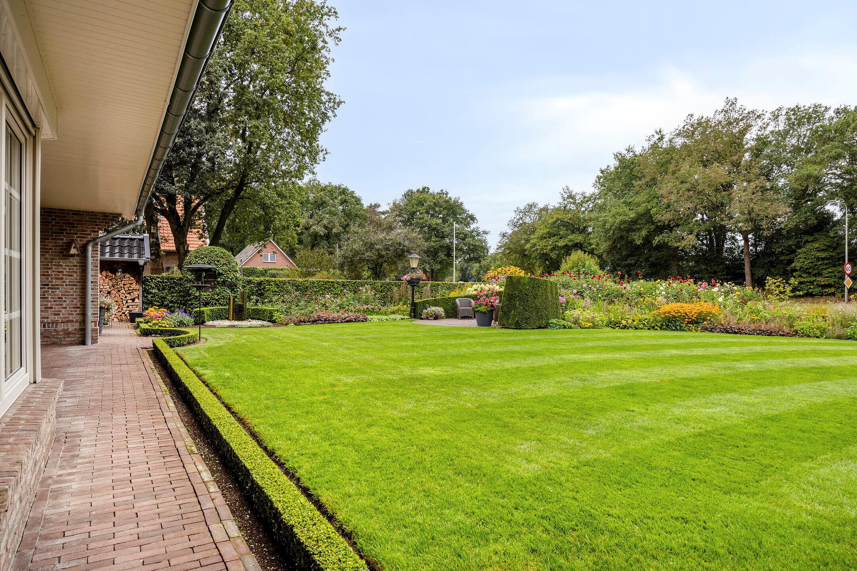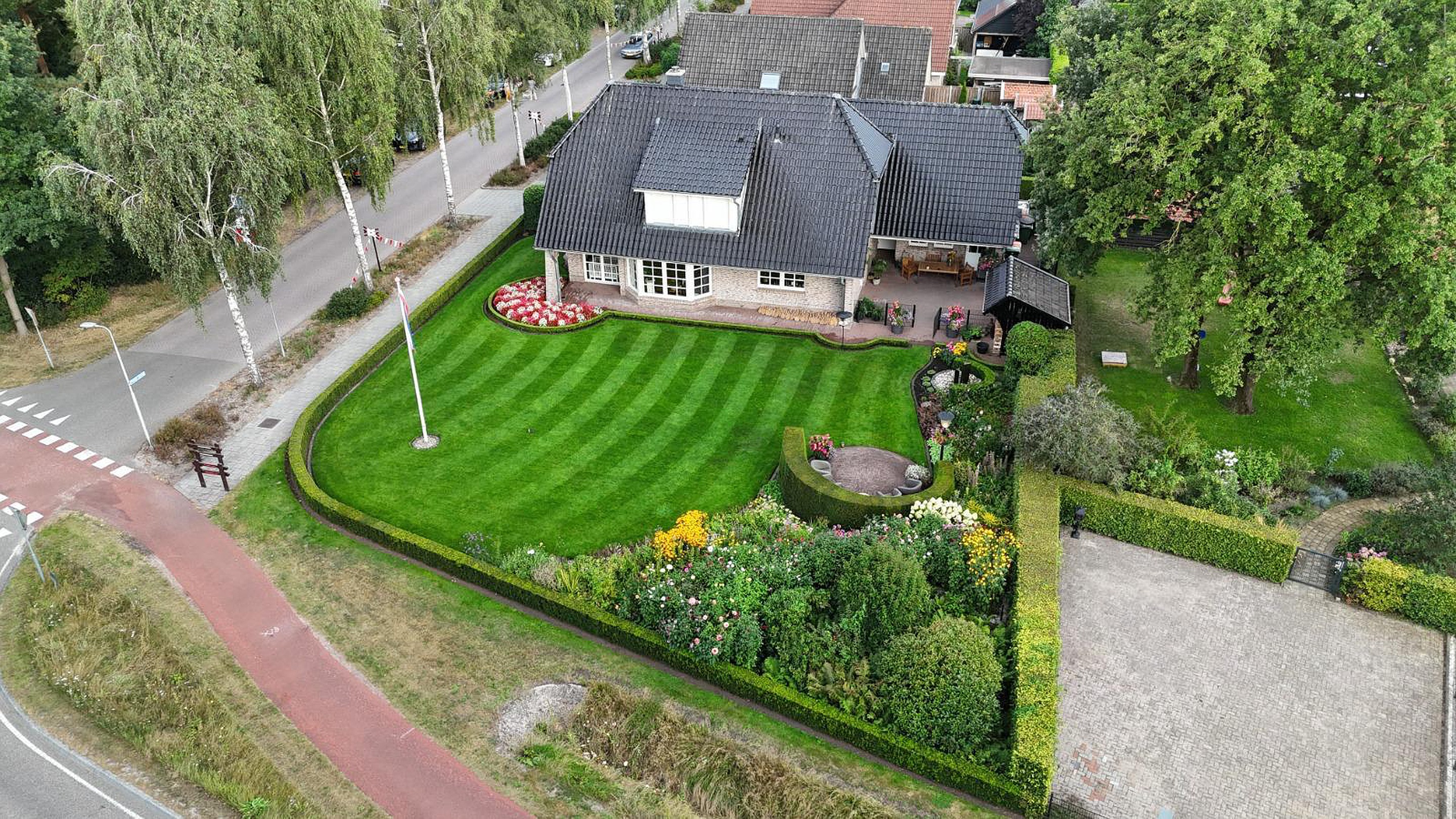 Buitenruimte: De tuin rondom de woning is fraai aangelegd en uitstekend onderhouden, met een verzorgd gazon en sierlijke borders, omgeven door groene hagen. Hier kunt u in alle rust genieten van het buitenleven.