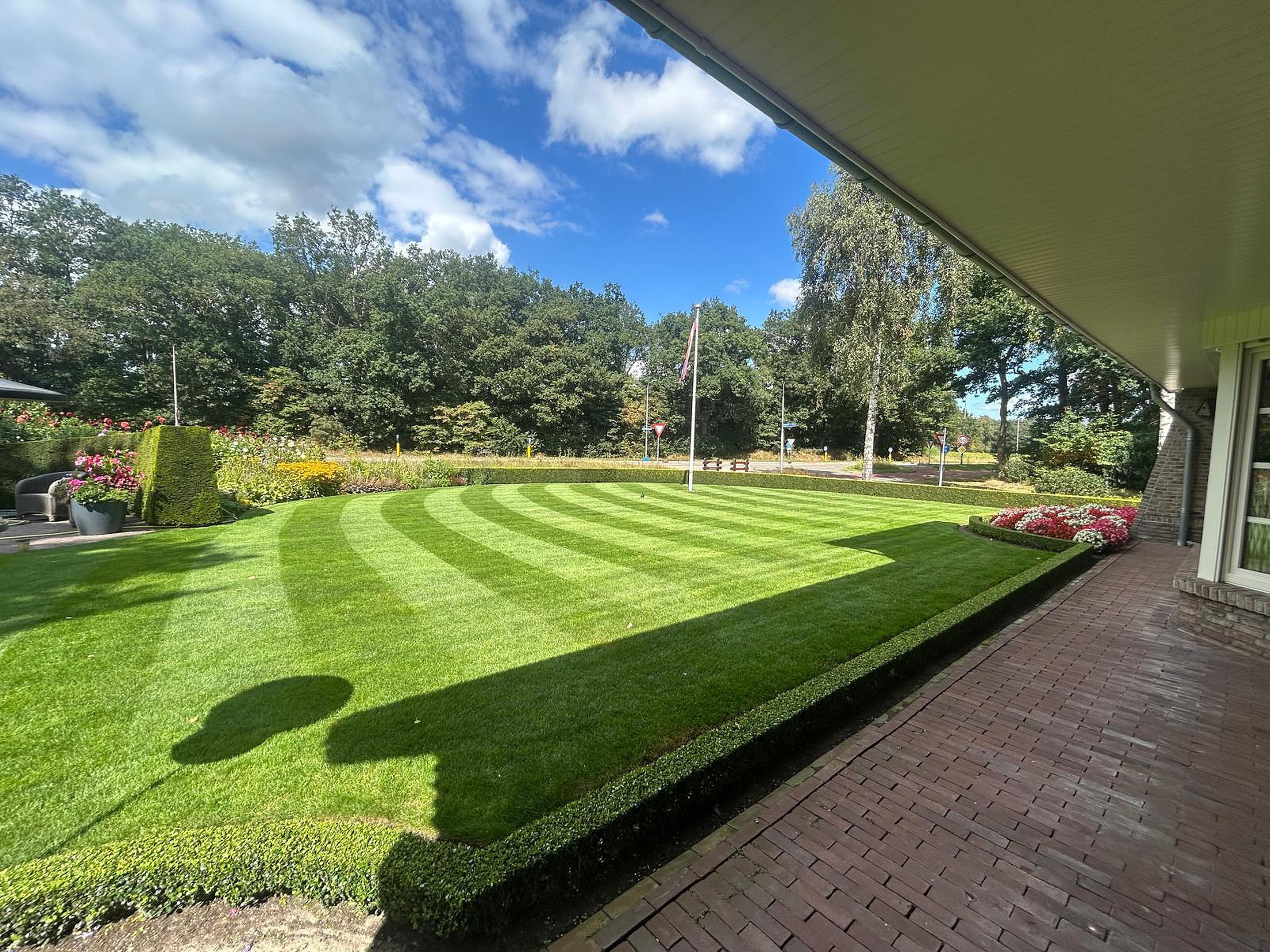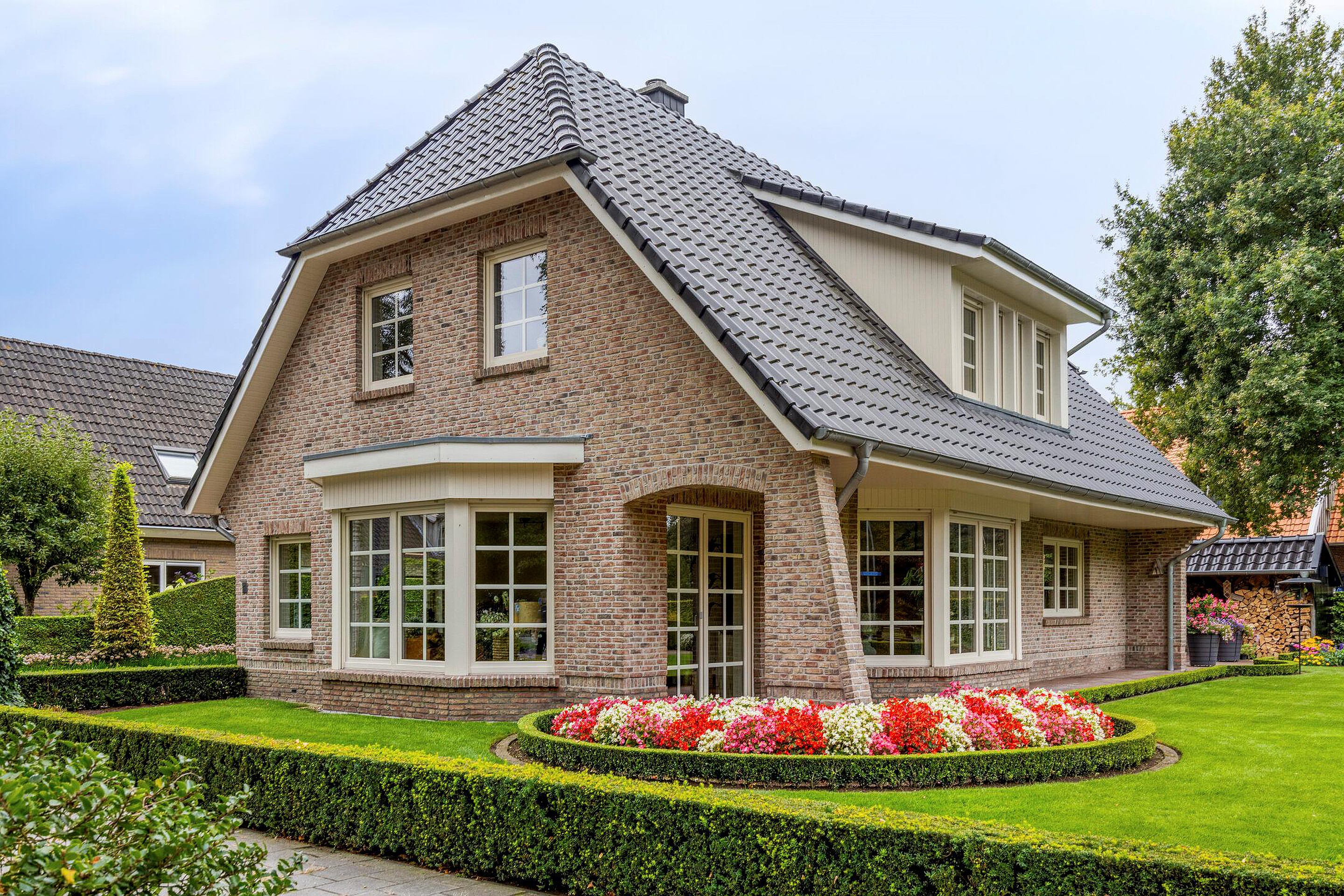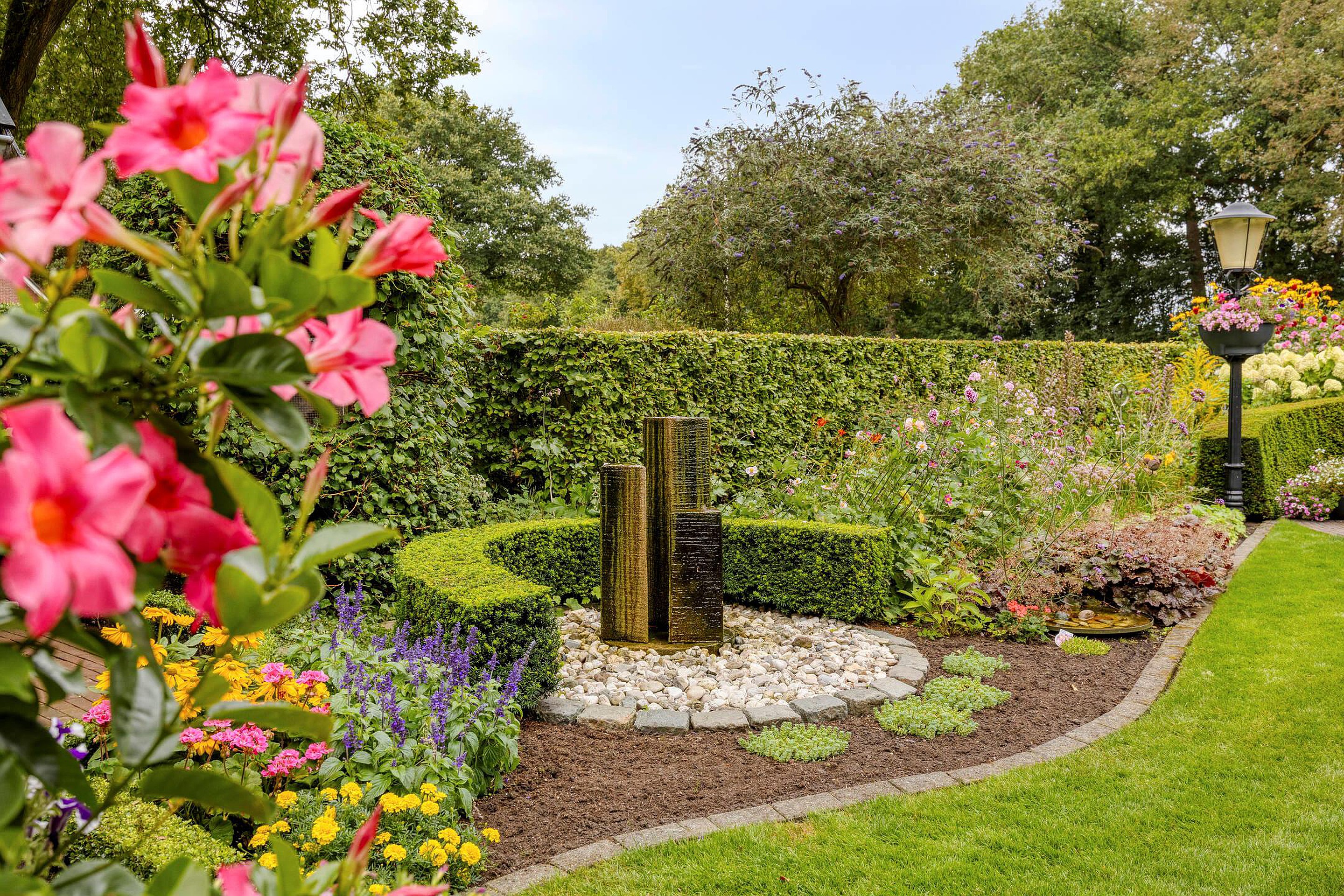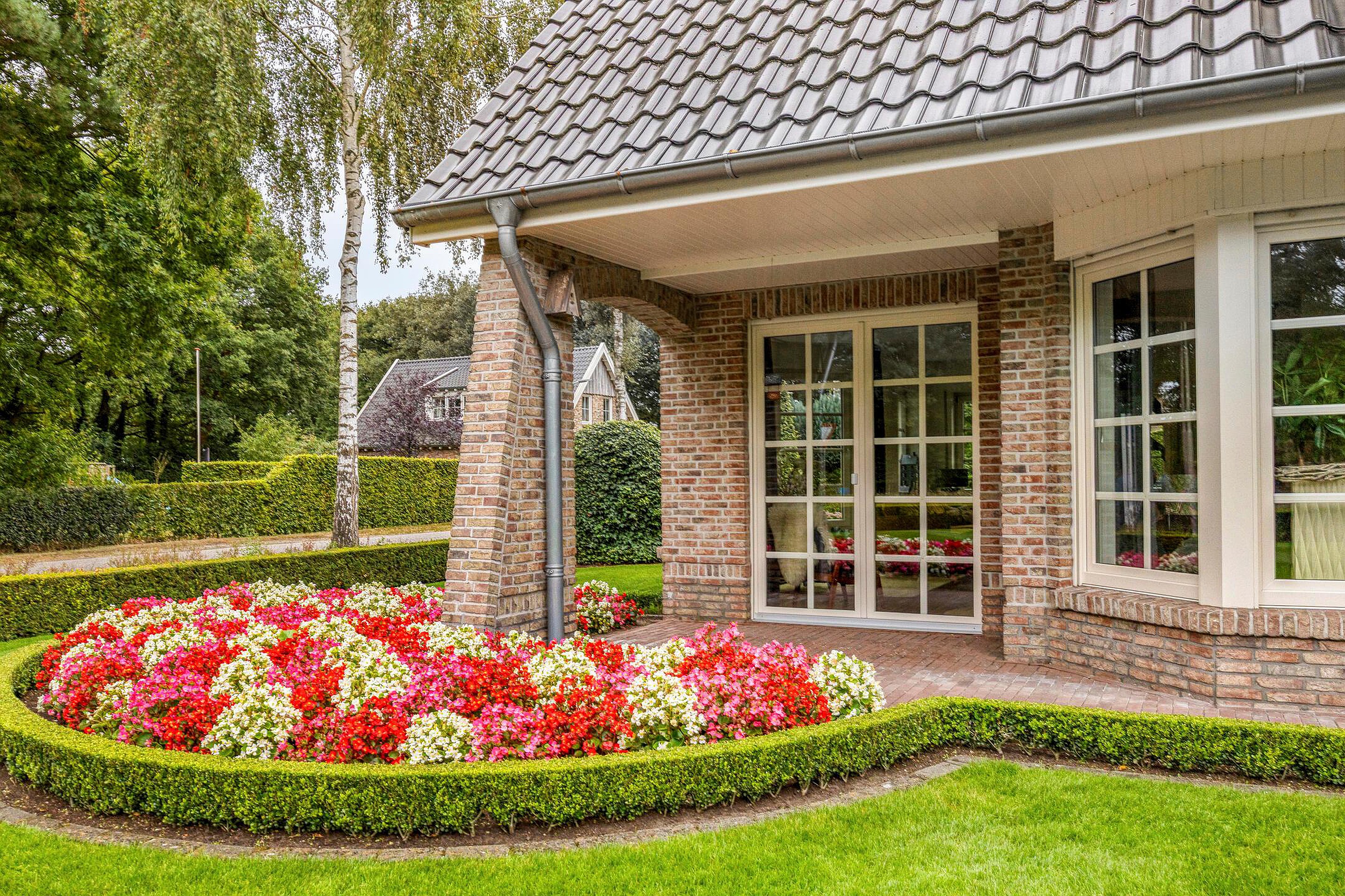 Buitenruimte: De tuin rondom de woning is fraai aangelegd en uitstekend onderhouden, met een verzorgd gazon en sierlijke borders, omgeven door groene hagen. Hier kunt u in alle rust genieten van het buitenleven.