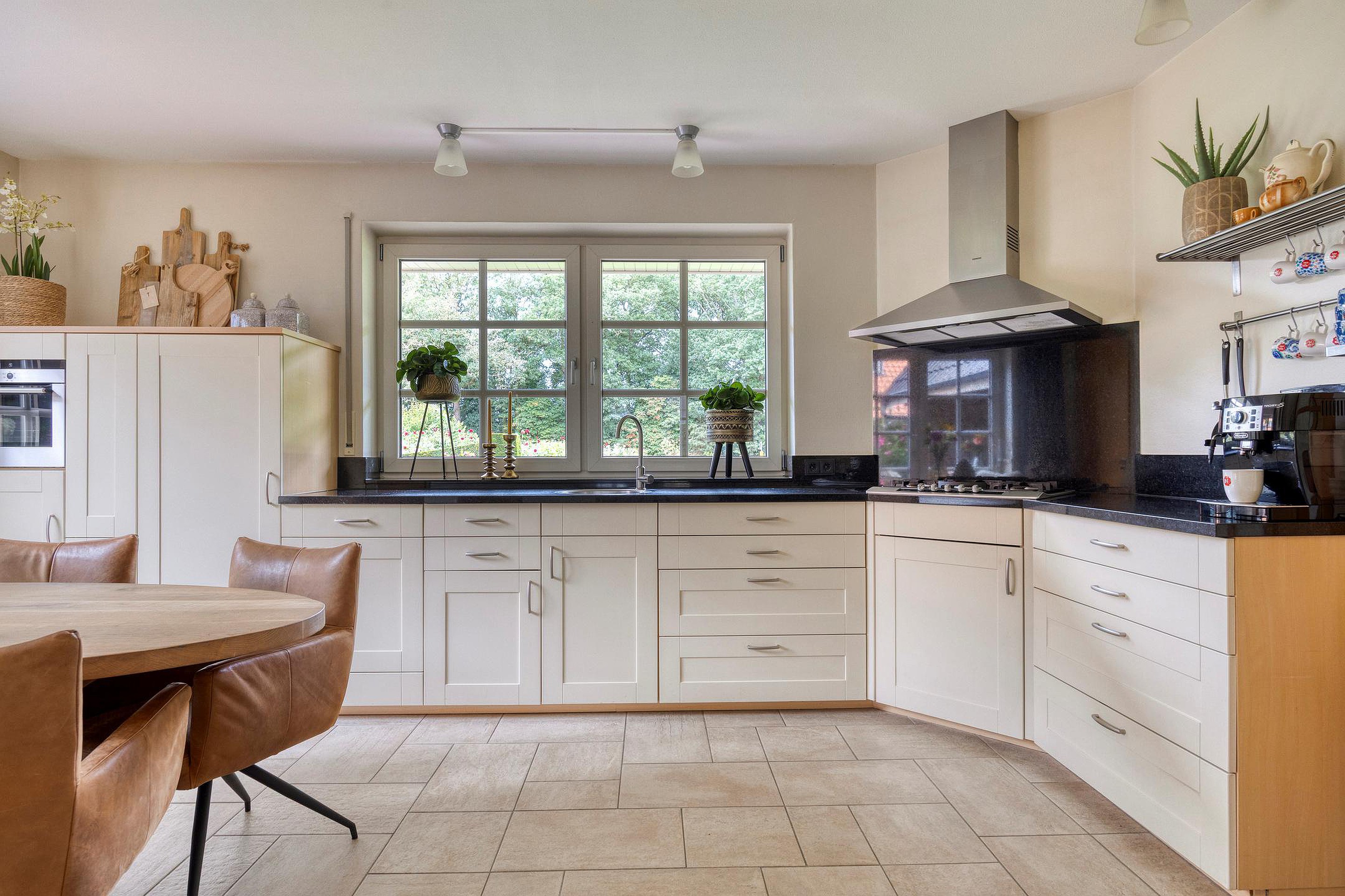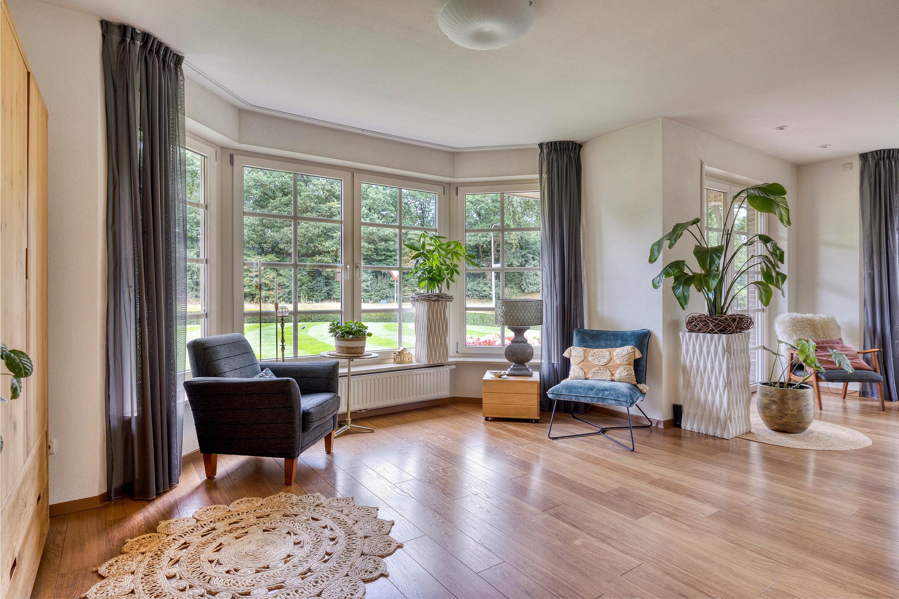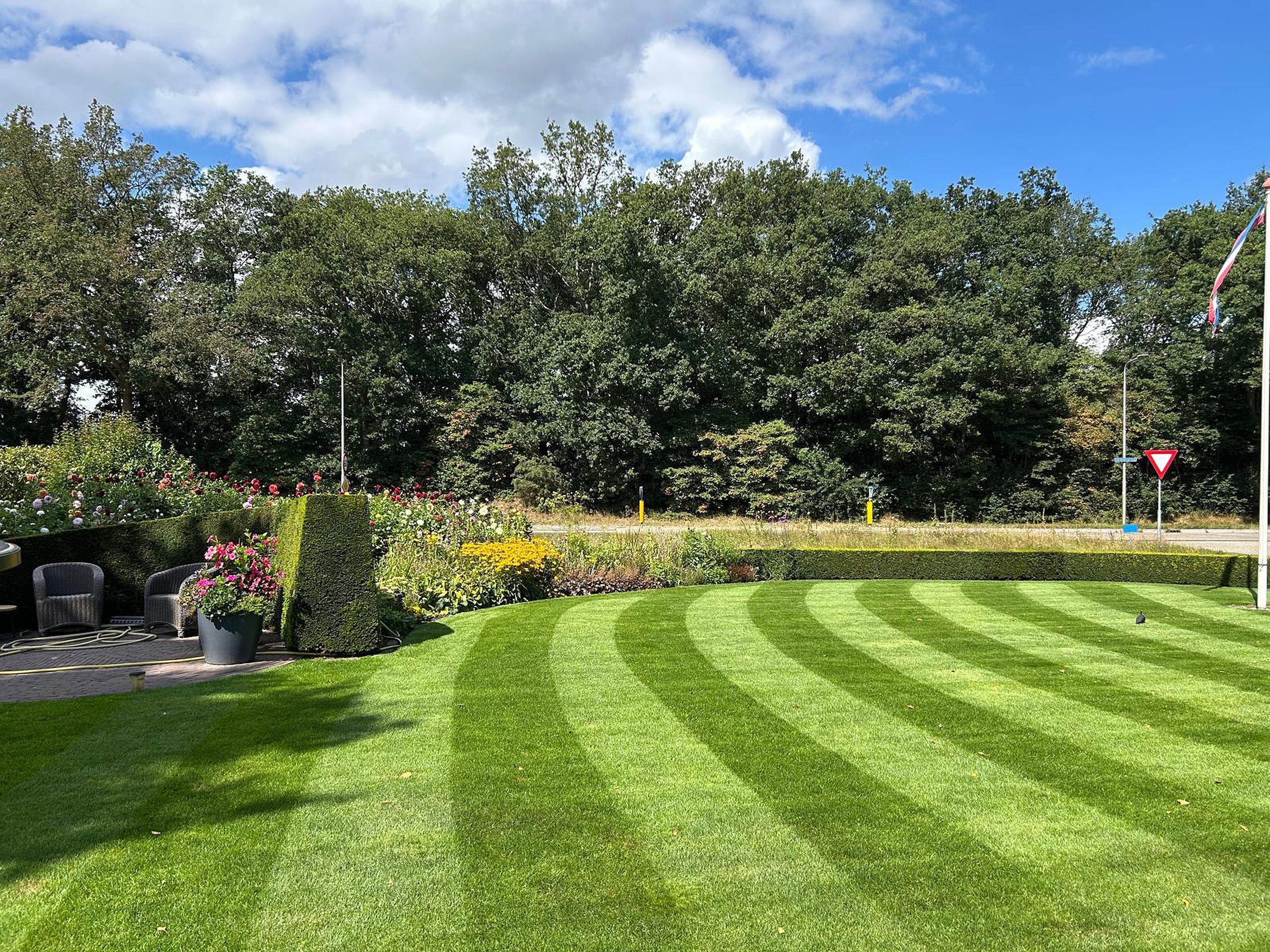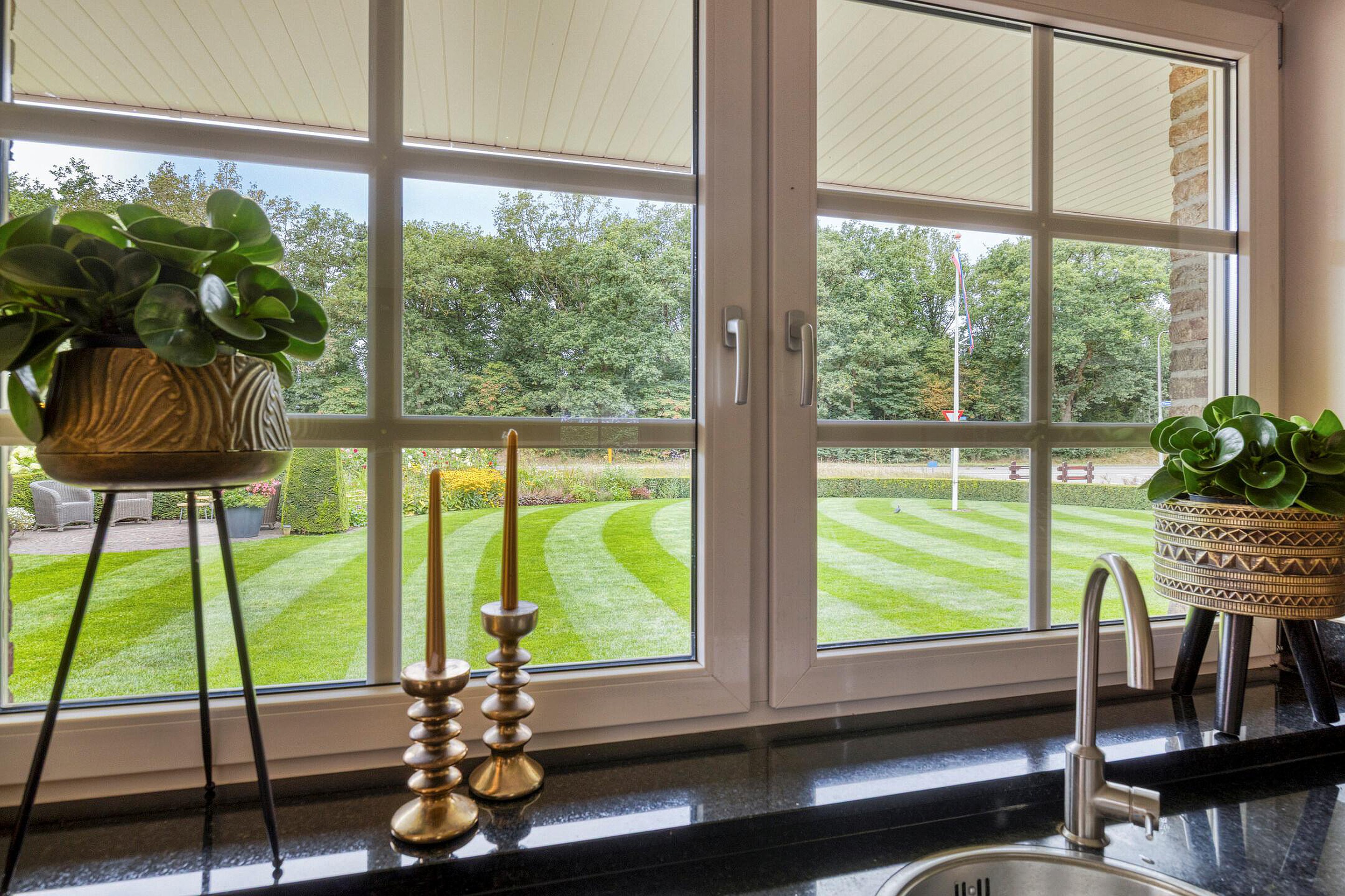 Buitenruimte: De tuin rondom de woning is fraai aangelegd en uitstekend onderhouden, met een verzorgd gazon en sierlijke borders, omgeven door groene hagen. Hier kunt u in alle rust genieten van het buitenleven.