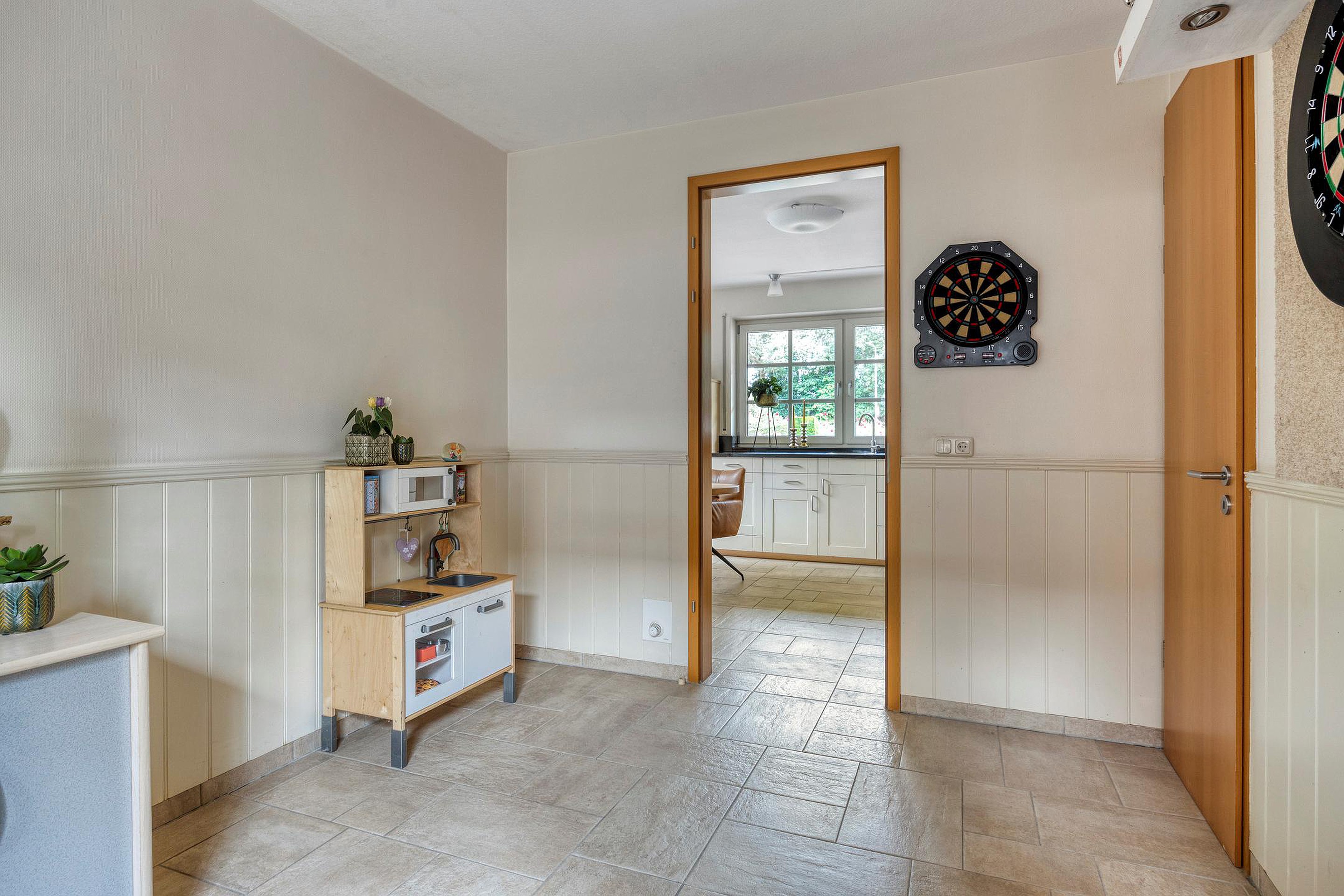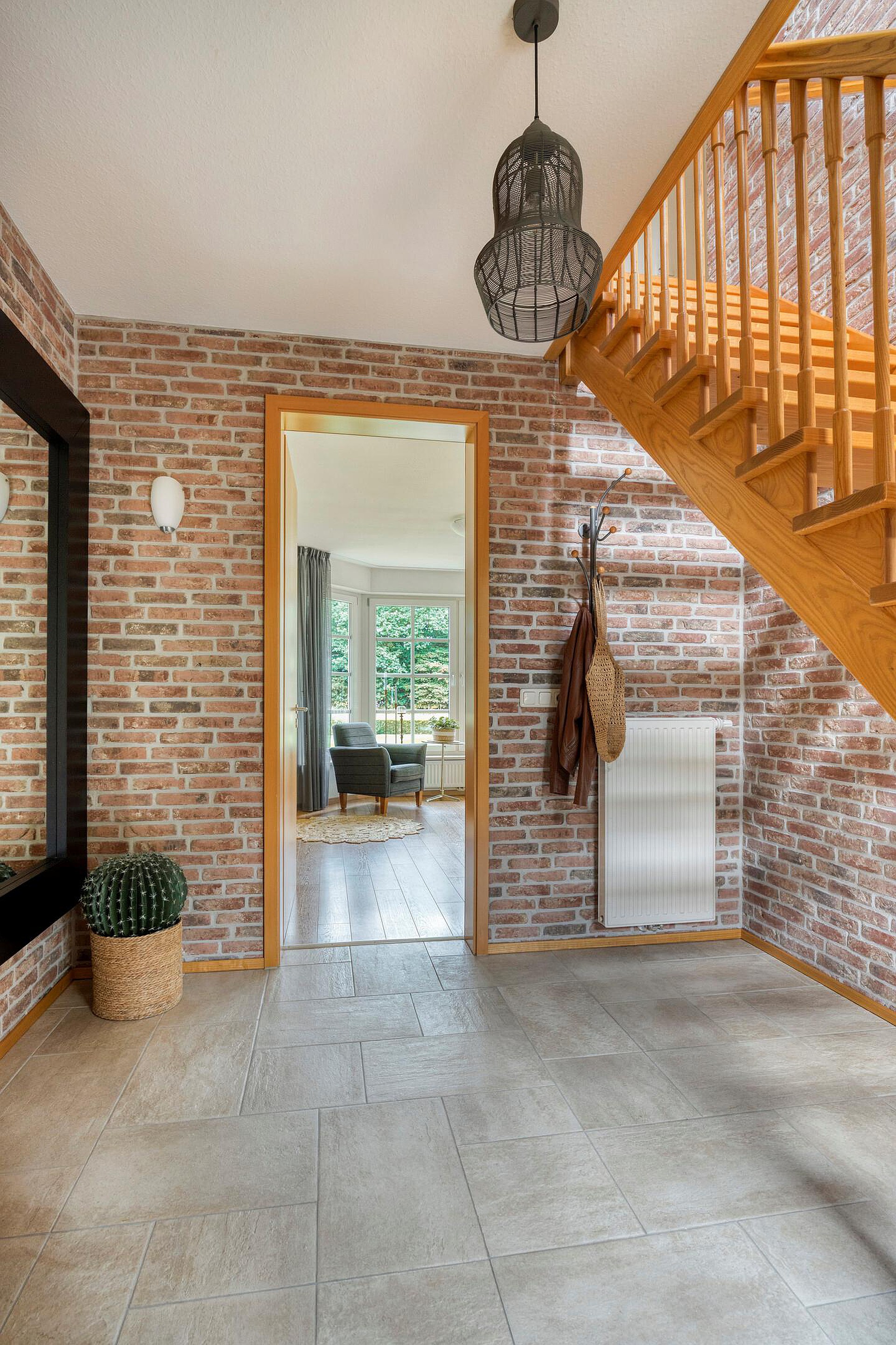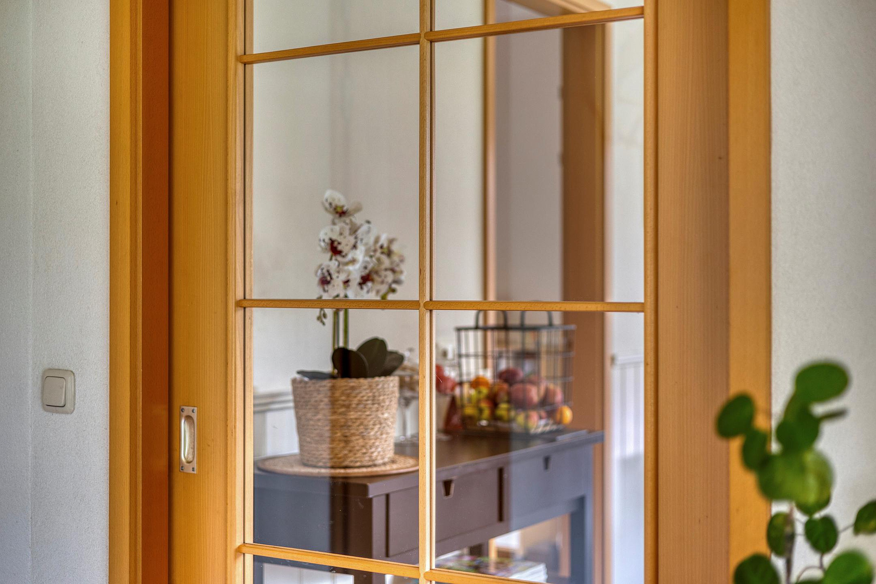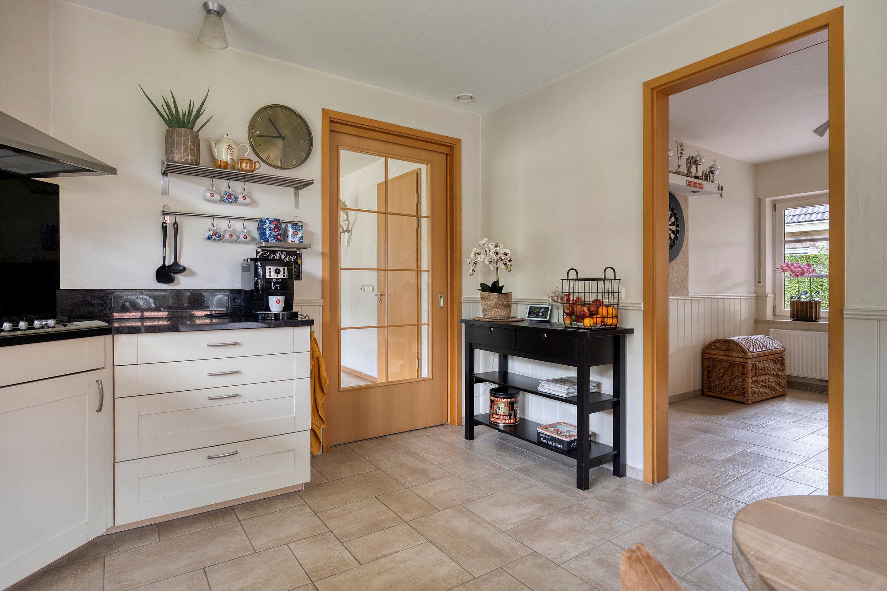 Begane grond: Ruime entree met houten vloer, trapopgang, meterkast en hangtoilet met fontein. Vanuit de hal is er toegang tot de lichte woonkamer met grote raampartijen, een sfeervolle houtkachel en houten vloer. De woonkamer staat in verbinding met de nette keuken, welke is voorzien van diverse inbouwapparatuur. Aangrenzend bevindt zich een praktische werkkamer.