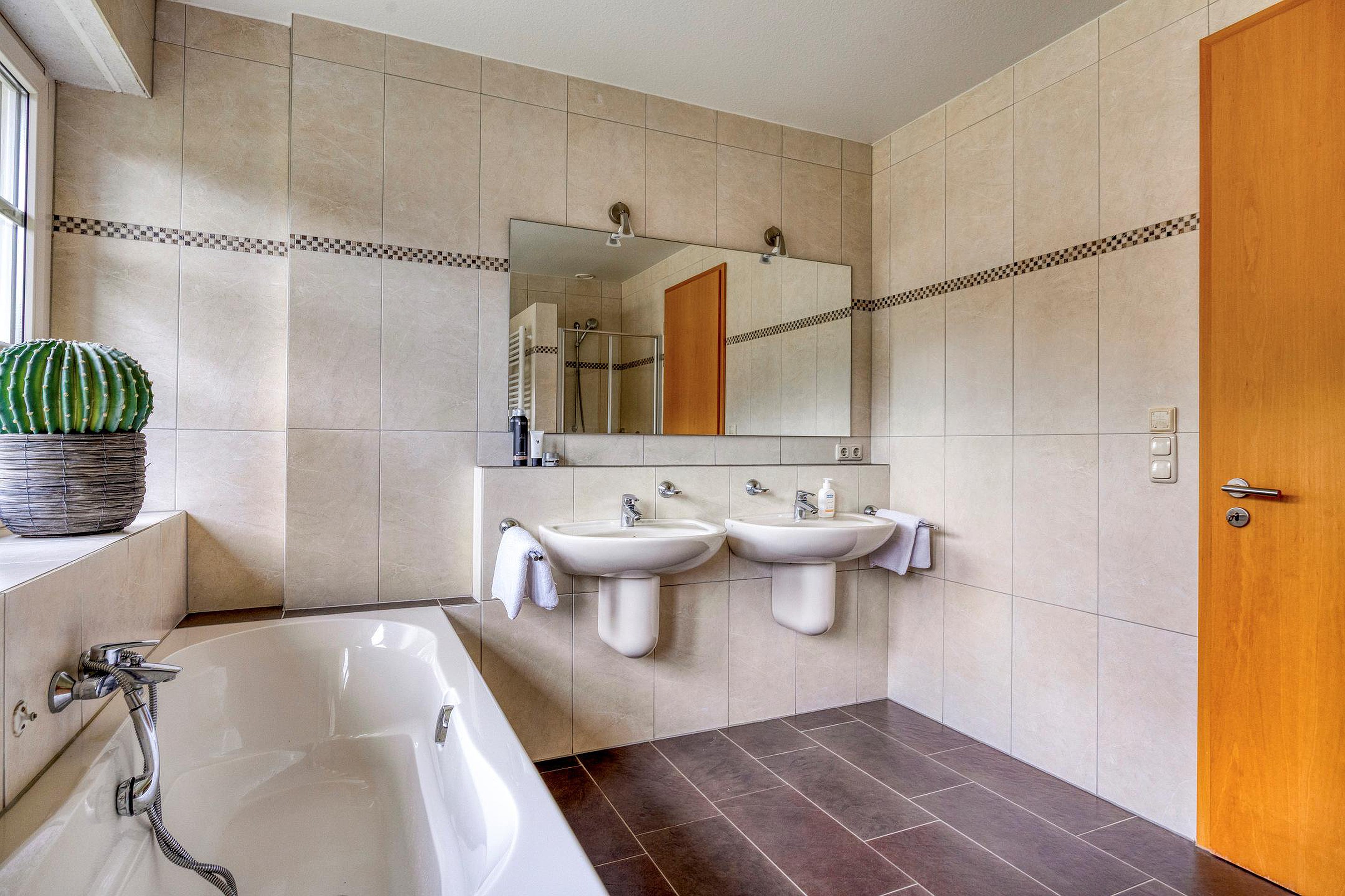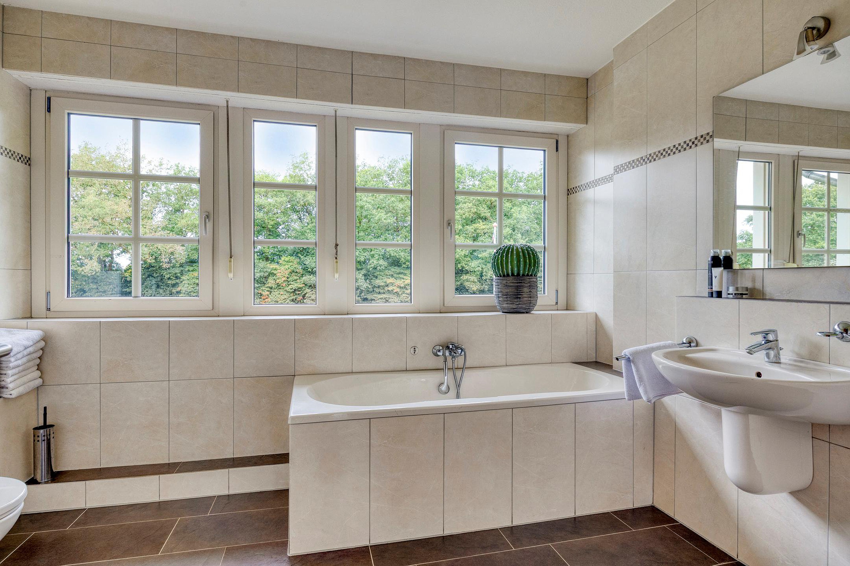 Eerste verdieping: Overloop met toegang tot vijf royale slaapkamers, waarvan één met ruime inbouwkast. Badkamer voorzien van een douchecabine, ligbad, dubbele wastafel en een tweede toilet.