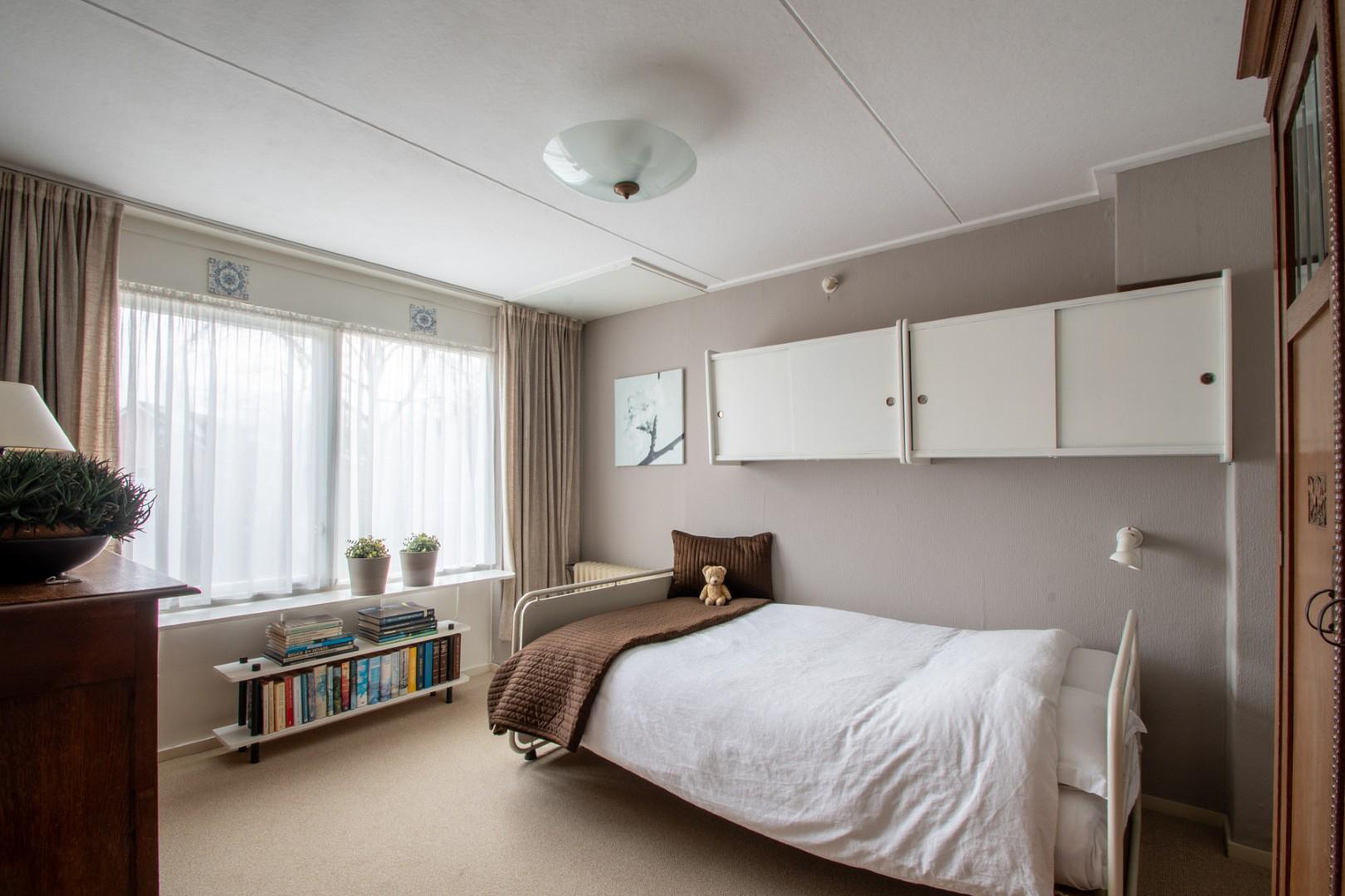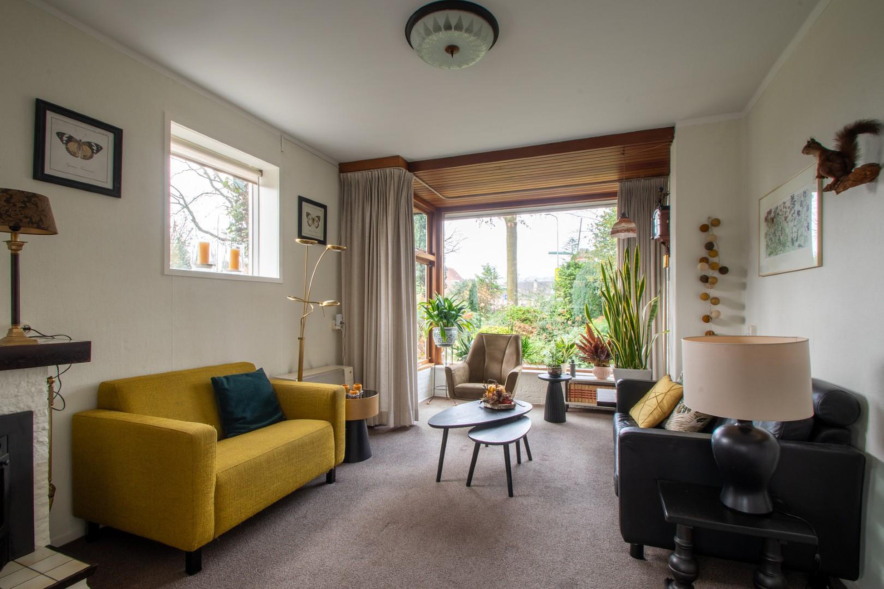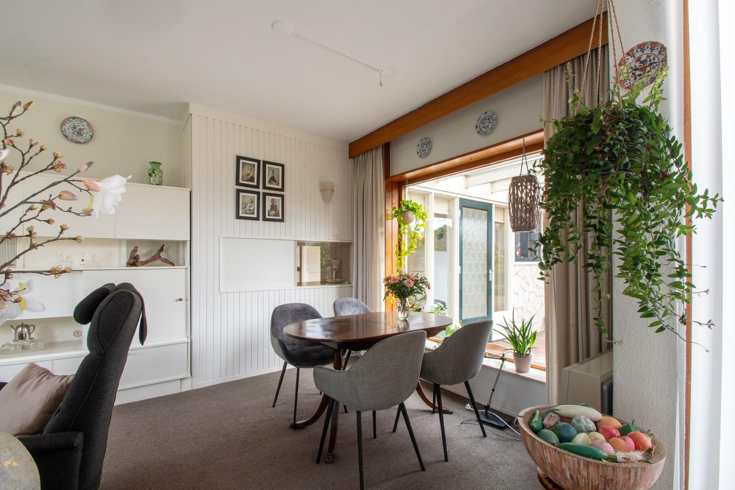 Aansluitend ligt de keuken, eenvoudig uitgevoerd en voorzien van een gaskachel en boiler. Vanuit de keuken is er toegang tot het portaal en de tuin. De bijkeuken vormt een praktische schakel tussen binnen en buiten en geeft toegang tot de aangebouwde berging en de garage. De garage is bereikbaar via een eigen oprit aan de zijkant van de woning, vanaf de Burgemeester Korthals Alteslaan, wat zorgt voor extra gemak bij parkeren en bergruimte.