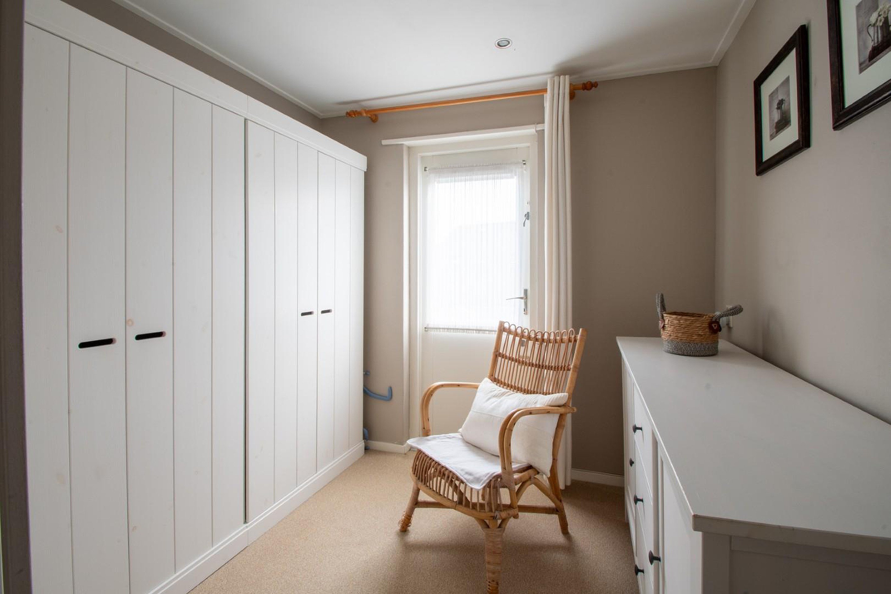 Tweede verdieping Via de vaste trap bereik je de tweede verdieping met bergruimte en een derde slaapkamer. Deze verdieping leent zich uitstekend voor gebruik als extra slaapkamer, thuiswerkplek of logeerkamer, met daarnaast voldoende ruimte voor opslag.