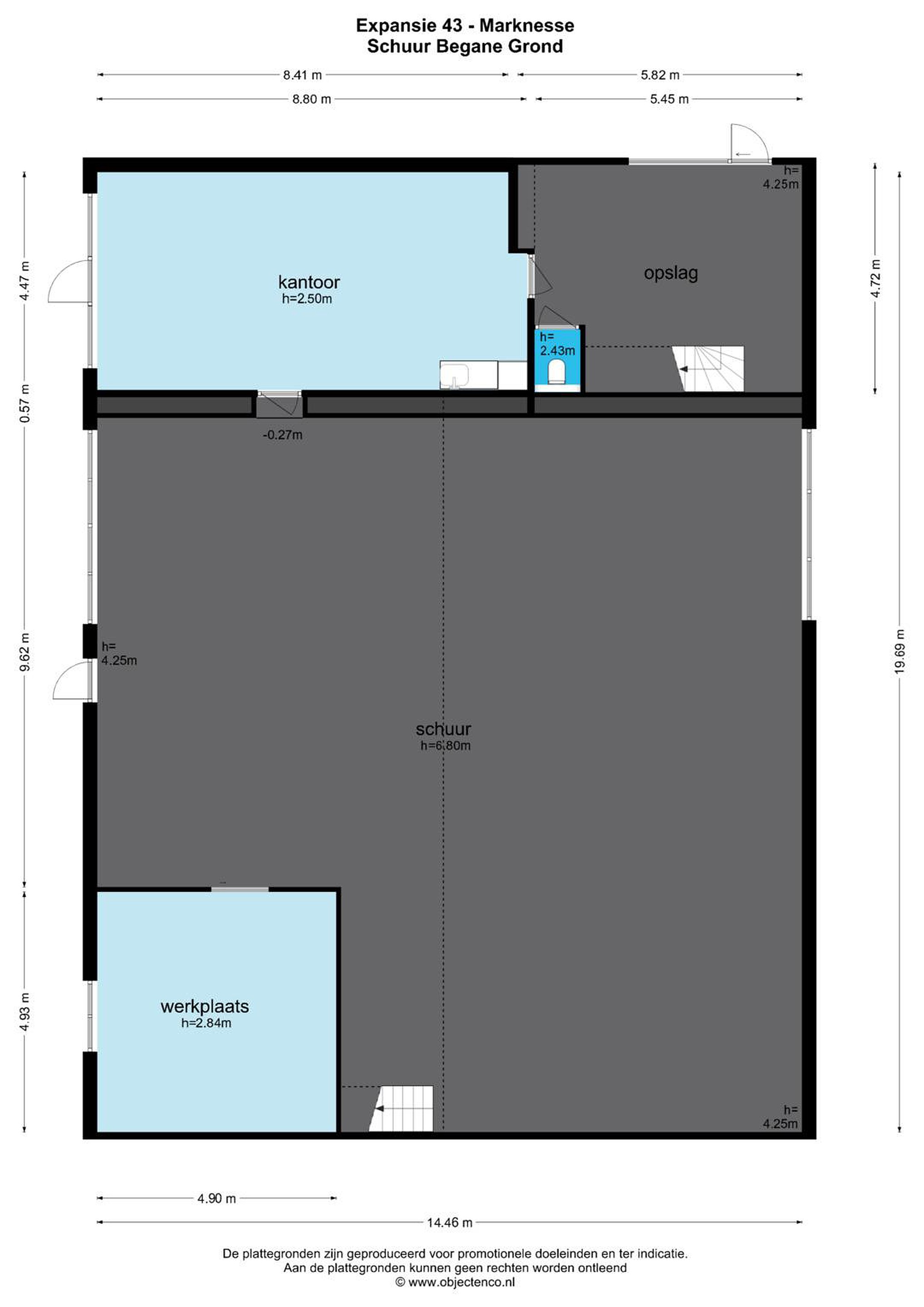 De bedrijfsruimte is als volgt ingedeeld: