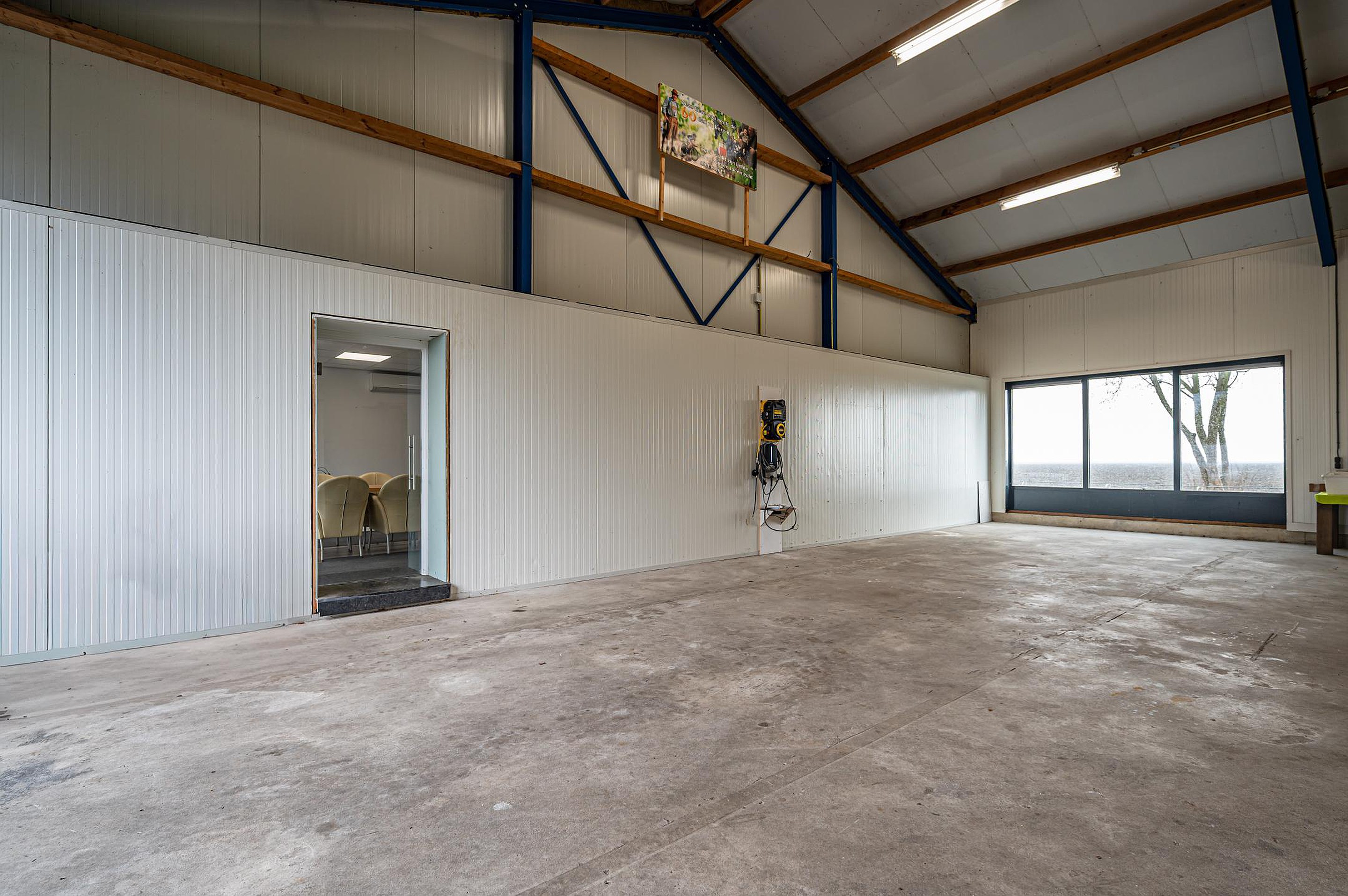 De totale bedrijfsruimte bedraagt circa 285 m2 en is uitgevoerd in staalconstructie met damwand gevels en daken. De ruimte is gedeeltelijk geïsoleerd en voorzien van een betonvloer.