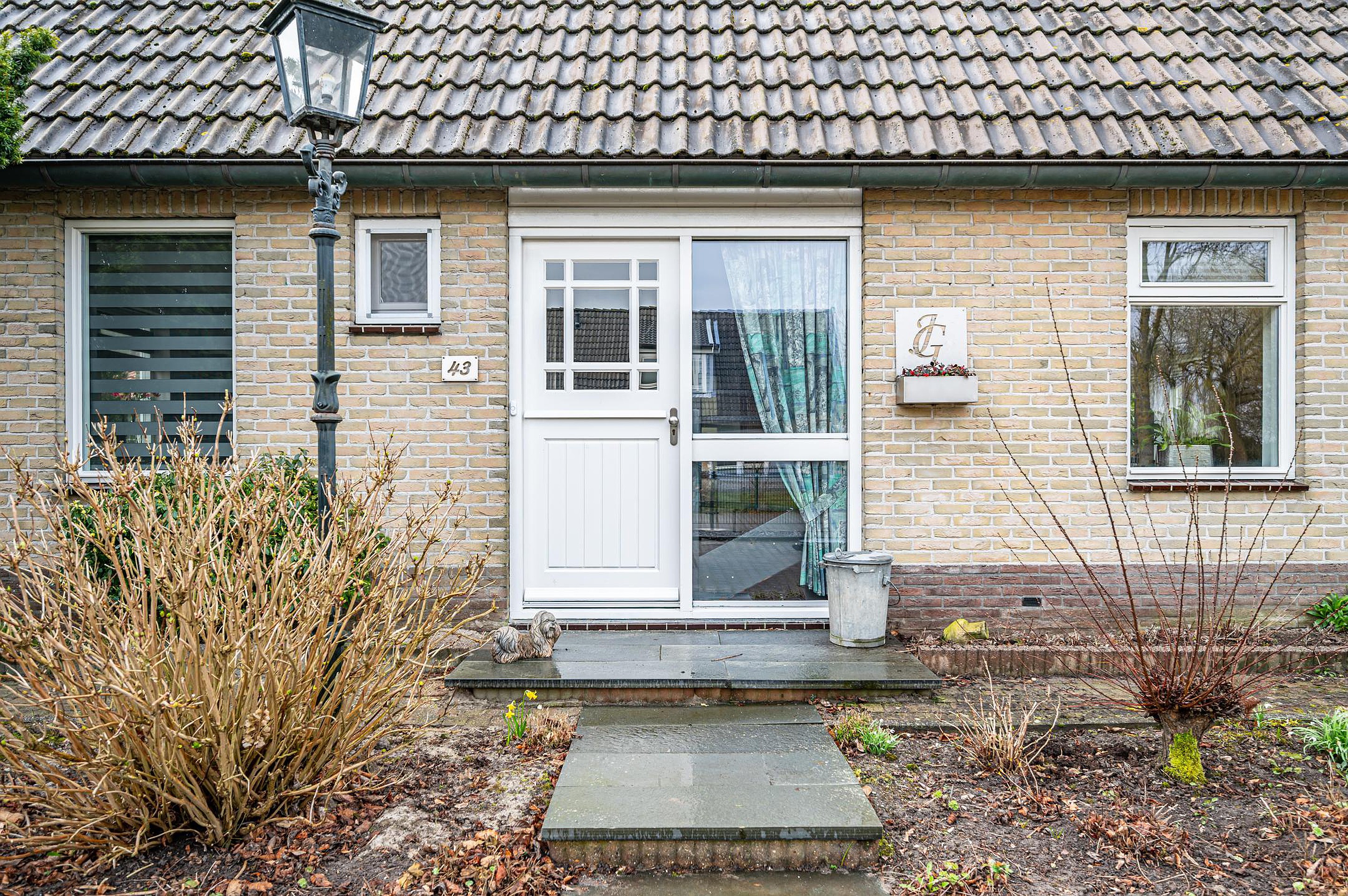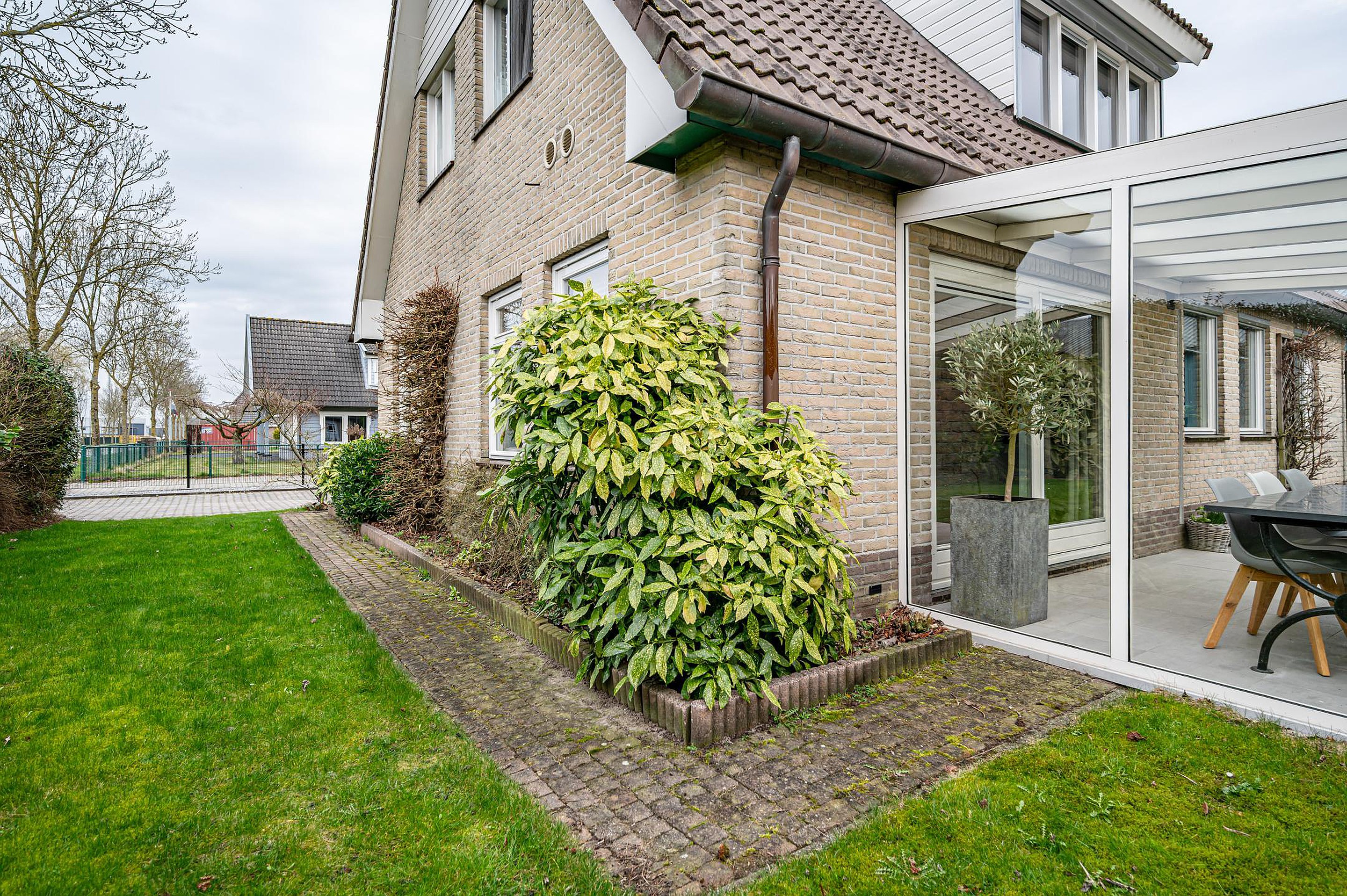 De oprit is verhard met klinkers en het overige is ingericht als siertuin.