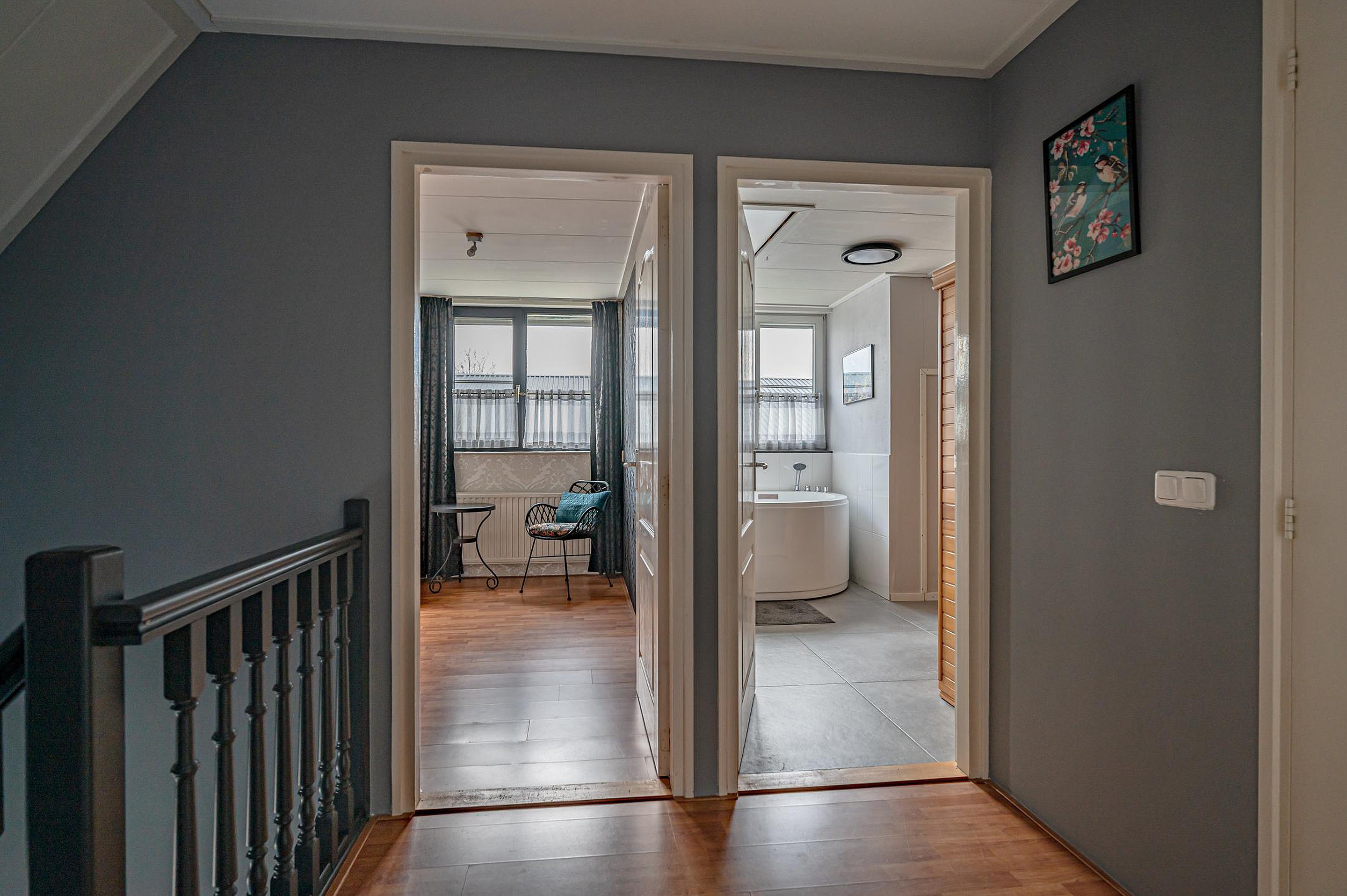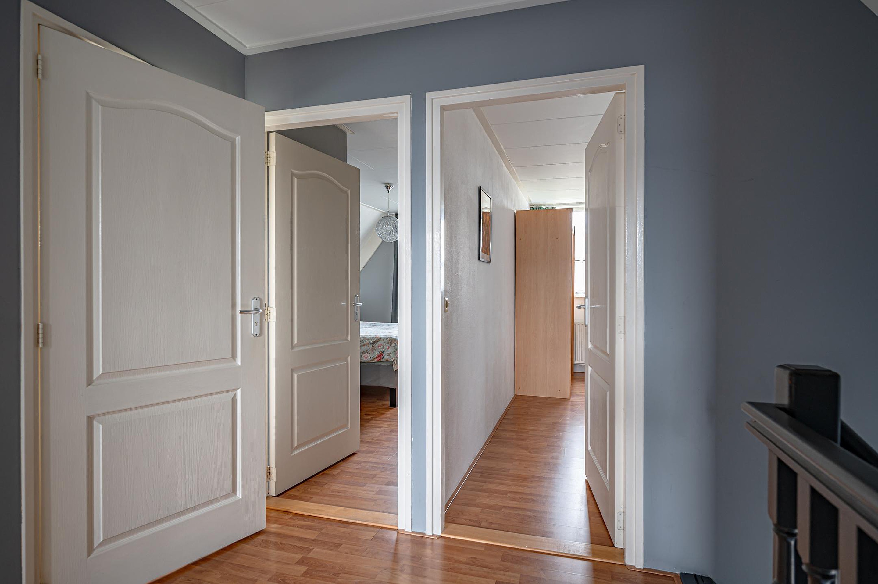Overloop met toegang tot drie slaapkamers, allen voorzien van screens.
