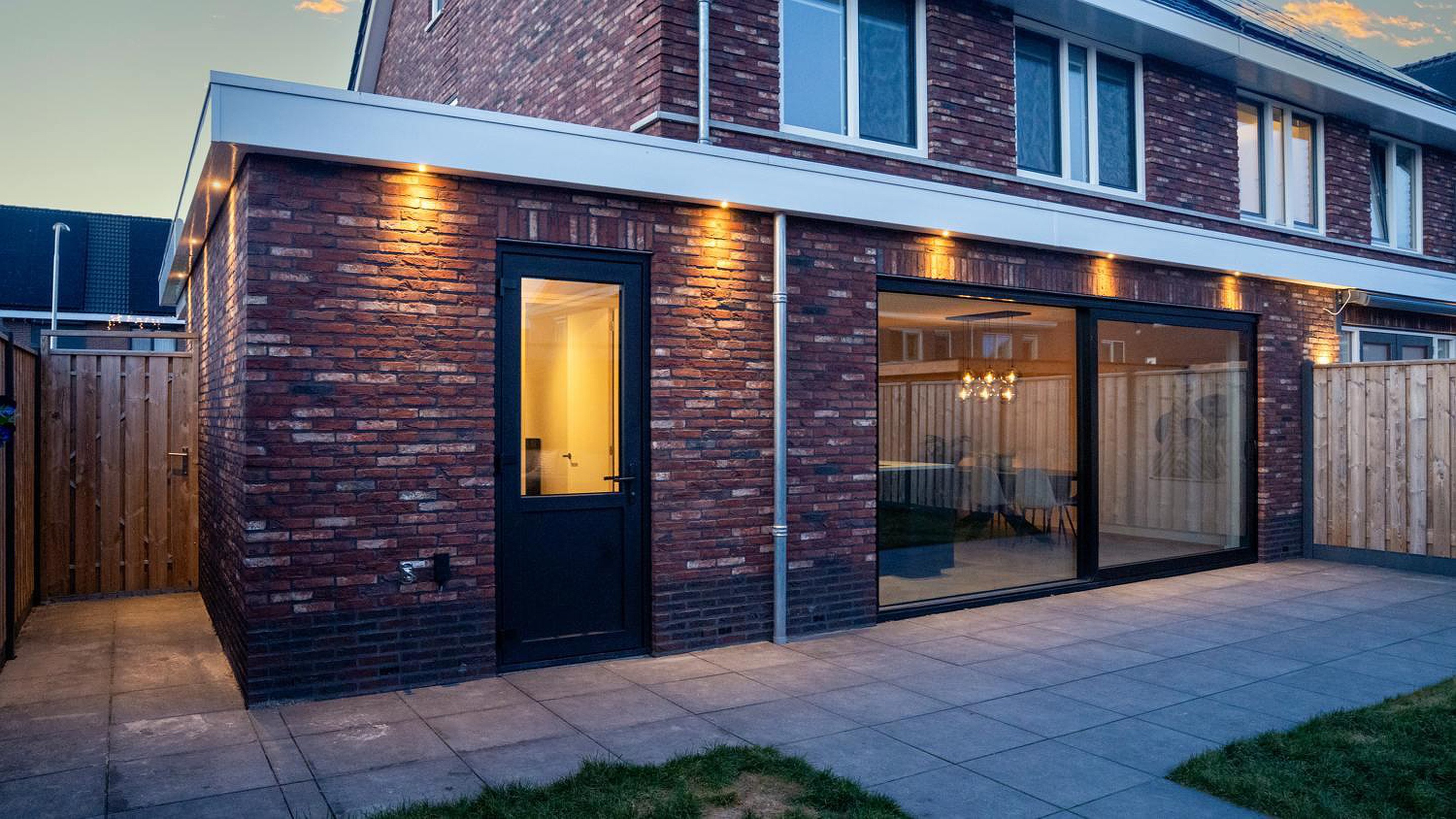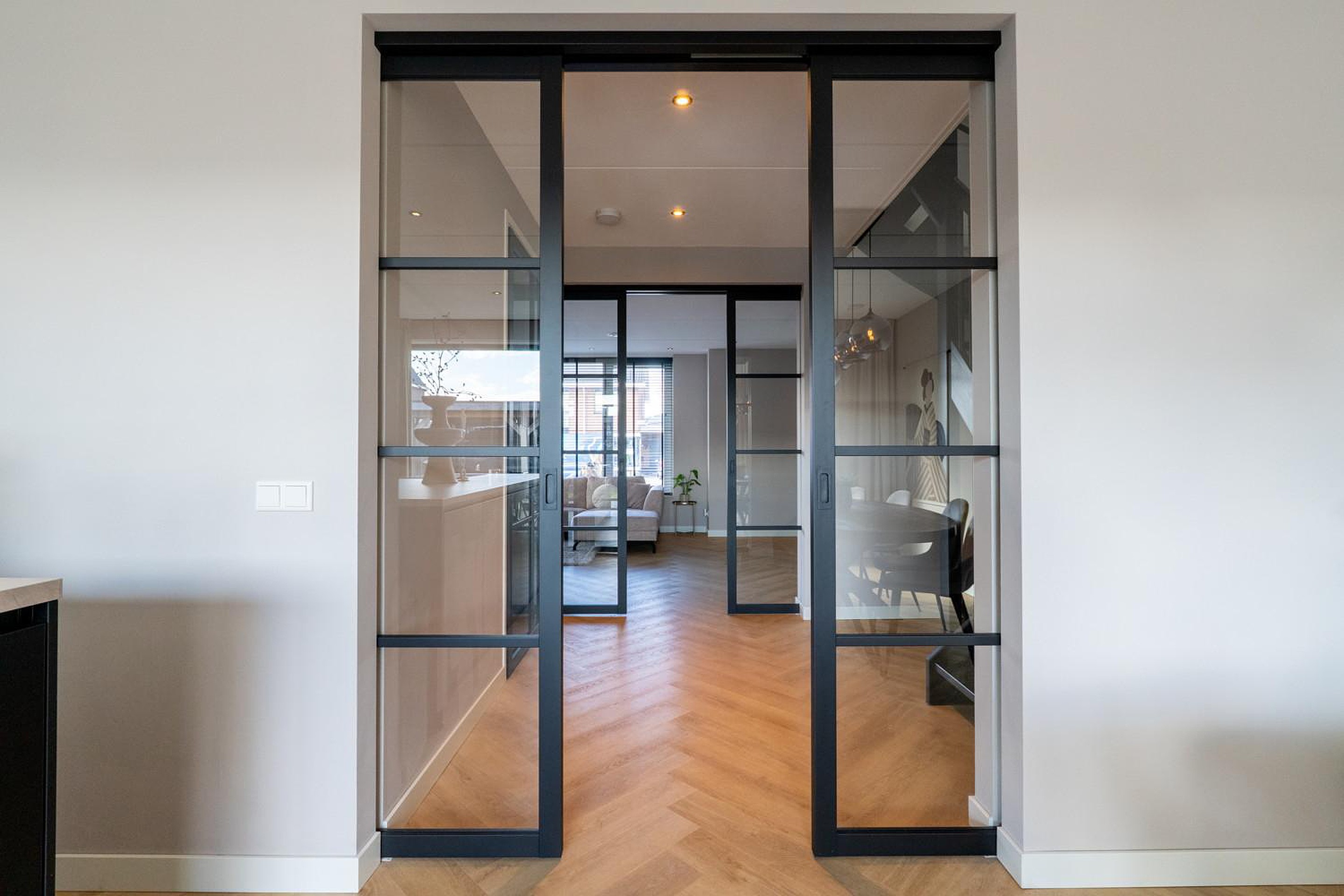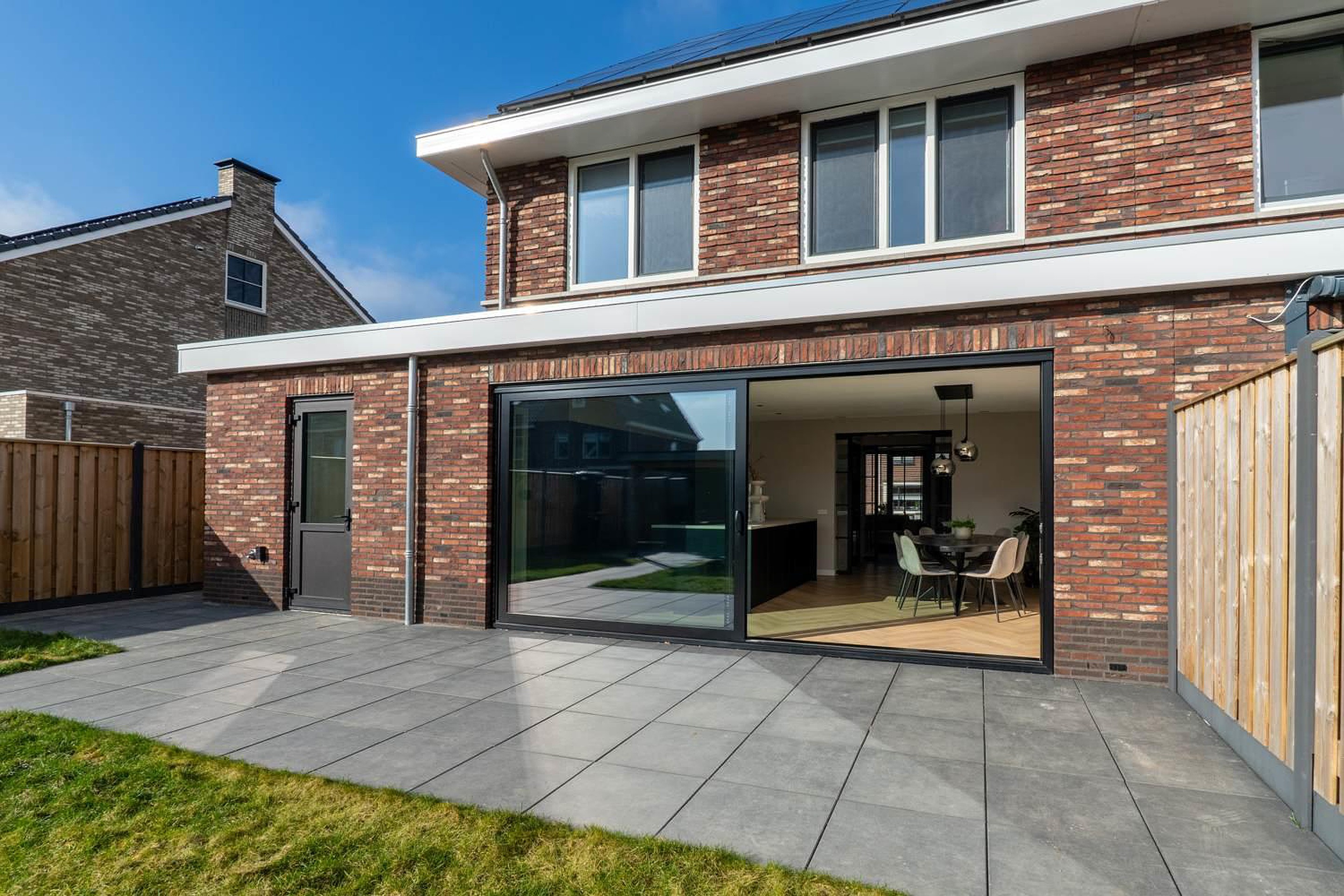 -grote aluminium schuifpui over de volle breedte van de woon-leefkeuken;