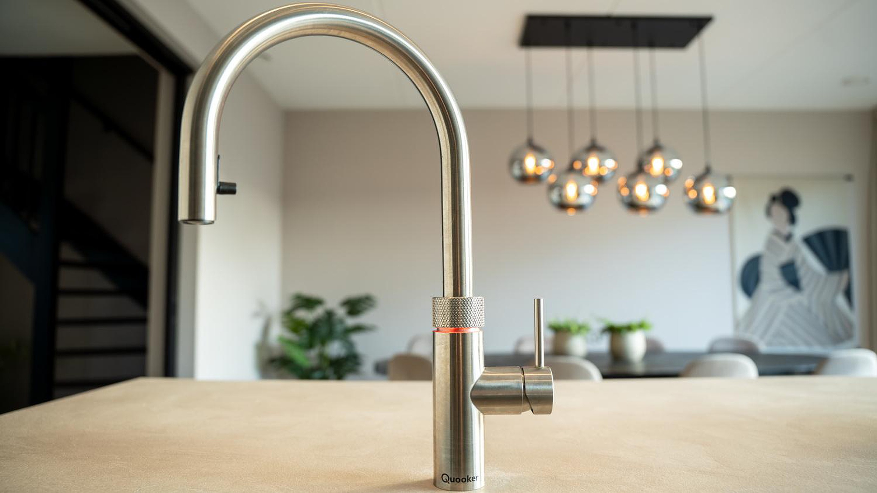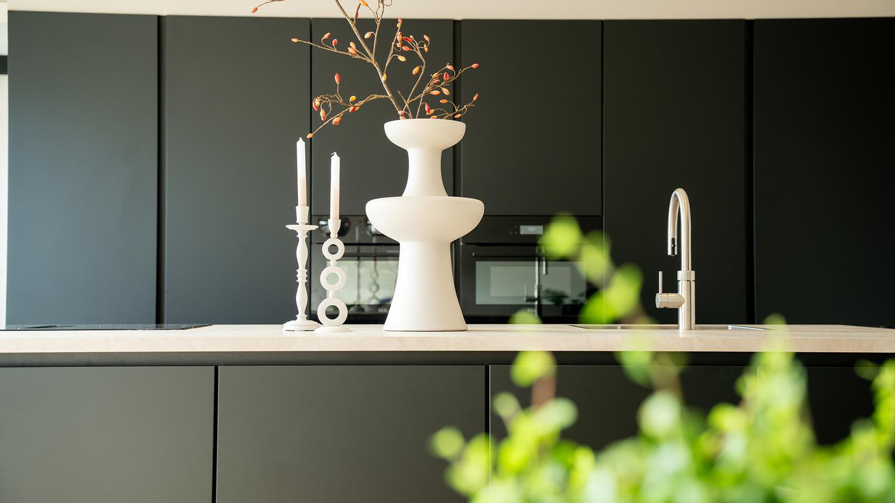 De woon-leefkeuken is een echte eyecatcher en heeft optimale lichtinval door de grote aluminium schuifpui. De moderne luxe keuken met kookeiland is een droom voor iedere kookliefhebber, deze is uitgerust met hoogwaardige inbouwapparatuur, waaronder; stoomoven, Quooker combi+ met een reservoir van 7 liter, inductiekookplaat met geïntegreerde afzuiging, combimagnetron en volledig hoge koelkast en een aparte hoge vriezer. In de bijkeuken bevinden zich in een afgesloten ruimte de all-electric warmtepomp en de waterontharder. Via de bijkeuken krijg je toegang tot de kantoor/werkruimte.