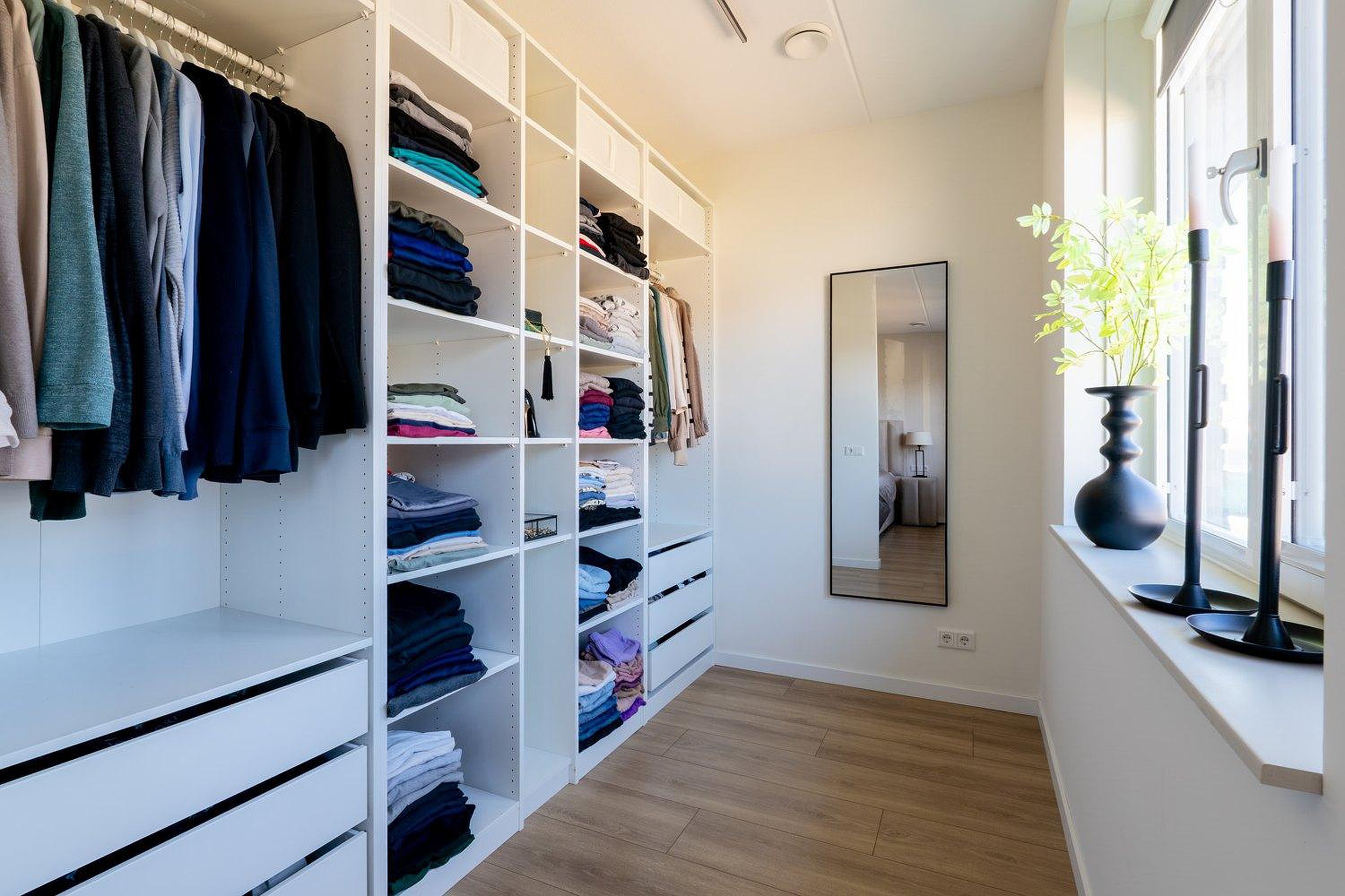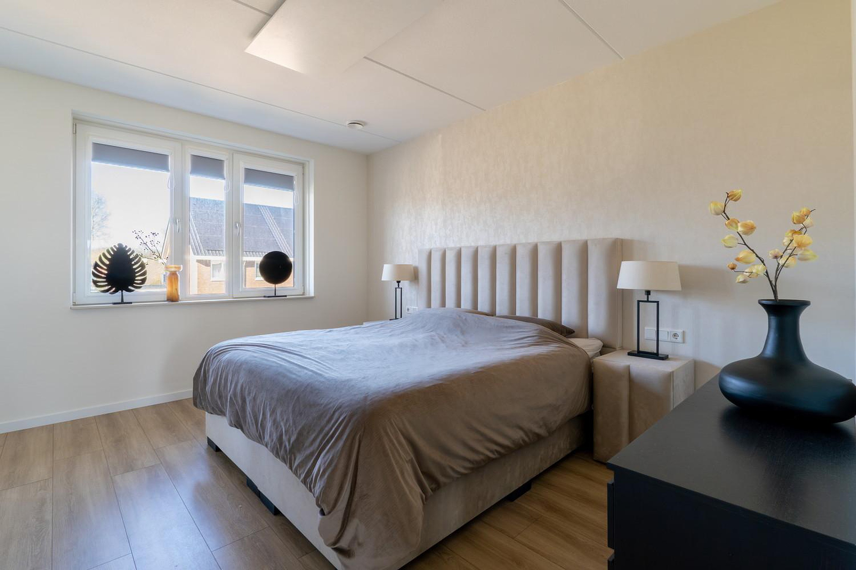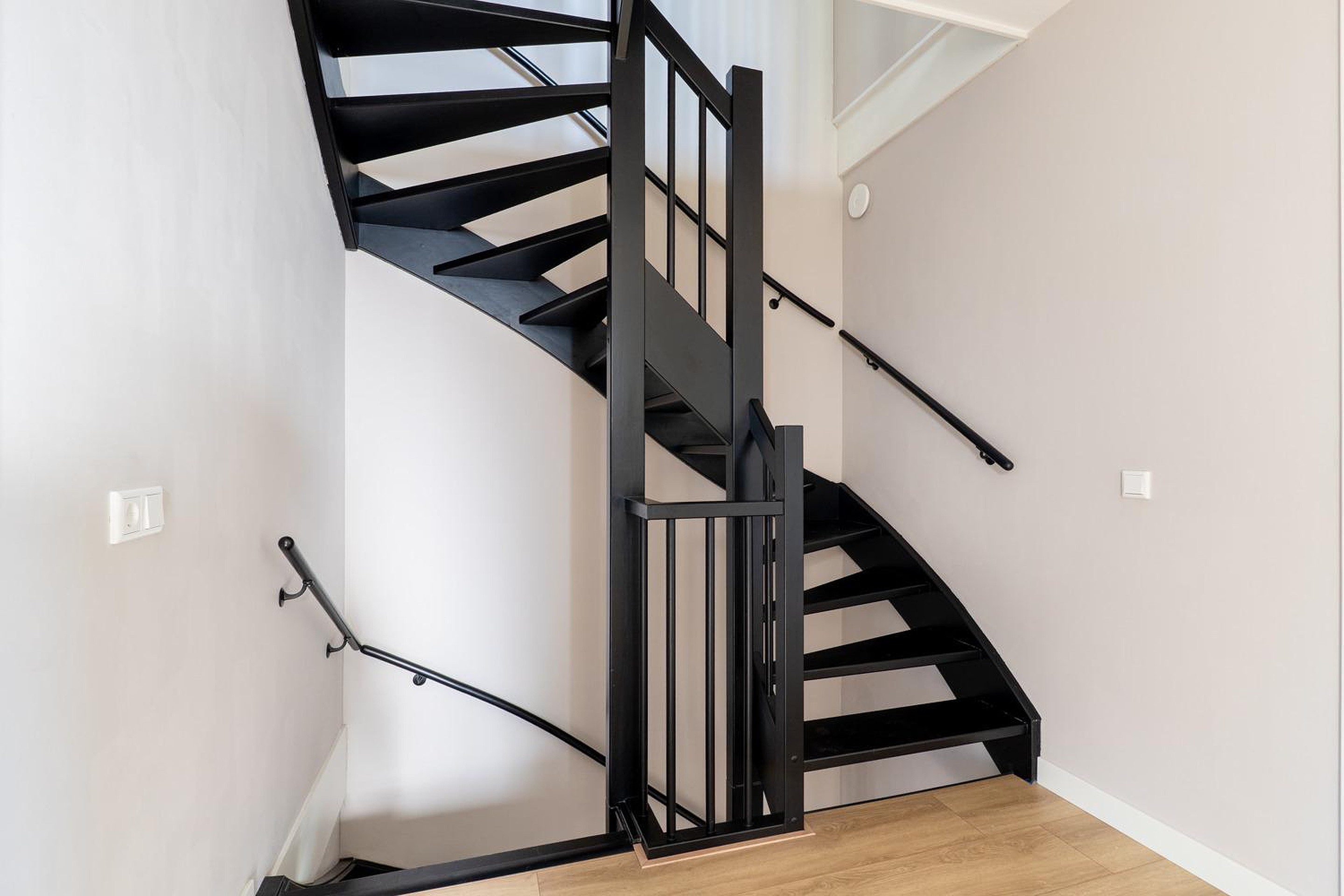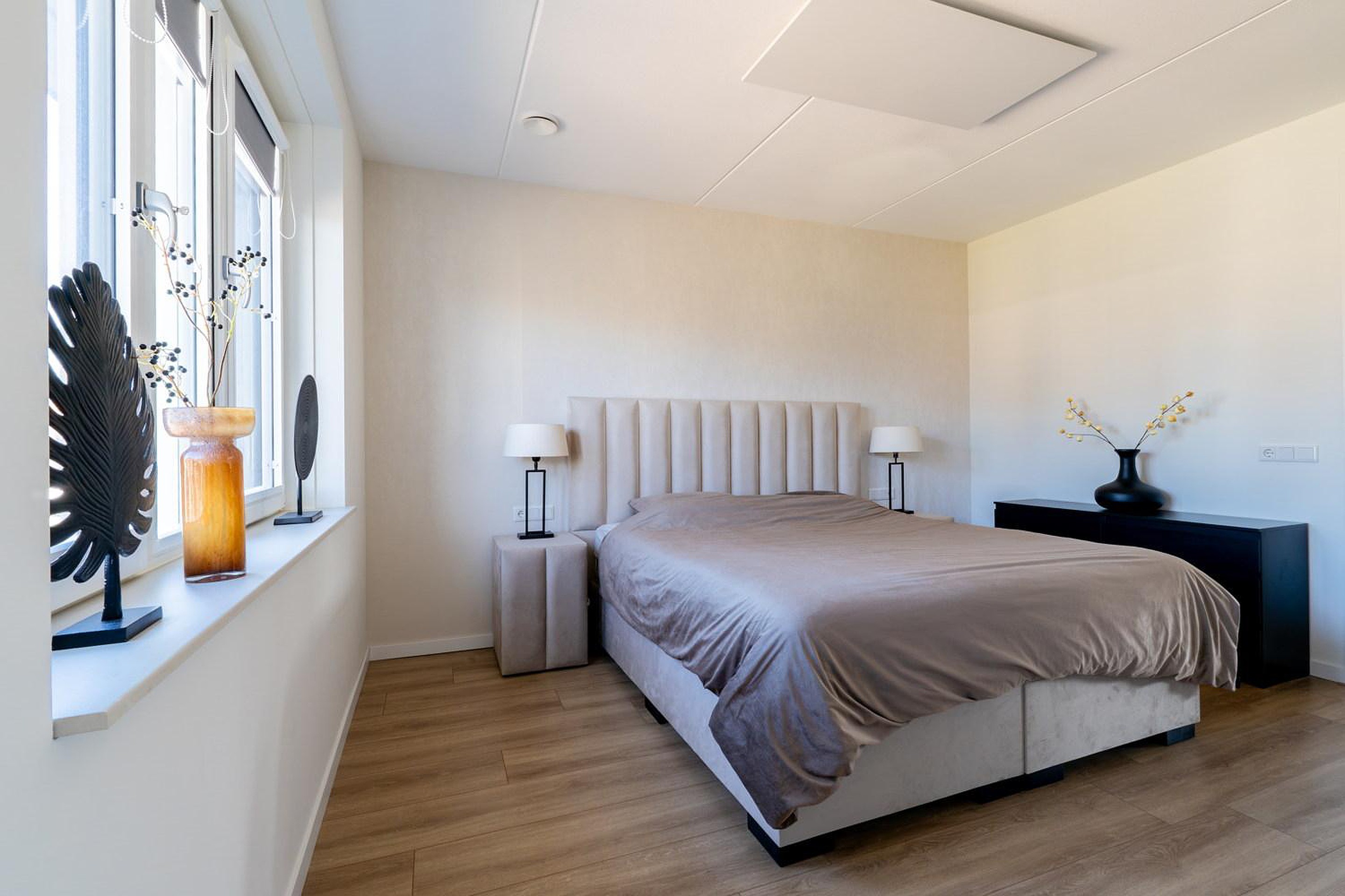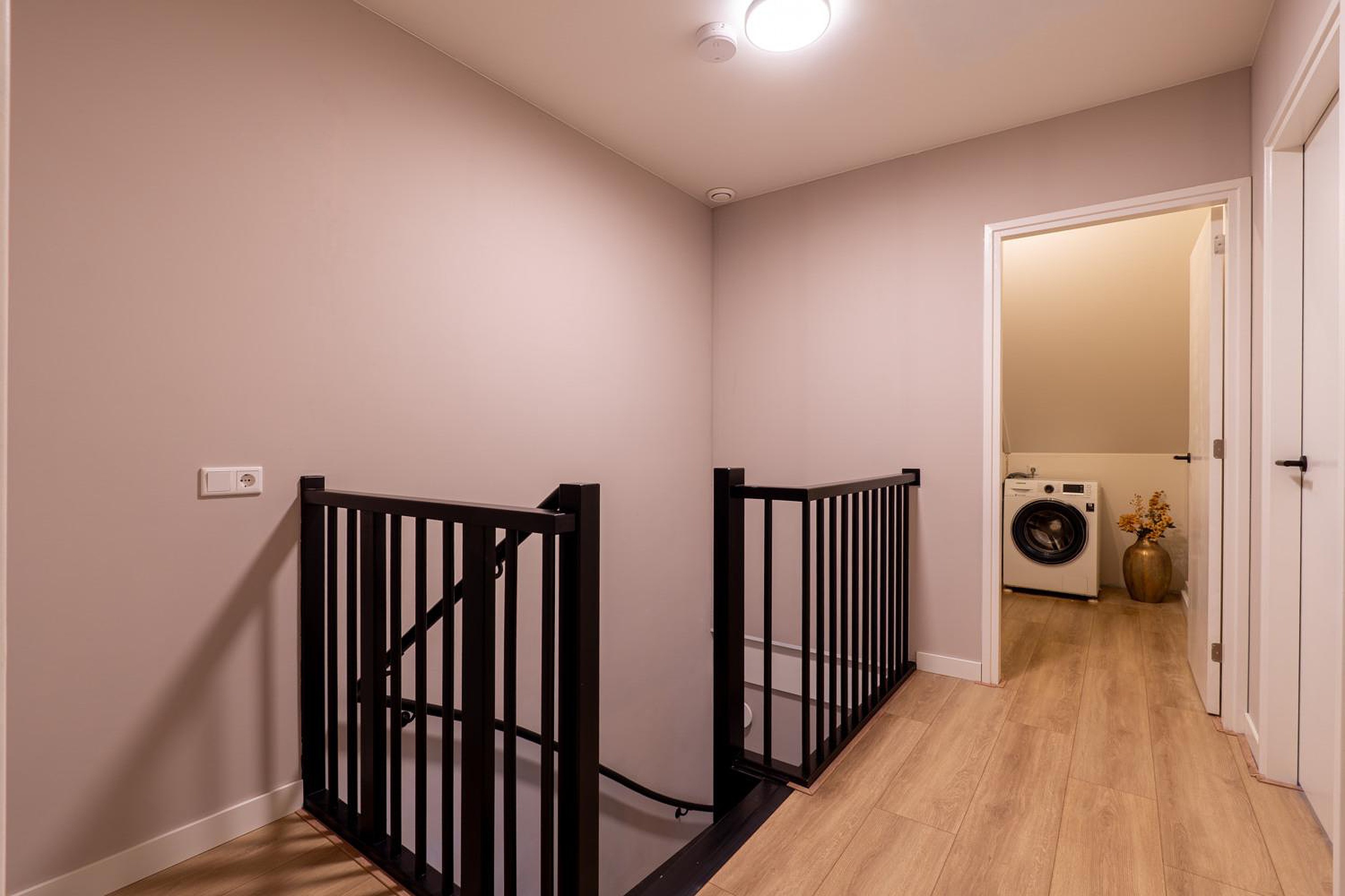 Eerste verdieping Met 3 ruime slaapkamers is er plek voor het hele gezin, waarbij de hoofdslaapkamer beschikt over een royale inloopkast. De verdiepingen worden comfortabel verwarmd door middel van stijlvolle infraroodpanelen met verlichting, bevestigd aan het plafond. Door de optimale isolatie en triple glas is er eigenlijk altijd een prettig binnenklimaat. De moderne en chique badkamer heeft vloerverwarming en biedt een ware wellness-ervaring, compleet met een dubbele inloop regendouche en handdouche, whirlpool, en dubbel wastafelmeubel. De badkamer heeft daarnaast een douche-WTW, die warmte uit wegstromend water hergebruikt om nieuw douchewater op te warmen. Dit is comfortabel én bespaart direct op je energiekosten. Er is een separate ruimte met modern tweede toilet (wandcloset) en fonteintje. De gehele verdieping is voorzien van extra breed laminaat, waarmee er een rustige, moderne basis is gecreëerd en elke ruimte optisch wordt vergroot.