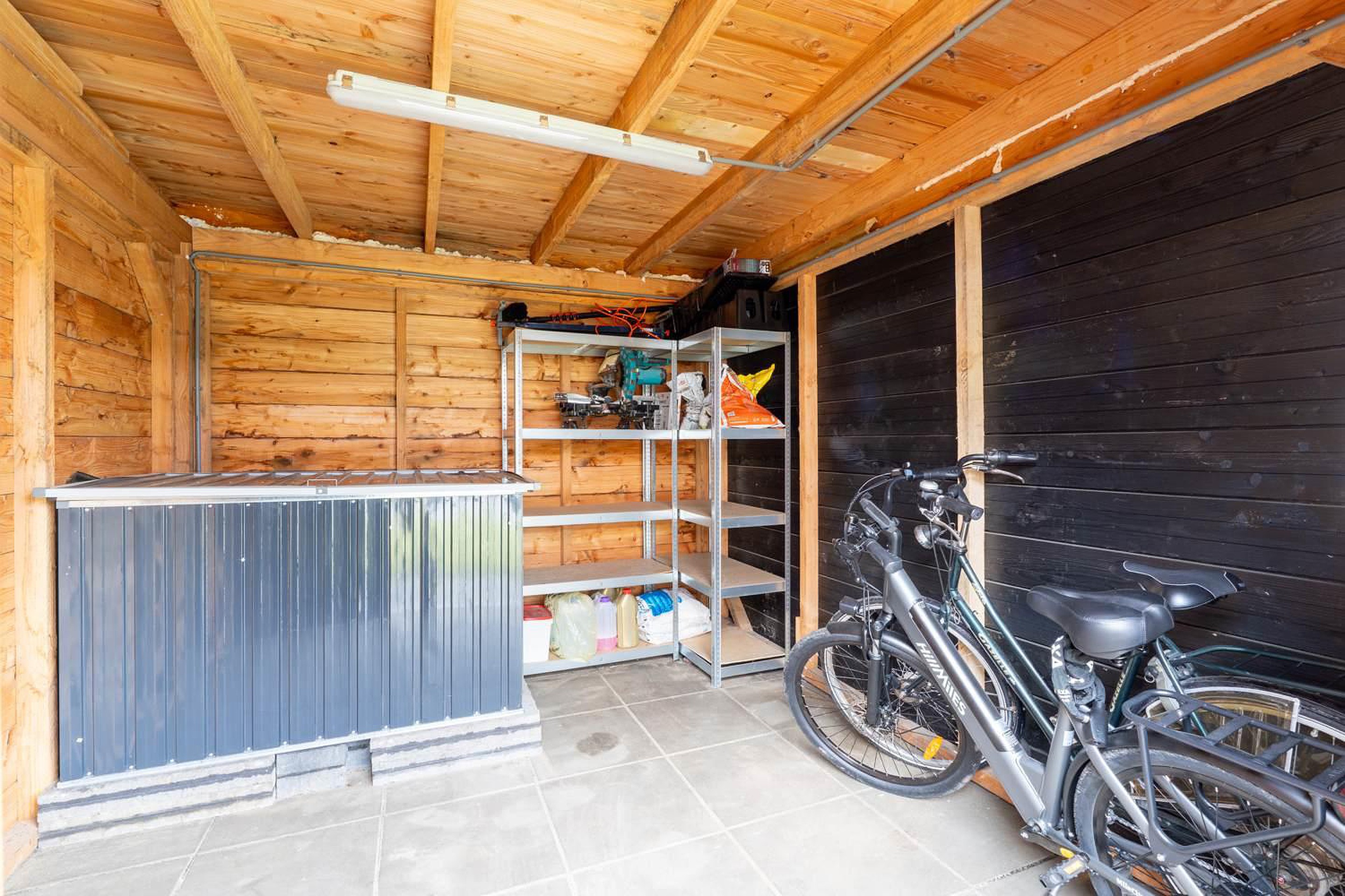 Tuin De tuin is perfect gelegen op het zonnige zuiden. Dankzij de onderhoudsarme aanleg heb je geen groene vingers nodig om te genieten van een strak en verzorgd buitenverblijf. Het ruime terras is dé plek voor gezellige barbecues of een rustig ontbijt in de ochtendzon. Wordt het iets te warm of valt er een spatje regen? De stijlvolle tuinoverkapping biedt een heerlijke schaduwplek en zorgt ervoor dat je in de zomeravonden nog langer van je tuin kunt genieten. De aangrenzende schuur is ideaal voor het veilig stallen van fietsen en tuingereedschap. Op de zuidgevel van de woning zijn 25 zonnepanelen geplaatst.
