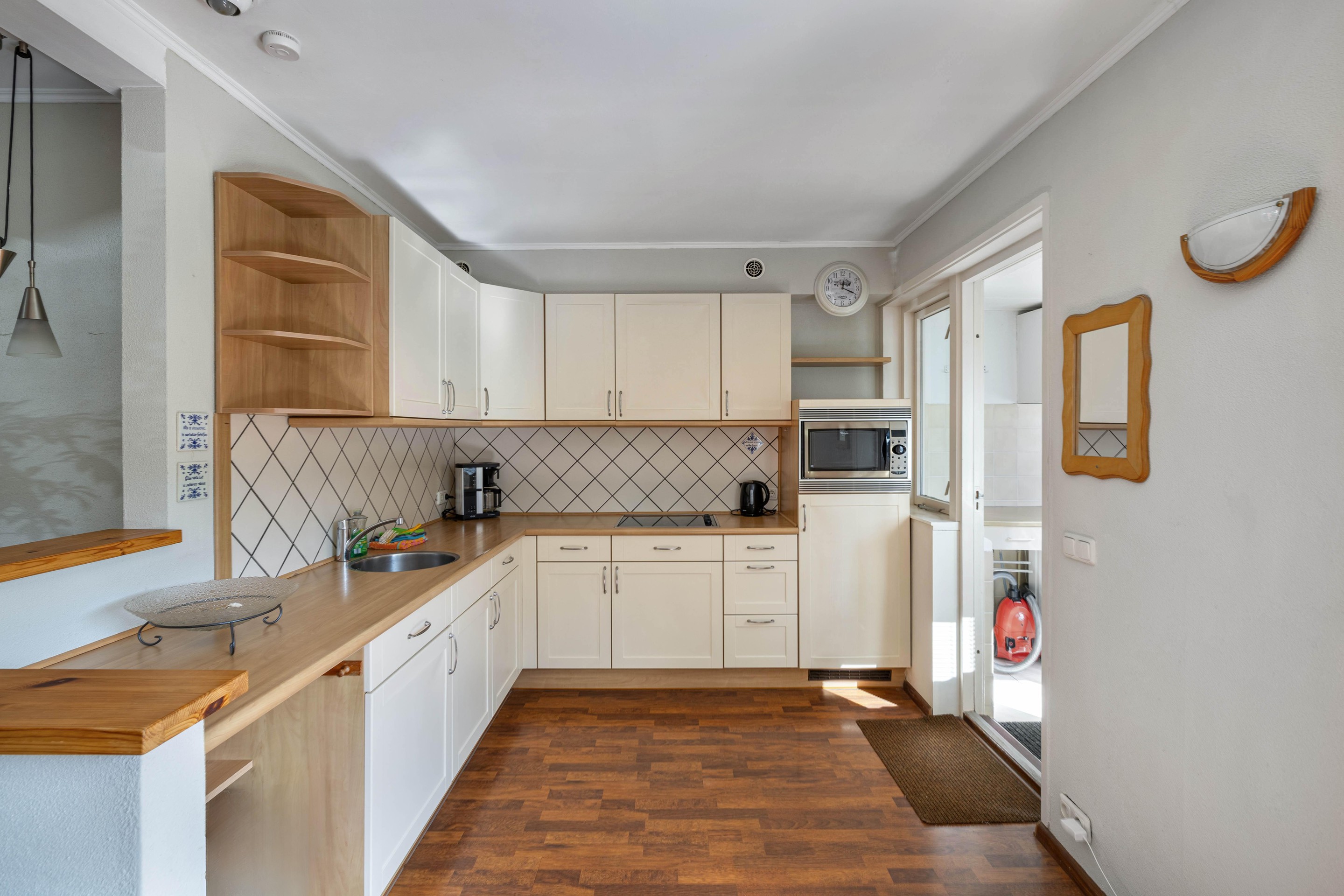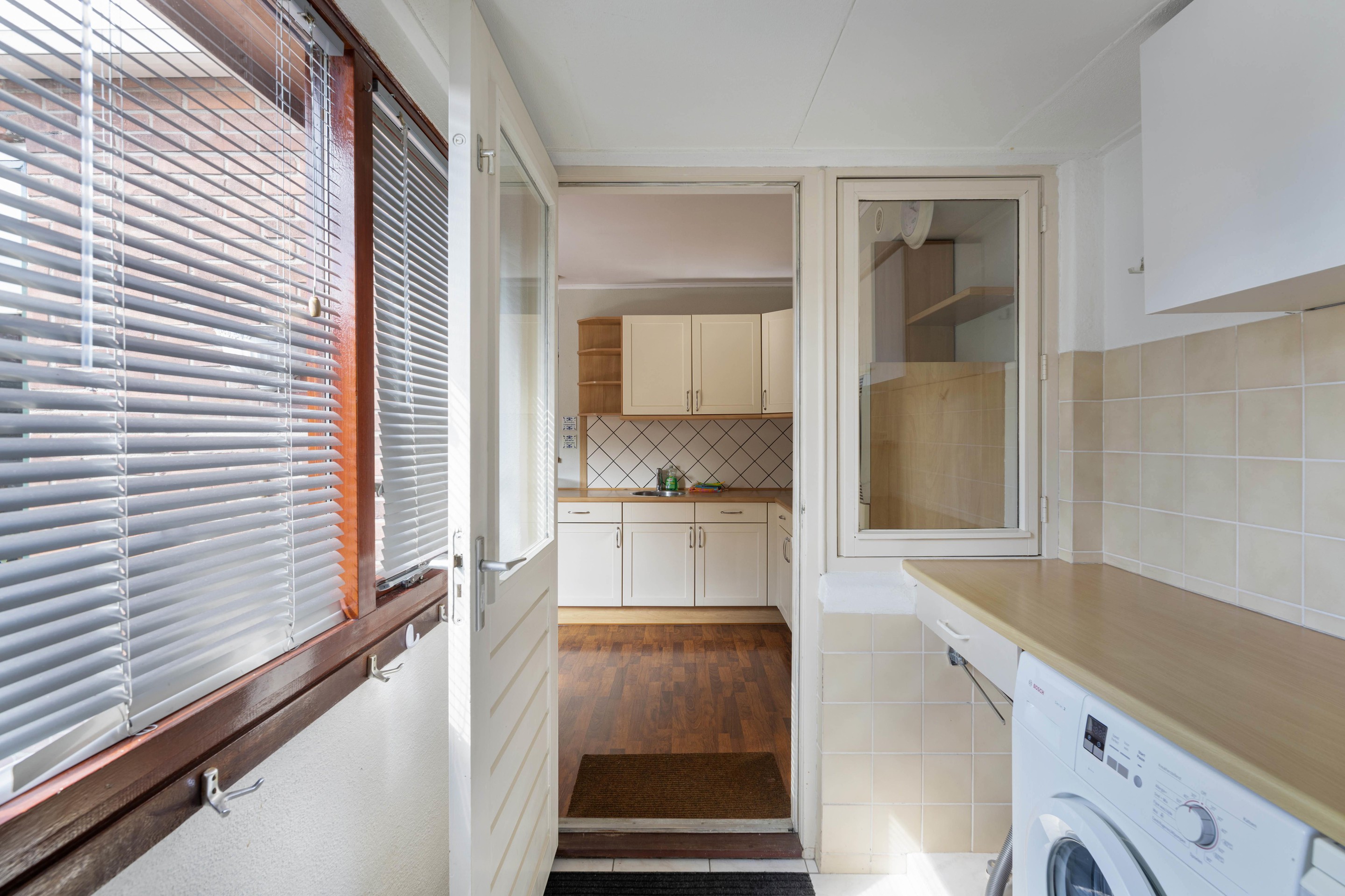 In de praktische bijkeuken vind je de wasmachine en droger opstelling.
