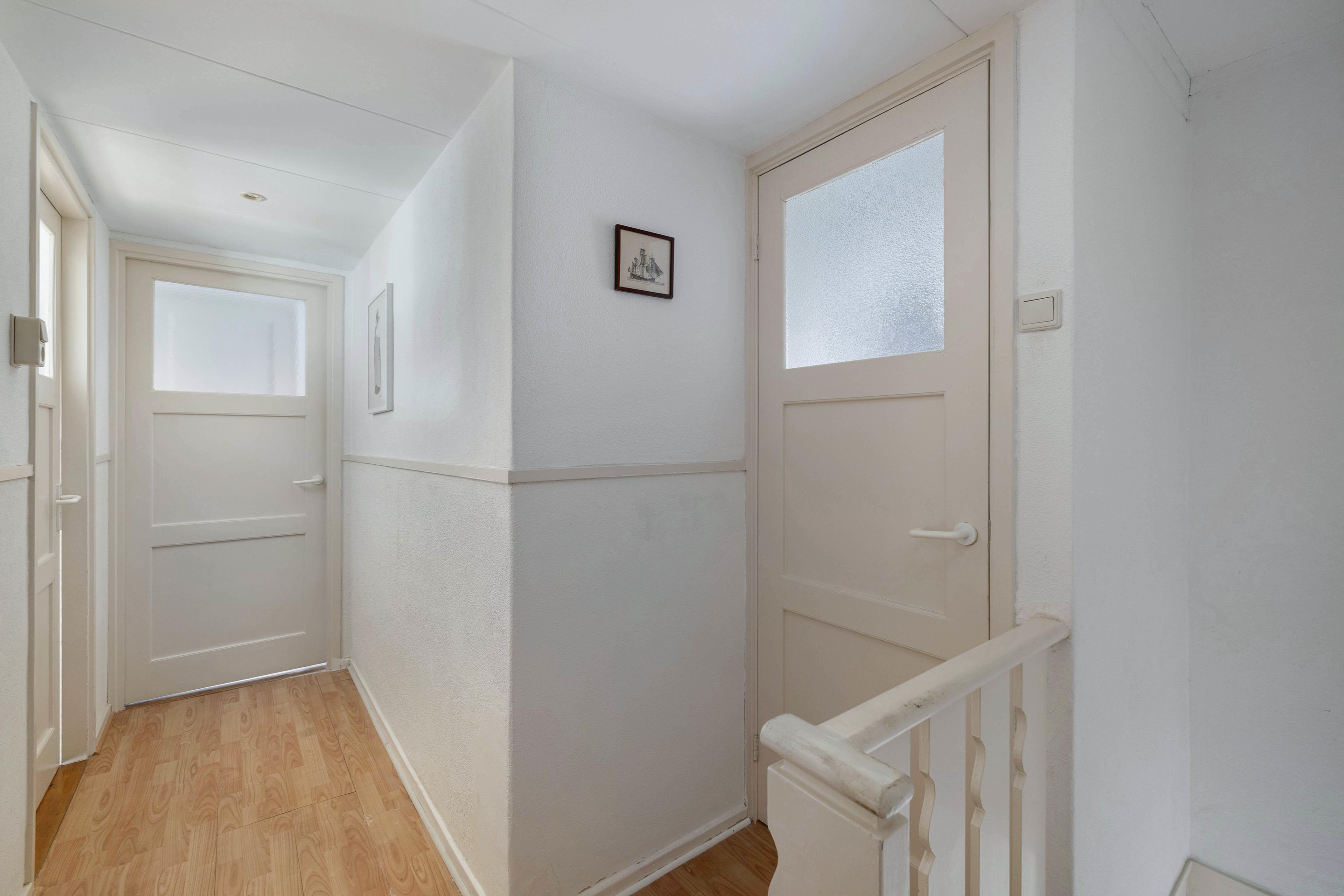 - Hal met meterkast, kelderkast (met gas- en watermeter) en trapopgang naar 1e verdieping