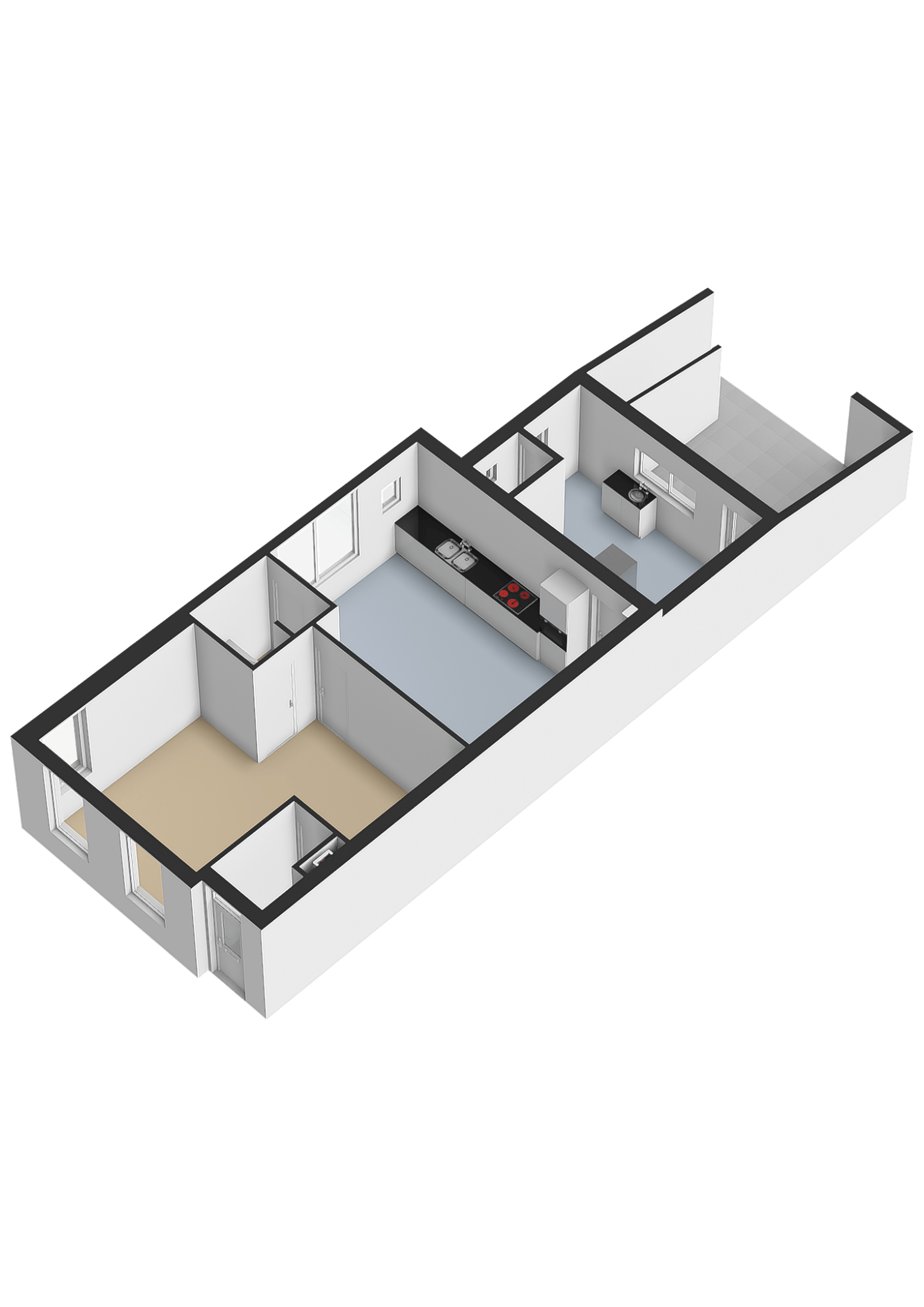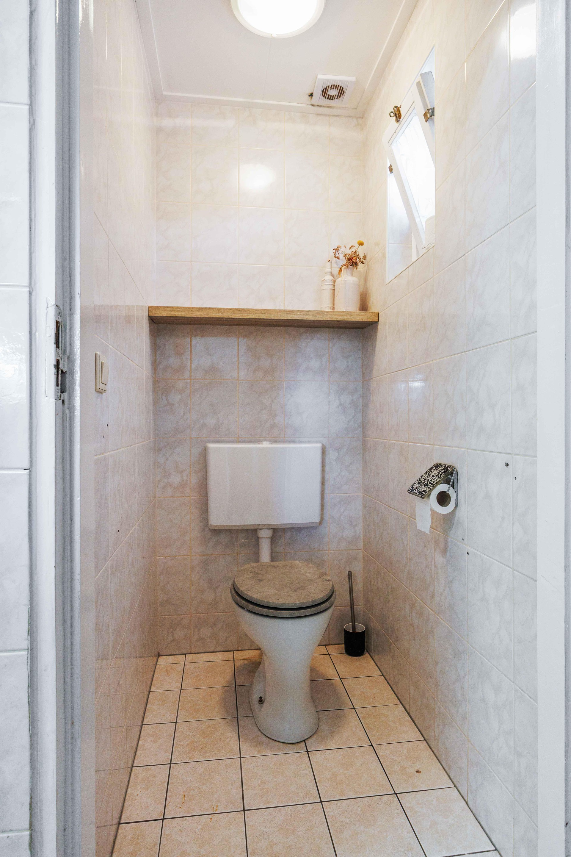 Aan de voorzijde van de woning vindt u de entree. In de hal zit de meterkast, toegang tot de woonkamer aan de straatzijde. De begane grond heeft een fijne indeling met een royale eetkeuken, waar je heerlijk kunt genieten van een ruim opgezette keuken. Deze eetkamer biedt ruimte voor een grote eettafel en staat in verbinding middels een deur met de woonkamer, ideaal om de ruimtes van elkaar af te sluiten. Vanuit de keuken/eetkamer komt u in de bijkeuken. De handige bijkeuken met toilet en witgoedaansluiting maakt het dagelijks huishouden eenvoudig en praktisch. De kelder in deze woning geeft extra gemakken voor het opbergen van uw spullen.