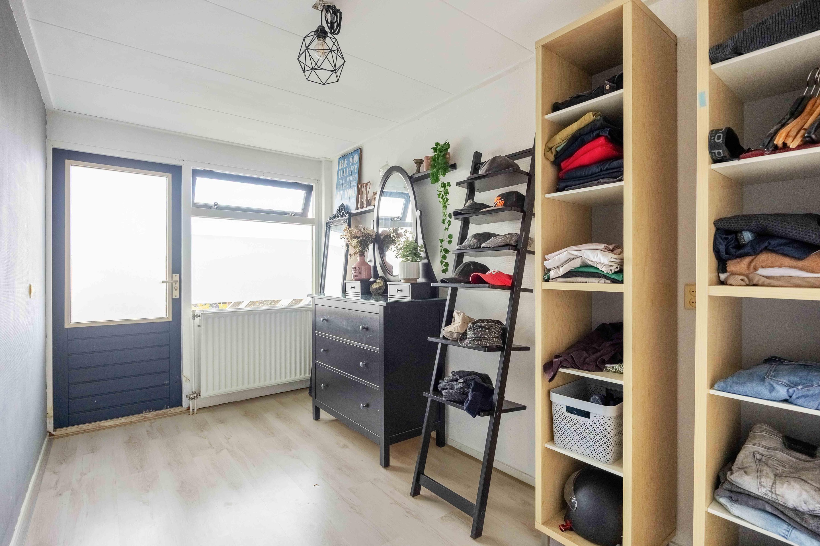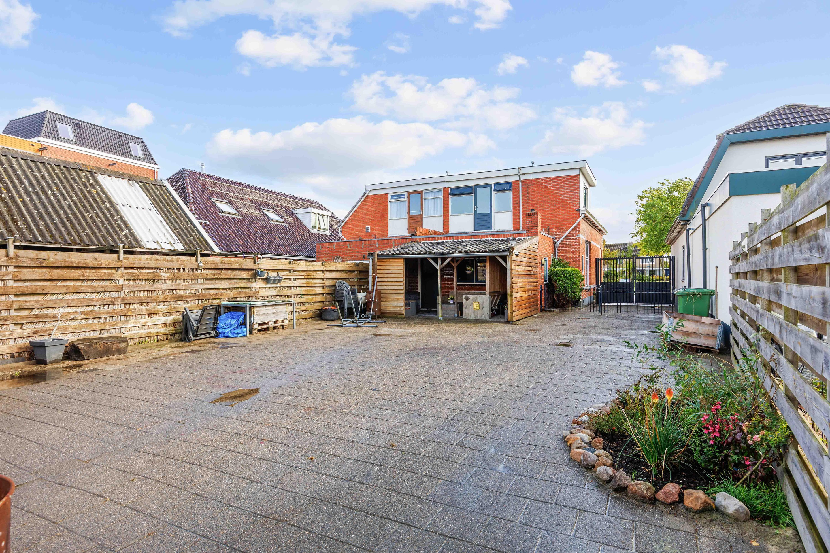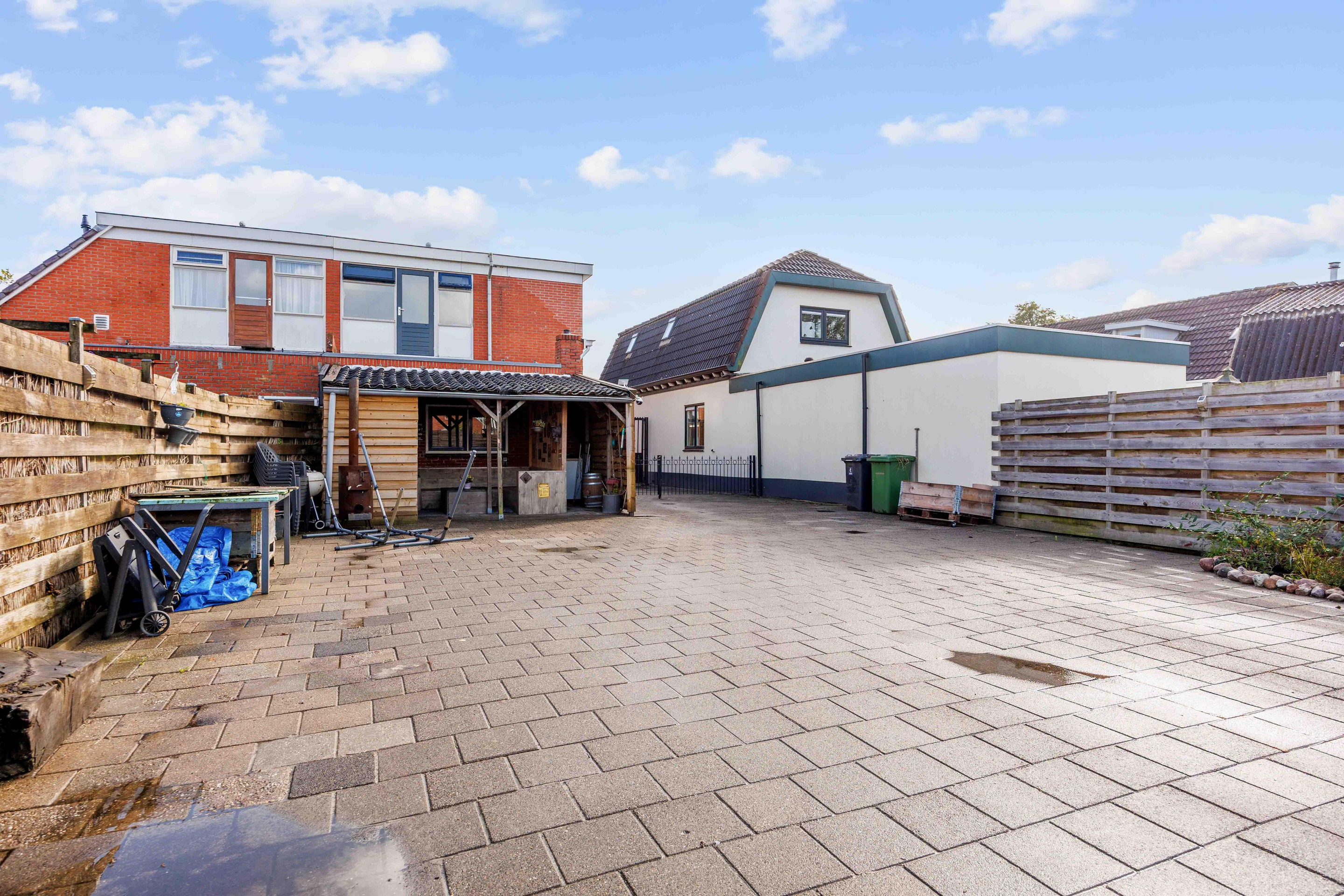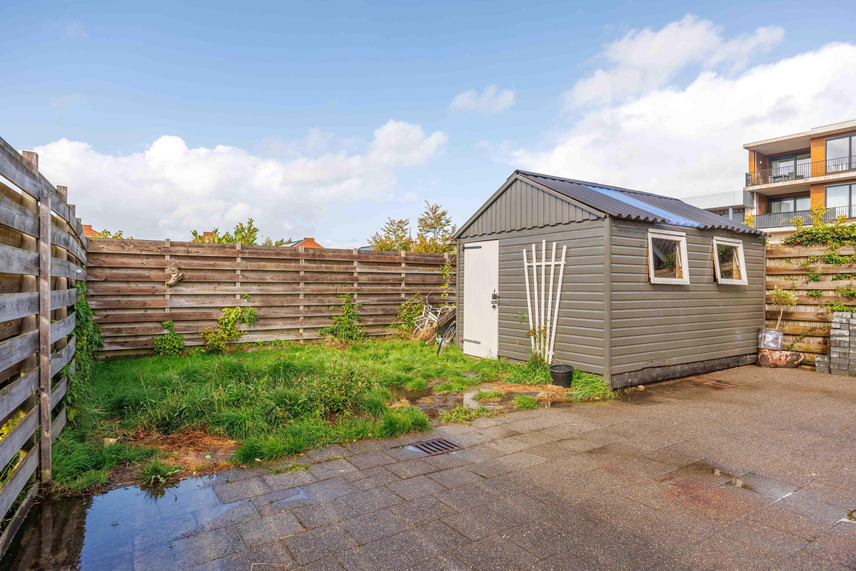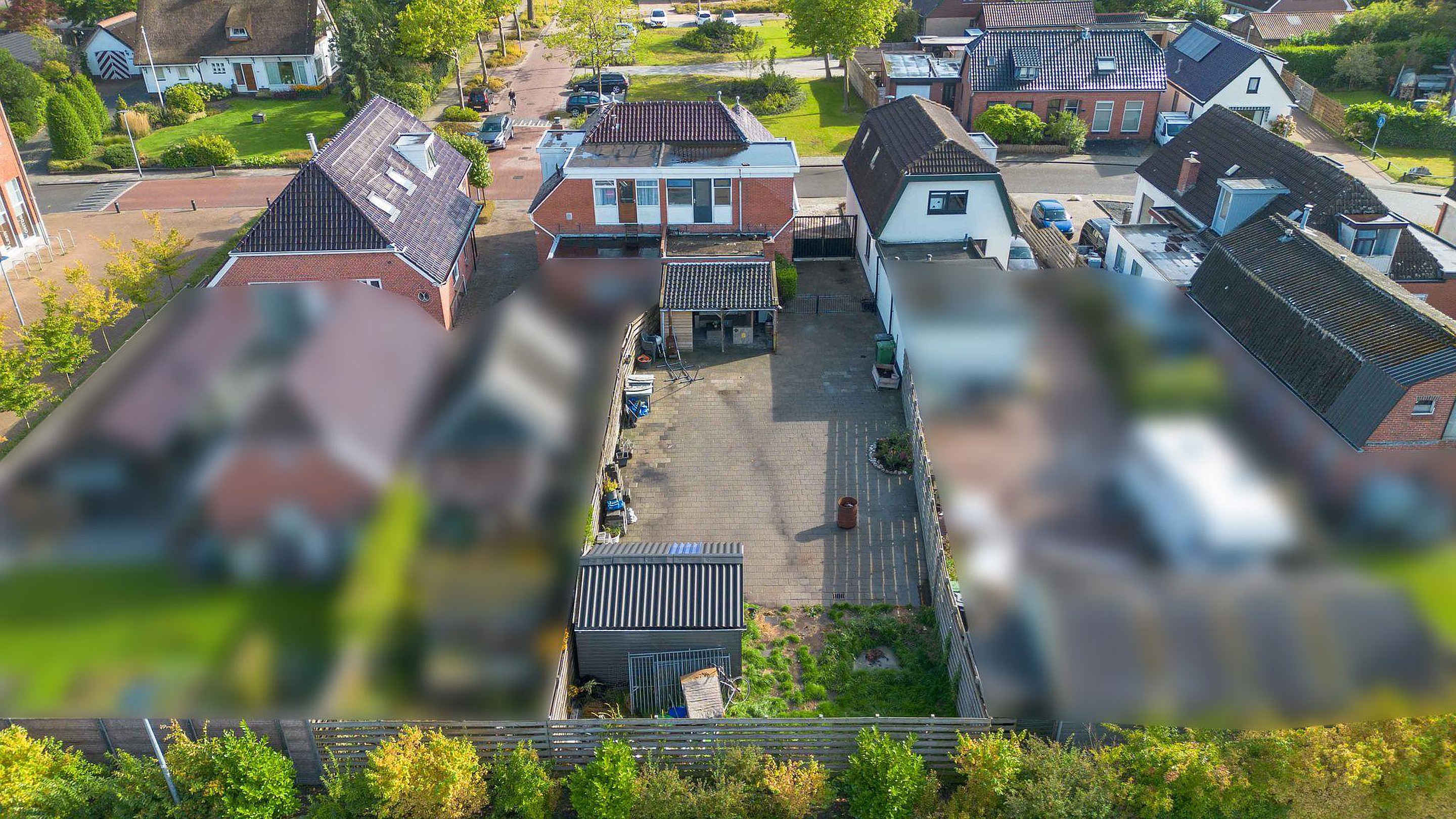 Achter de woning ligt een diepe tuin waar u volop kunt genieten van de buitenlucht. De tuin heeft niet alleen veel ruimte, maar is ook voorzien van een schuur ideaal voor tuingereedschap of het stallen van fietsen. De oprit aan de zijkant van de woning zorgt voor parkeergelegenheid op eigen terrein en doorgang naar de achtertuin.
