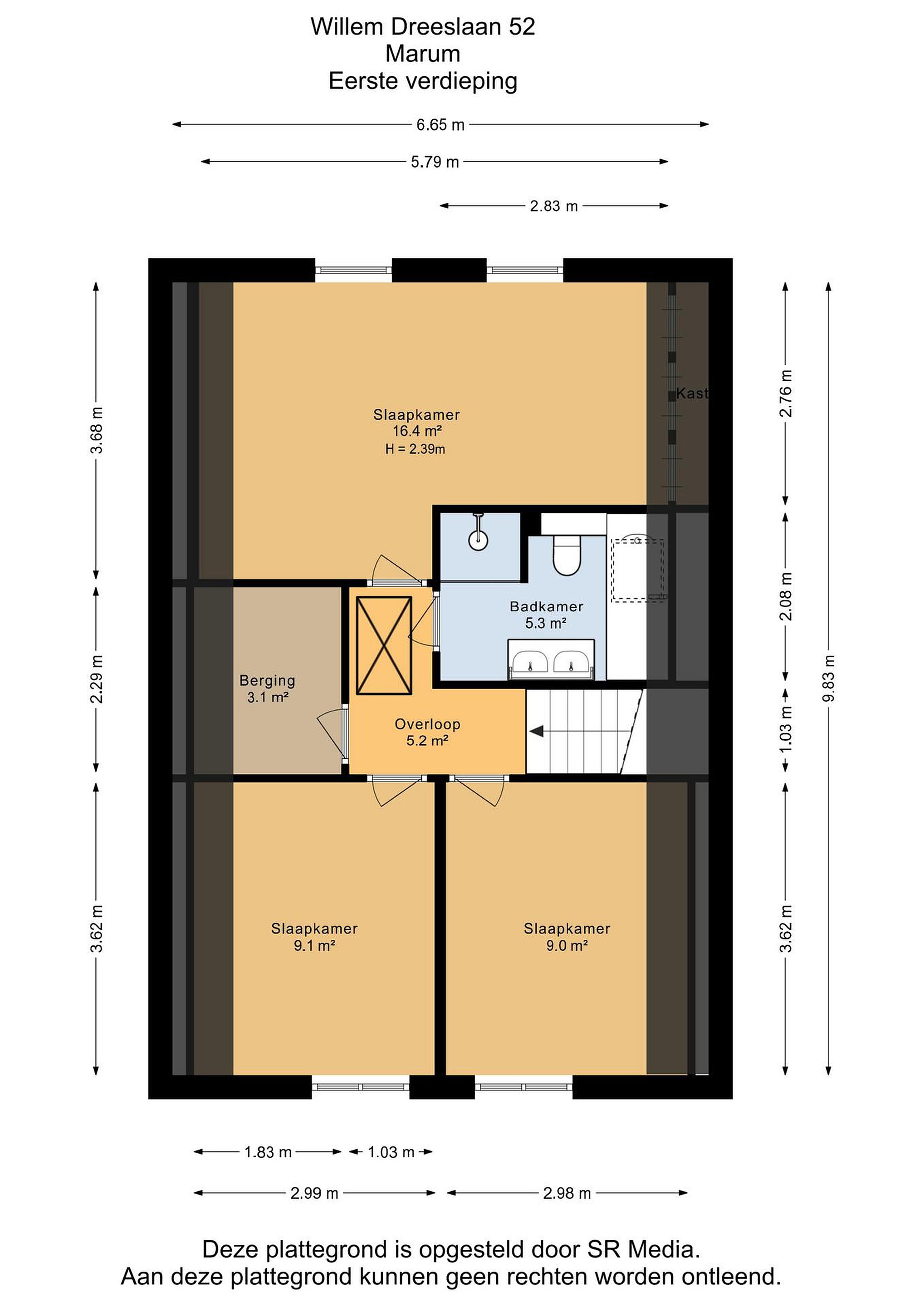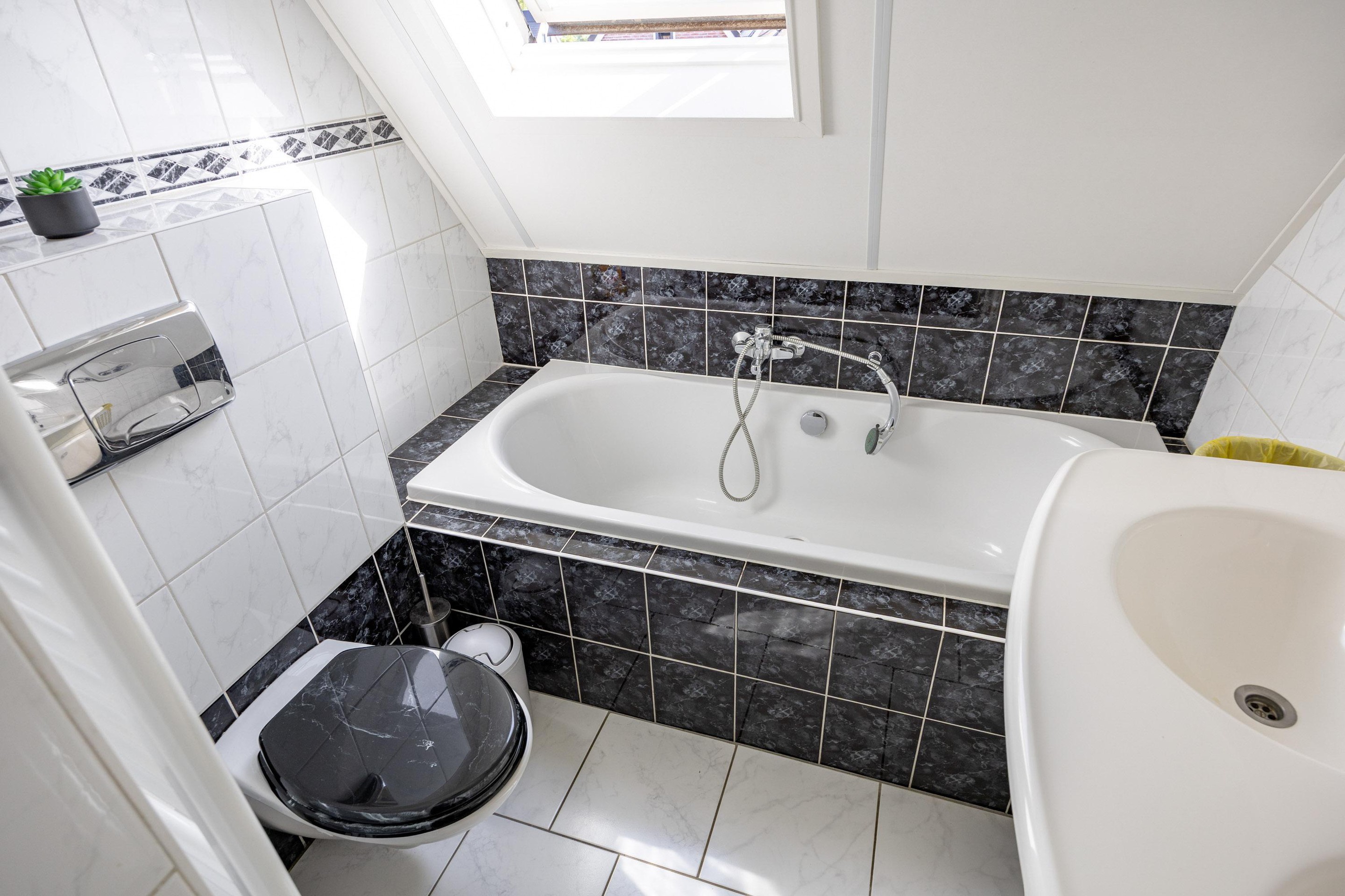 Op de eerste verdieping bevinden zich drie ruime slaapkamers. De royale badkamer is voorzien van een dubbele wastafel, douche, toilet en een ligbad. Daarnaast is er op deze verdieping ook nog een praktische berging aanwezig.