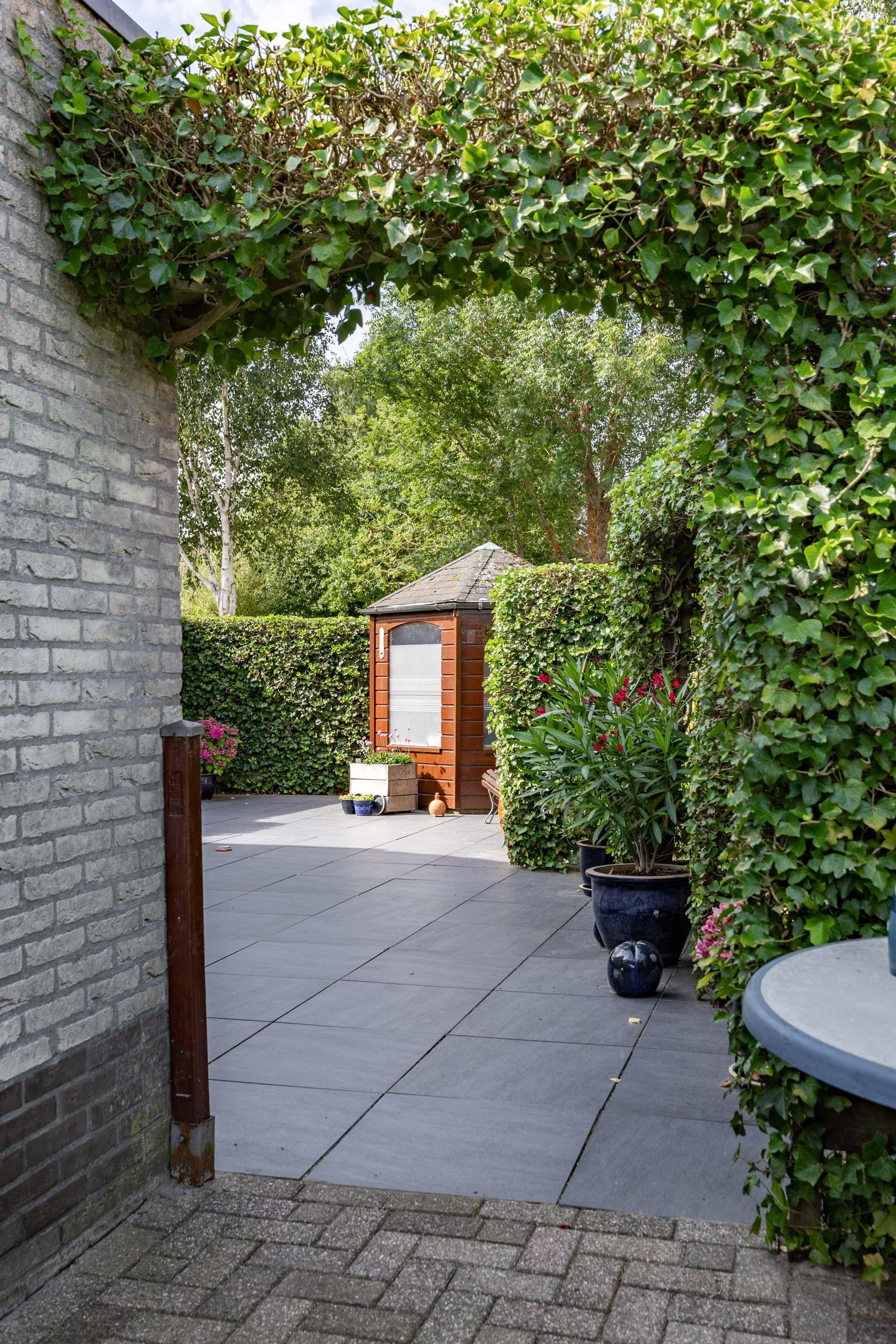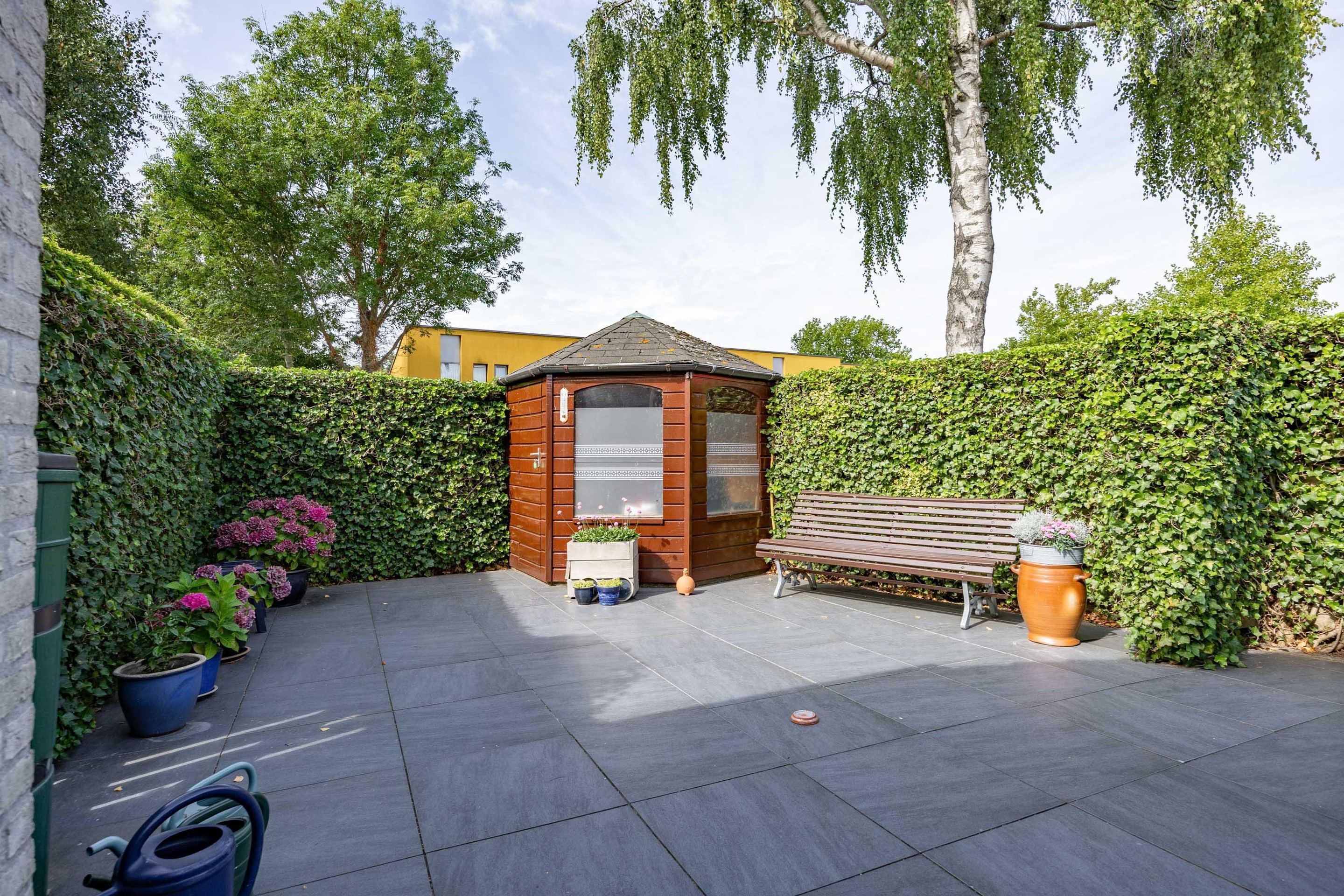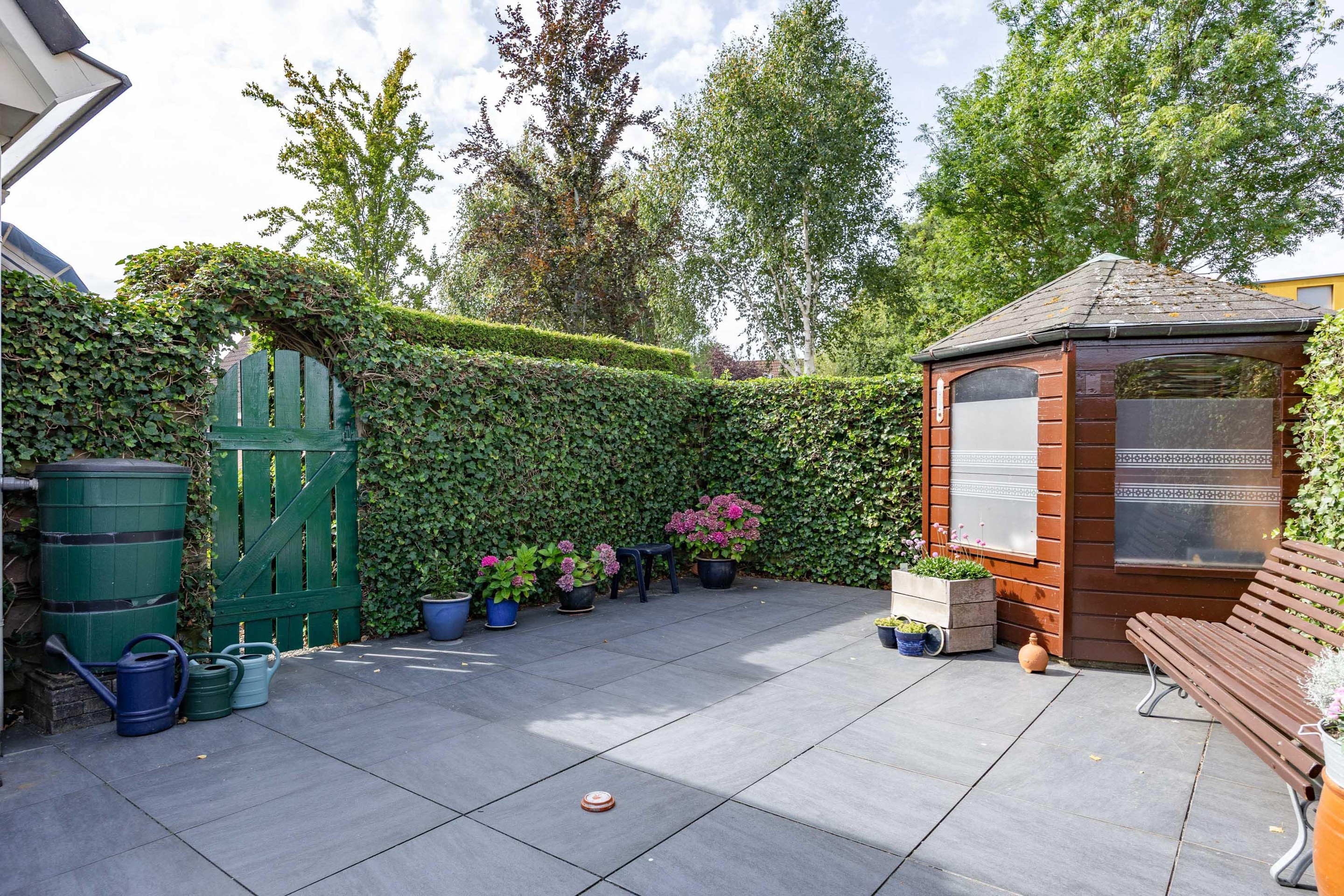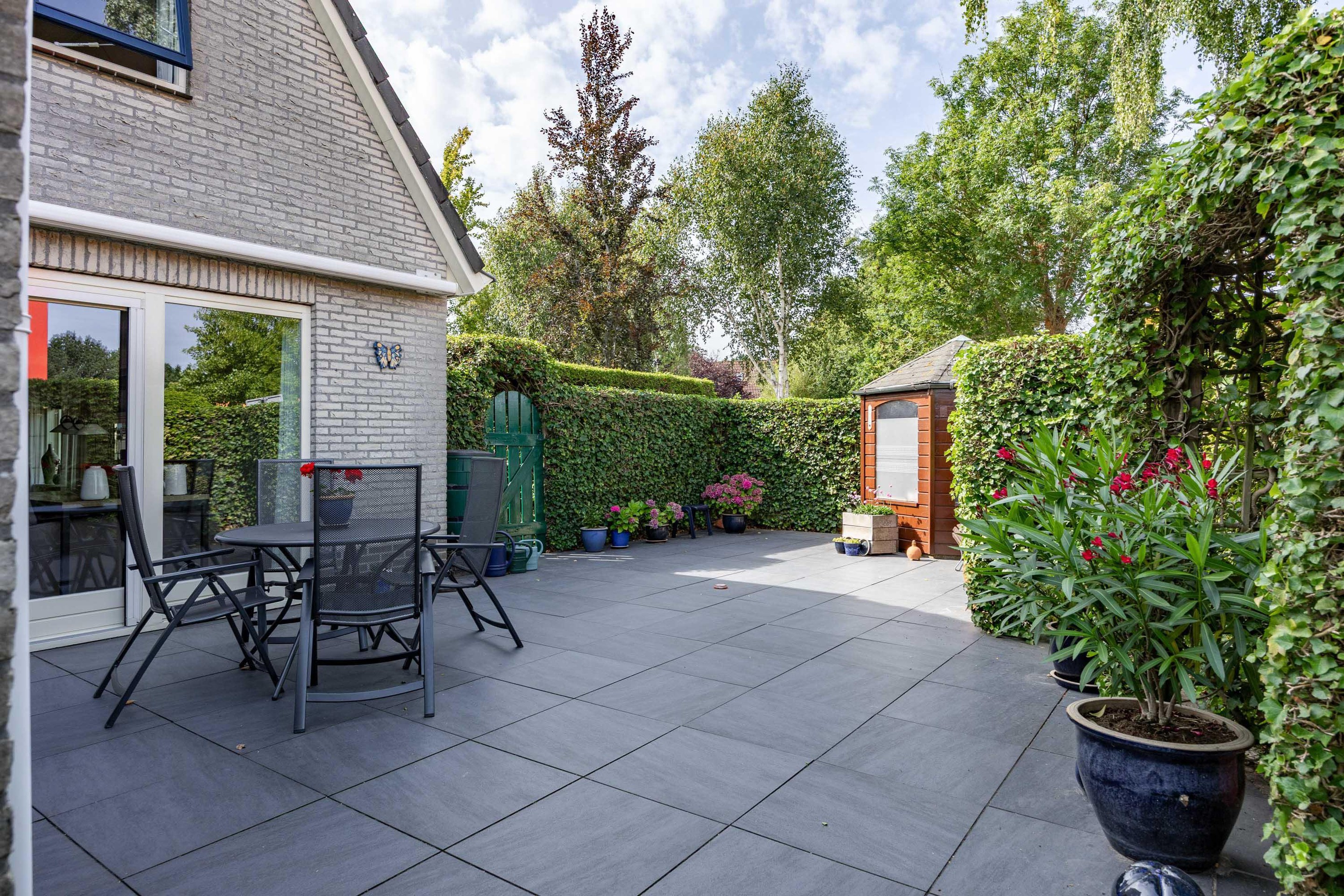 Rondom de woning ligt een verzorgde tuin die veel privacy biedt. Dankzij de gunstige ligging is er de hele dag door een plekje in de zon of juist in de schaduw te vinden. In de tuin bevindt zich bovendien een berging, ideaal voor tuingereedschap. De terrassen bieden voldoende plaats en de zonwering aan de achtergevel zorgen voor een heerlijke schaduwplek.